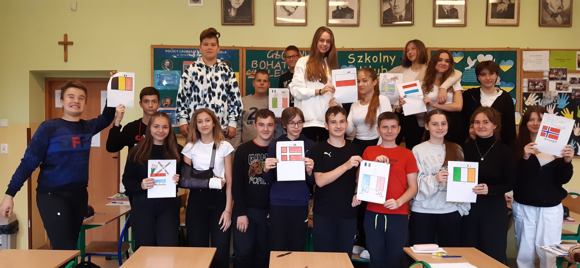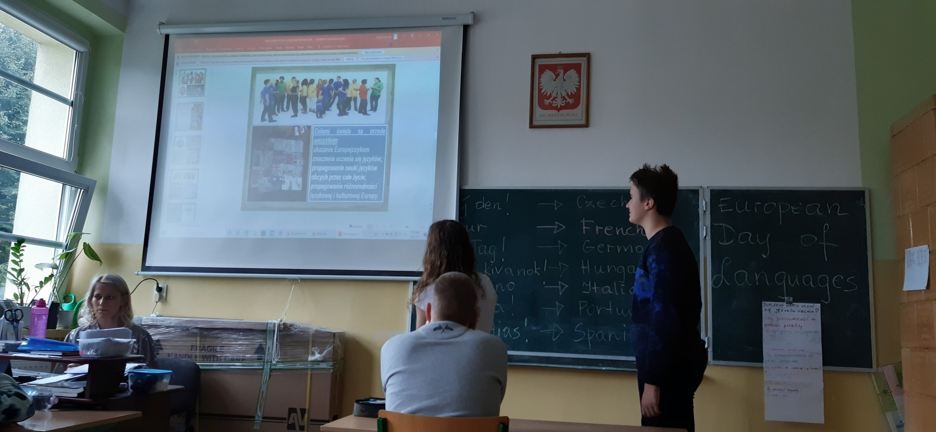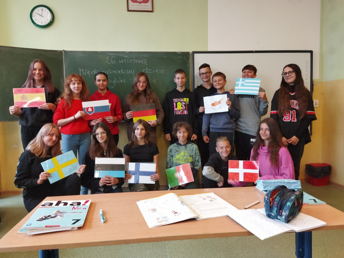 Europejski Dzień Języków Obcych obchodzony jest 26 września każdego roku od 2001r. decyzją Rady Europy i we współpracy z Komisją Europejską. Celem tego wydarzenia jest zwrócenie uwagi na bogactwo języków w Europie, którymi posługują się jej mieszkańcy. Zaś do głównych założeń święta należą: promowanie wśród uczniów różnorodności kulturowej i językowej Europy. W związku z powyższym, z inicjatywy opiekunek działającego w naszej placówce Szkolnego Klubu Europejskiego EUROMŁODZIAKI: p. Anniki Niburskiej i p. Jolanty Piaseckiej, uczniowie brali udział w wielu aktywnościach. Dzieci z młodszych klas śpiewały piosenki anglojęzyczne i uczestniczyły w grach i zabawach językowych. Starsi uczniowie obejrzeli prezentację multimedialną na temat języków europejskich i kolorowali wylosowane wcześniej flagi. Natomiast ósmoklasiści uczyli się powitań w różnych językach i przygotowali plakat informacyjny zatytułowany: „Dlaczego warto uczyć się języków obcych?”