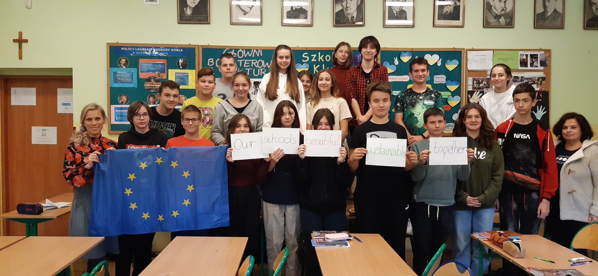Po otrzymanej Krajowej Odznace Jakości za projekt „Great Job”, Szkolny Klub Europejski Euromłodziaki nie spoczął na laurach i zapoczątkował realizację kolejnego międzynarodowego przedsięwzięcia zatytułowanego: „Our schools, beautiful, sustainable, together". Jest to całoroczny projekt, angażujący młodzież w różne aktywności od edukacji obywatelskiej, zrozumienia kulturowego aż porozwijanie świadomości uczniów w zakresie dbania o swoje zdrowie, równowagę psychiczną, kondycję fizyczną oraz zwrócenie uwagi na fakt, jak wielką rolę mają nasze codzienne nawyki, które możemy modyfikować, by podnieść jakość naszego życia.