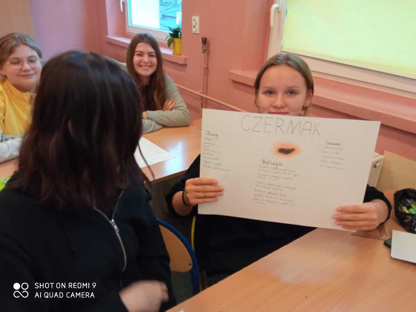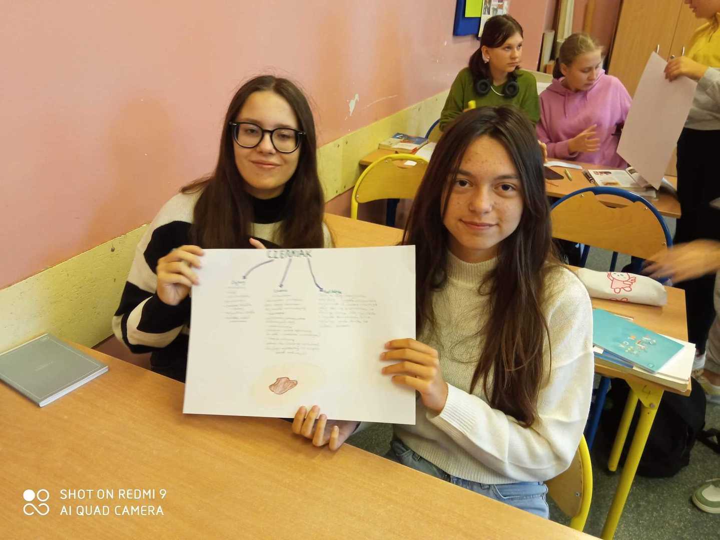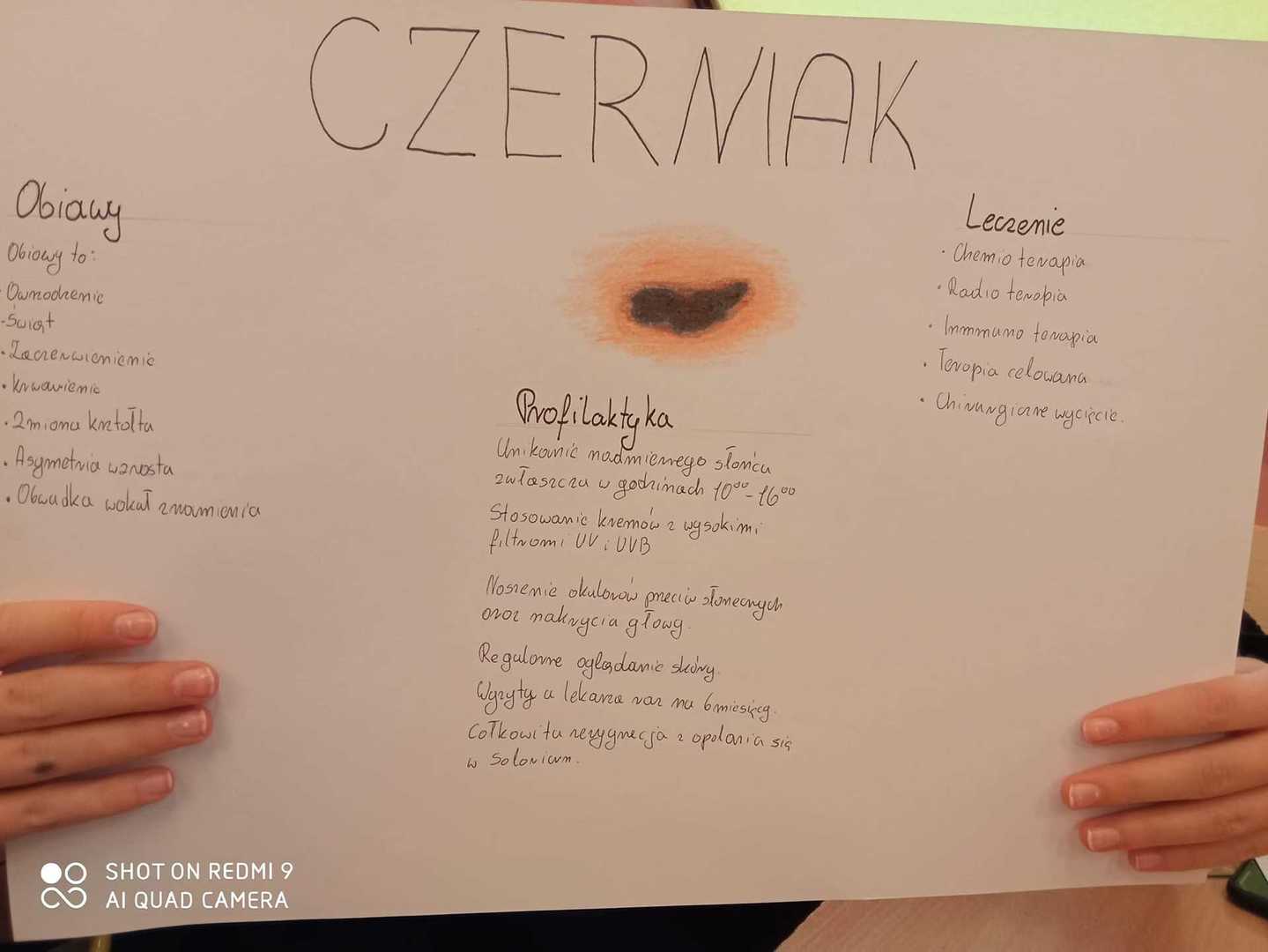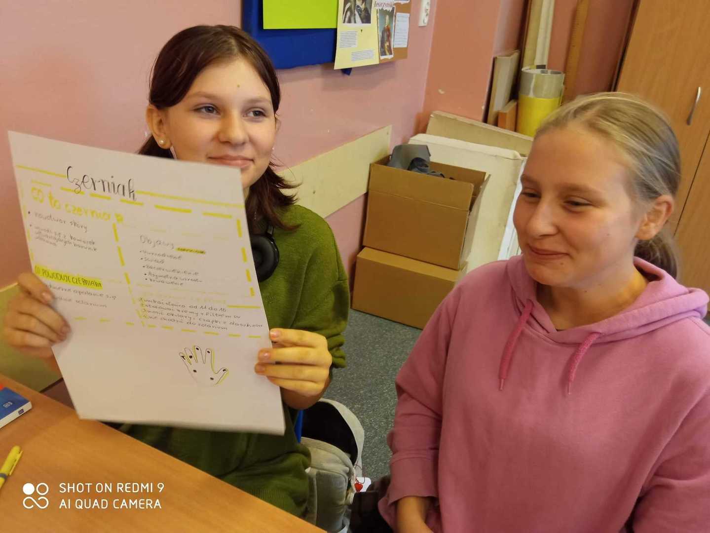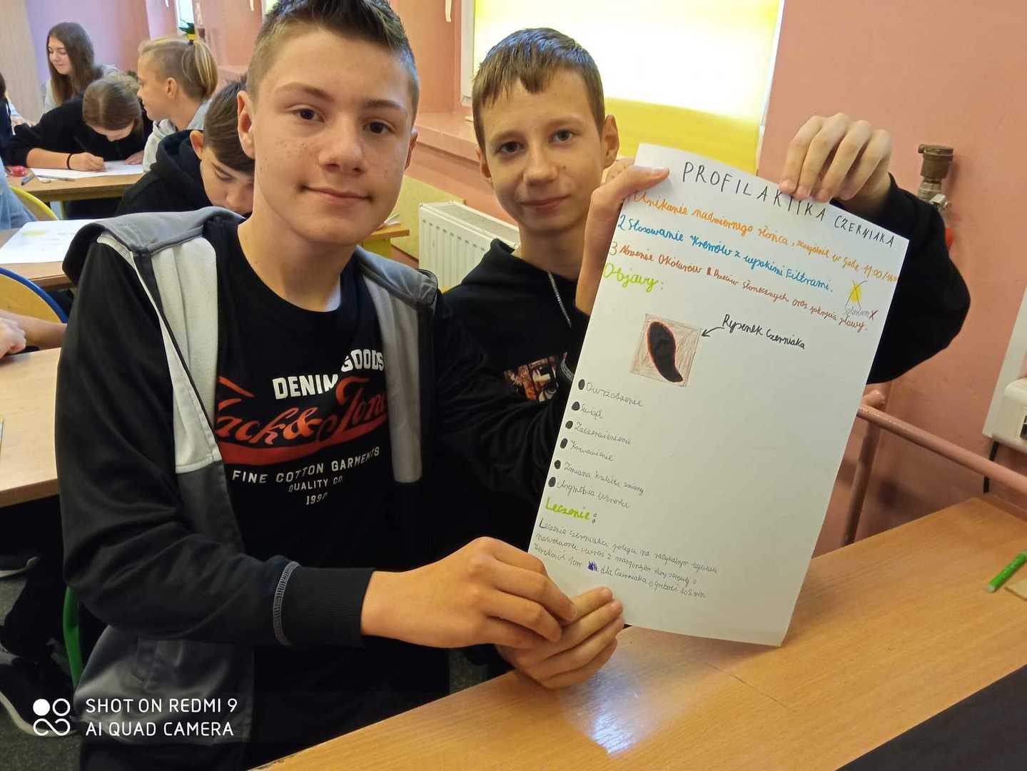 Uczniowie wykonali plakaty na temat czerniaka. Zamieścili na nich jego charakterystyczne cechy, ABCDE czerniaka, złote zasady ochrony przed czerniakiem oraz samobadanie skóry.