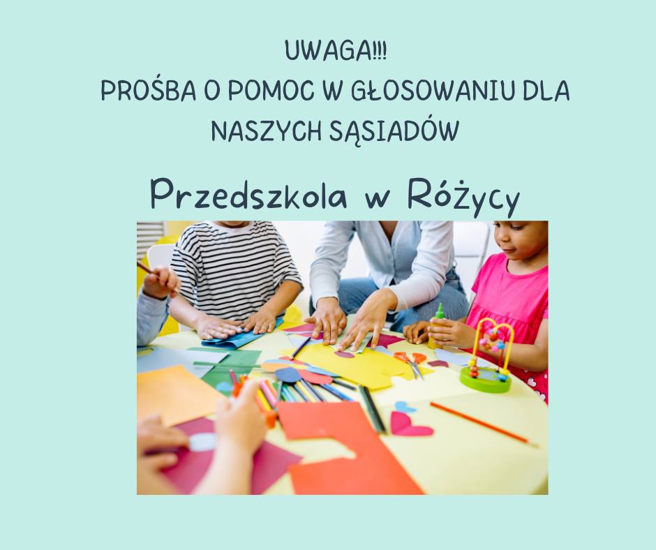 w Różycy zwracają się z ogromną prośbą o oddanie głosów na Przedszkole w Różycy w głosowaniu