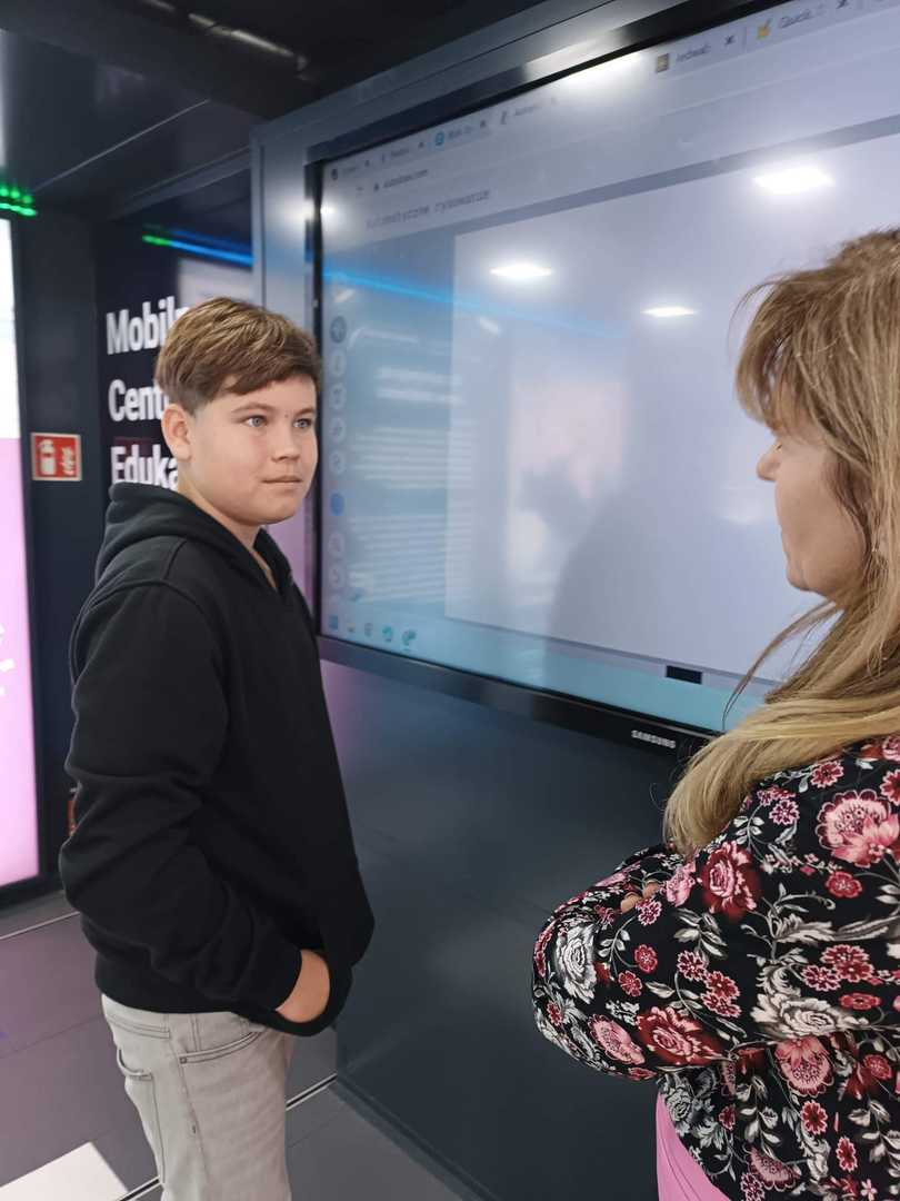 21.10.2022r. grupa uczniów interesująca się informatyką, robotyką, programowaniem wybrała się wraz z panią Anną Retelewską-Szóstek do Mobilnego Centrum Edukacyjnego