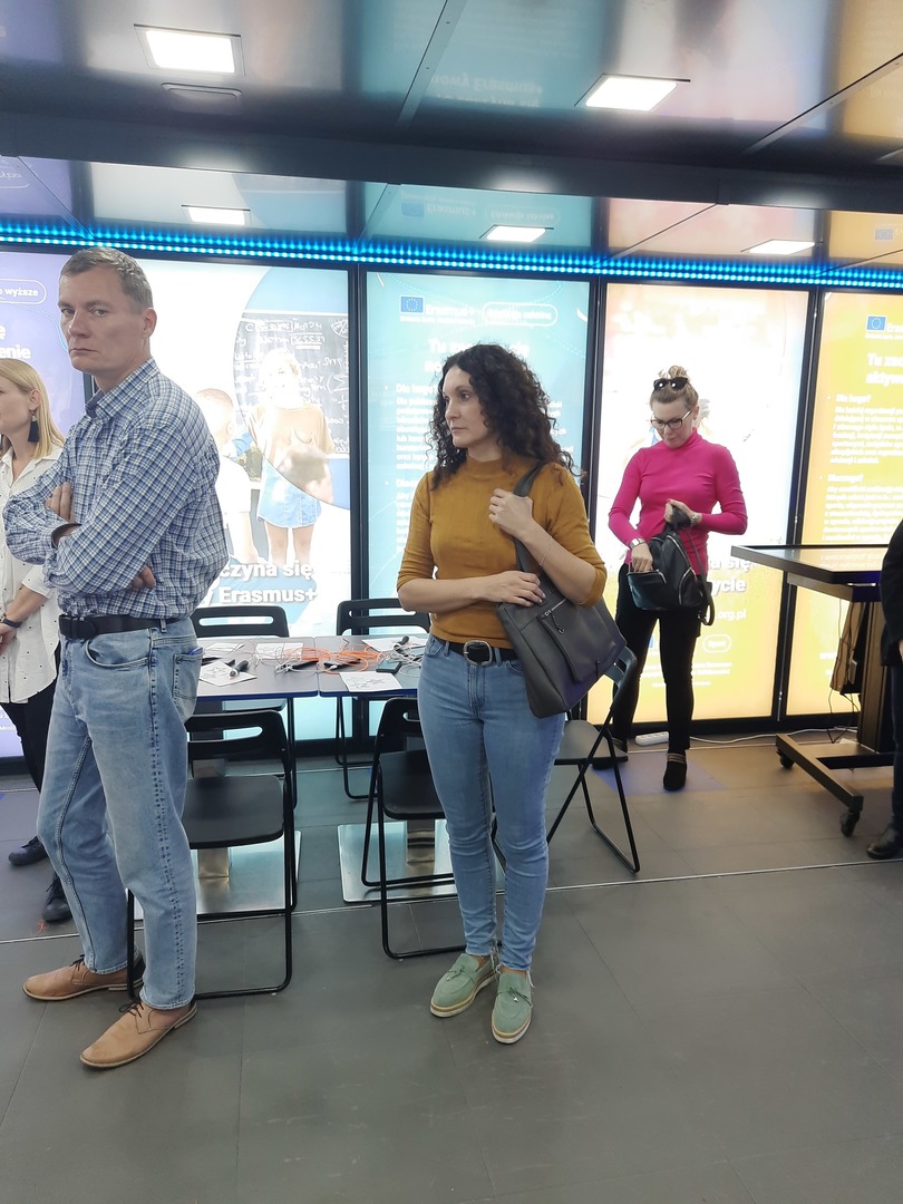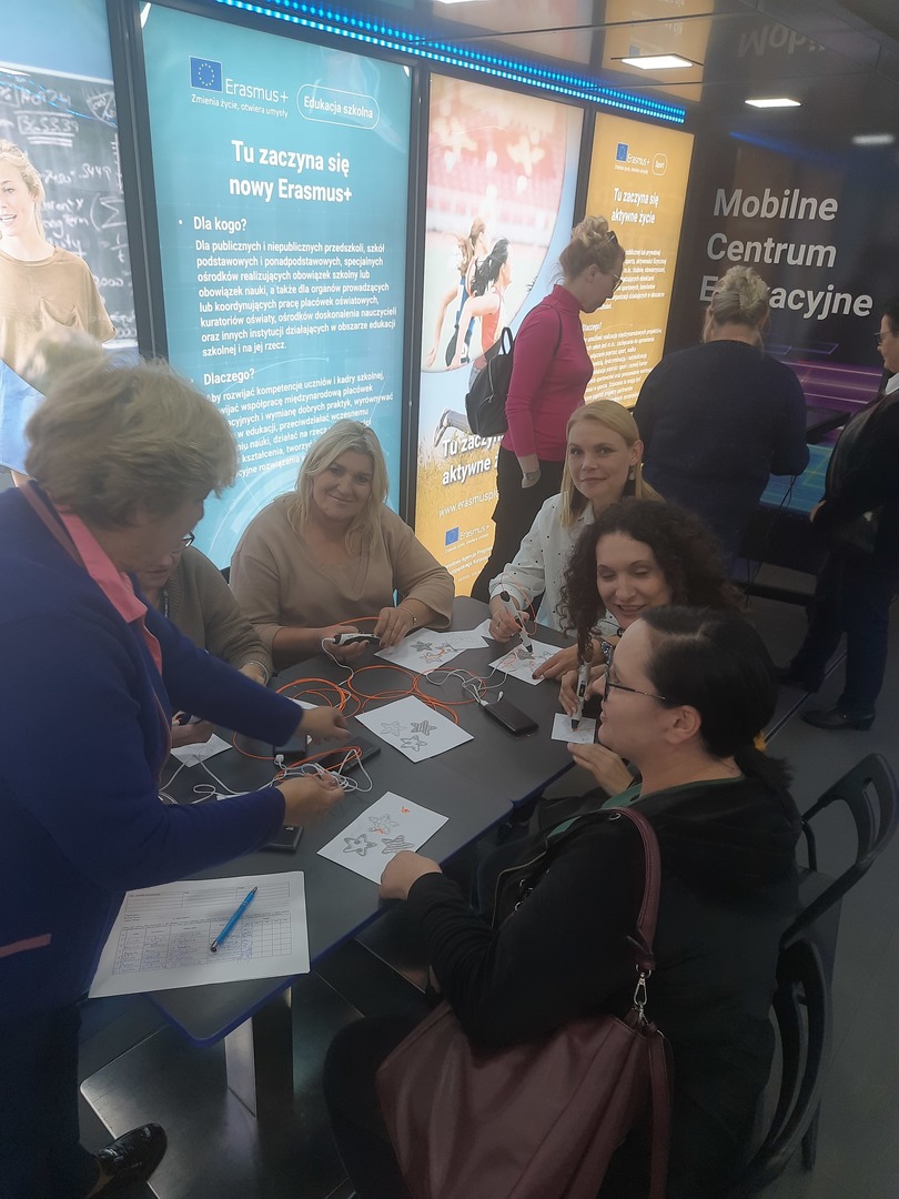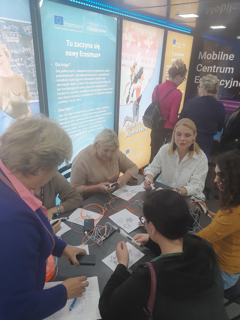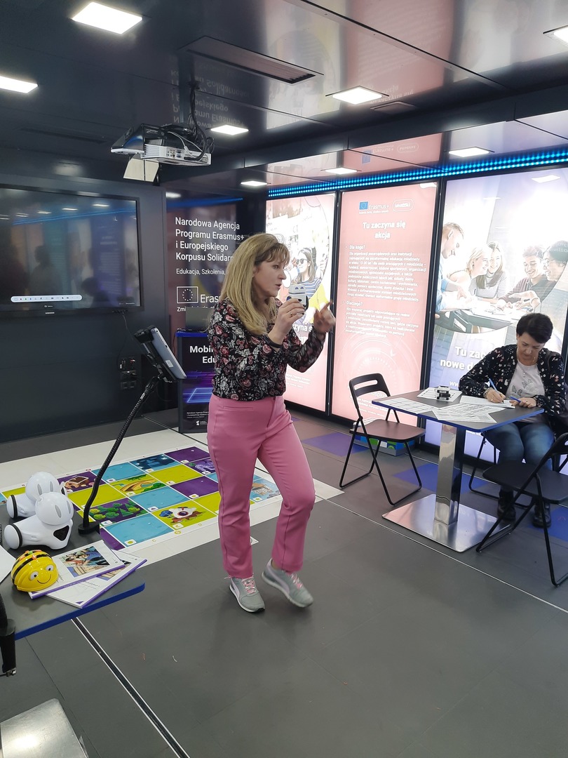 21 października nauczyciele z naszej szkoły wzięli udział w zajęciach zorganizowanych przez Mobilne Centrum Edukacyjne. Podczas warsztatów mogli zanurzyć się w świecie wirtualnej nauki, odkryć tajniki robotyki, nauczyć się podstaw programowania a także zobaczyć jak technologie XXI wieku w łatwy sposób wprowadzić do zajęć szkolnych. Mobilne Centrum Edukacyjne wyposażone jest interaktywne tablety, interaktywną tablicę oraz podłogę, kostki iMO-LEARN, okulary wirtualnej rzeczywistości, roboty do nauki programowania, stół oraz flipchart z ciekawymi aplikacjami do prowadzenia zajęć edukacyjnych. Zespół Narodowej Agencji Programu Erasmus+ zademonstrował jak połączyć technologię z klasycznym podręcznikiem i wzbogacić swój warsztat pracy. Nauczyciele mogli również zapoznać się z bogatą ofertą programów edukacyjnych realizowanych w ramach Narodowej Agencji Programu Erasmus+ i Europejskiego Korpusu Solidarności.