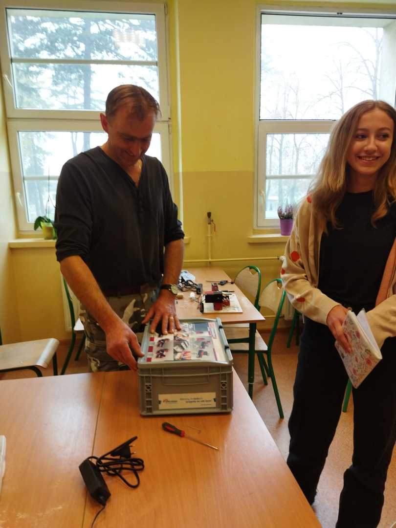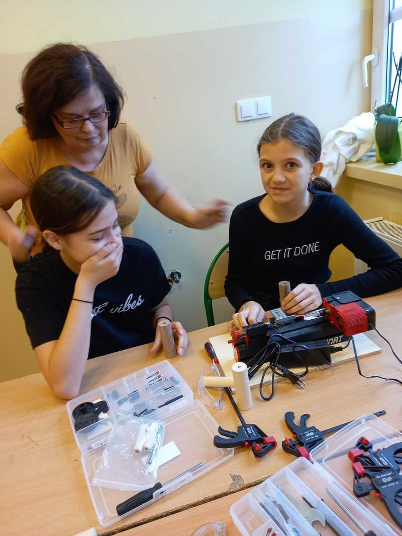 W ramach rządowego projektu Laboratoria Przyszłości ,z którego nasza szkoła pozyskała środki na zakup profesjonalnego sprzętu potrzebnego w kształtowaniu i rozwijaniu umiejętności manualnych i technicznych, uczniowie klas szóstych na lekcji techniki poznali narzędzia do obróbki drewna m.in. dłuta, młotki, wiertła, piły ręczne czy pilniki. Zajęcia były prowadzone przez p. Jolantę Piasecką przy wsparciu nauczyciela współorganizującego kształcenie - p. Ewy Pietrzyk. Gościem honorowym nietypowej lekcji techniki był pan Andrzej Chorąży - zawodowy stolarz, a prywatnie tata Amelii z klasy 8a. Szóstoklasiści mieli okazję uczyć się poprzez eksperymentowanie i zdobywać w ten sposób praktyczne umiejętności. Jak się okazało w trakcie spotkania z panem stolarzem obróbka drewna uczy cierpliwości, pokory, dokładności oraz pozwala oswoić się z niemal wszystkimi rodzajami narzędzi stolarskich.