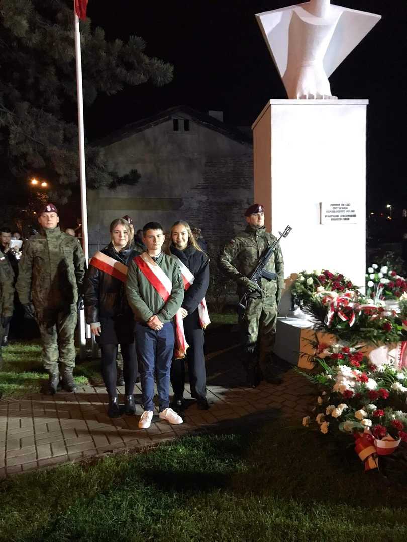 11 listopada jak co roku przedstawiciele naszej szkoły świętowali podczas gminnych obchodów tego święta przy pomniku Orła Białego. Uczniowie klasy VIIIa: Marta Adamocha, Weronika Zielińska oraz Wiktor Nowakowski stanowili poczet sztandarowy naszej szkoły i wraz z opiekunami paniami Anną Kolodziejczyk oraz Martą Lewandowska reprezentowali nasza szkolę. Nie zabrakło również innych uczniów naszej placówki, którzy przybyli wraz z rodzicami pod pomnik Orła Białego.