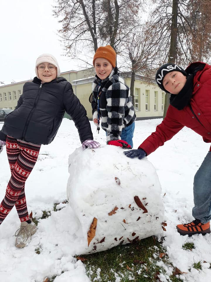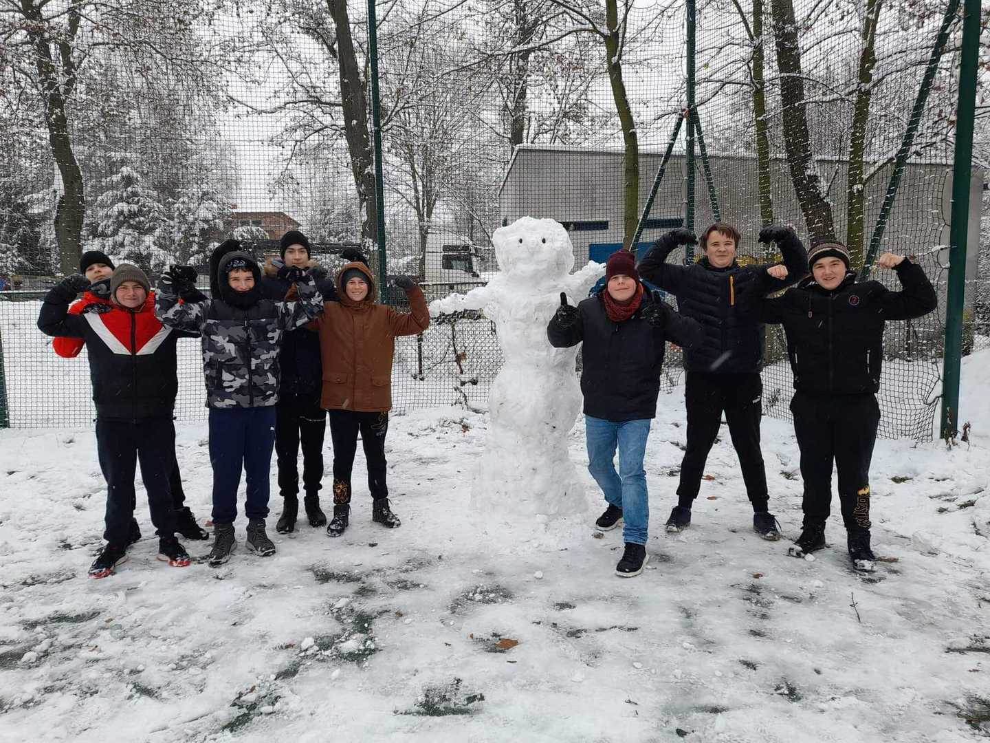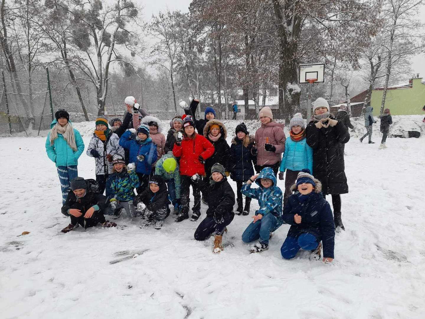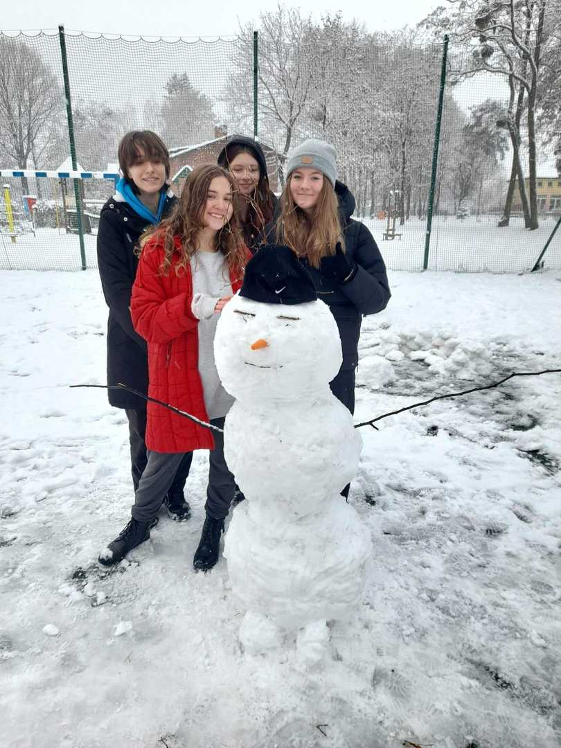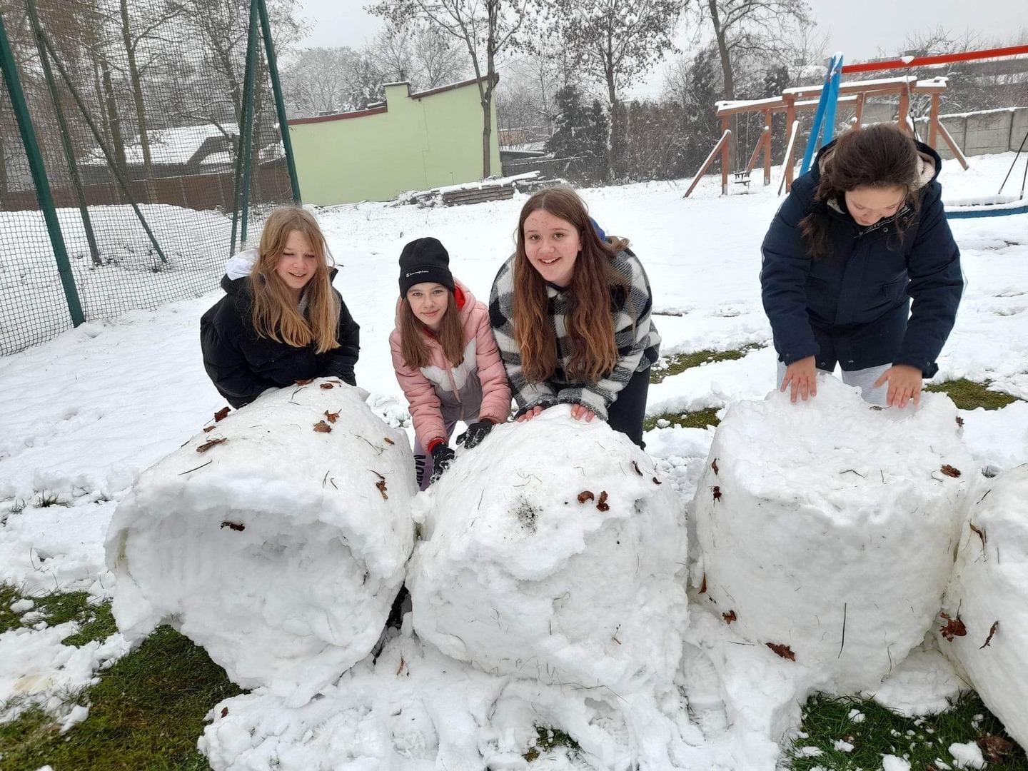 Korzystając z zimowej aury lekcje wychowania fizycznego wczoraj i dziś odbywały się na dworze. Nie zabrakło wojny na śnieżki oraz konkursu na najładniejszą budowlę