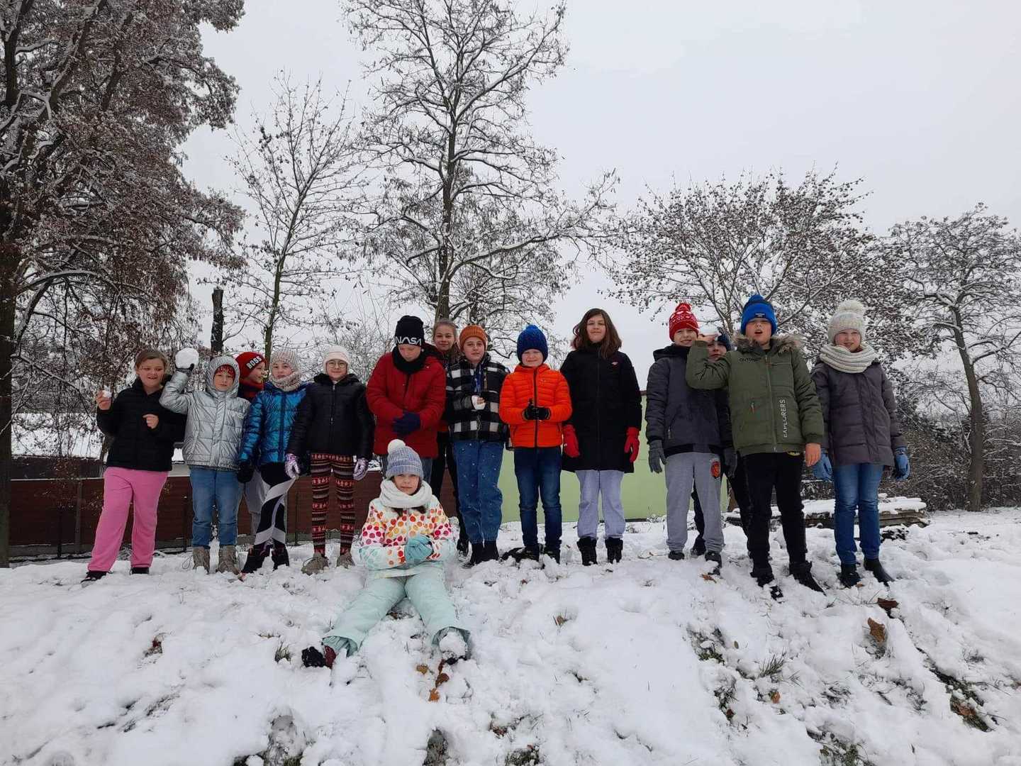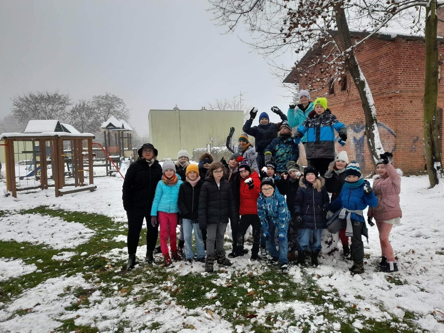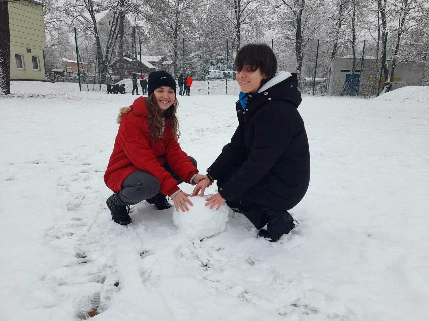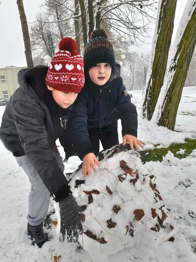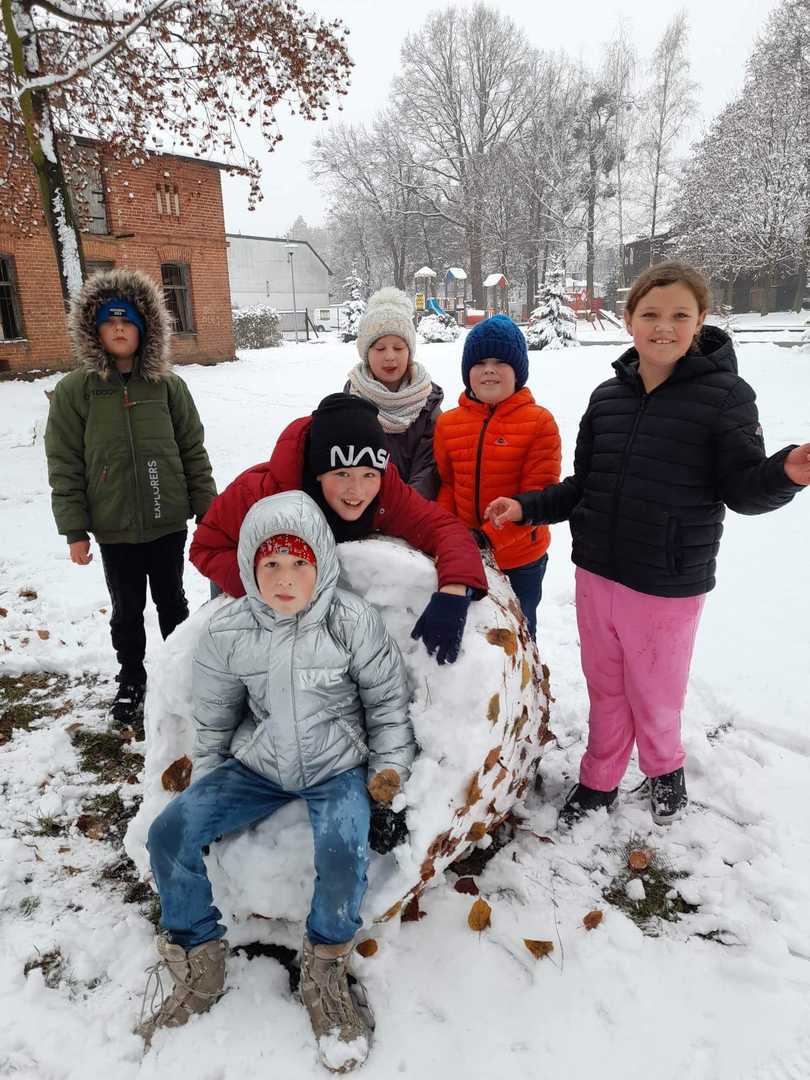 Korzystając z zimowej aury lekcje wychowania fizycznego wczoraj i dziś odbywały się na dworze. Nie zabrakło wojny na śnieżki oraz konkursu na najładniejszą budowlę