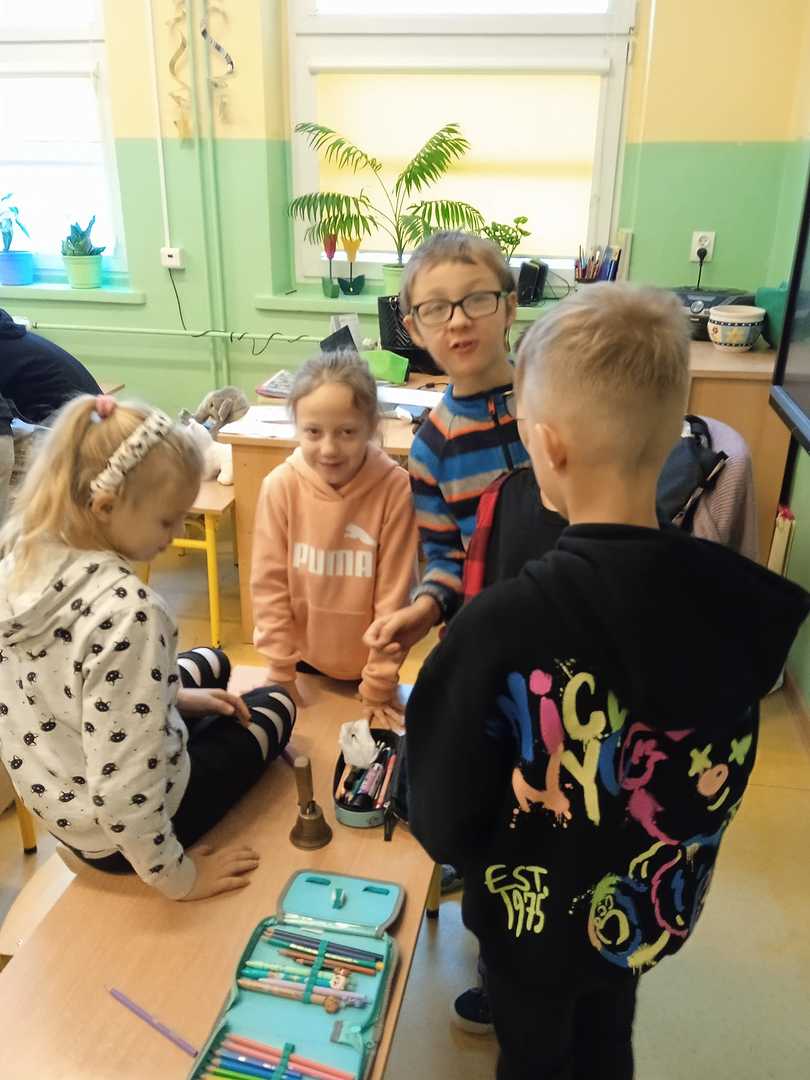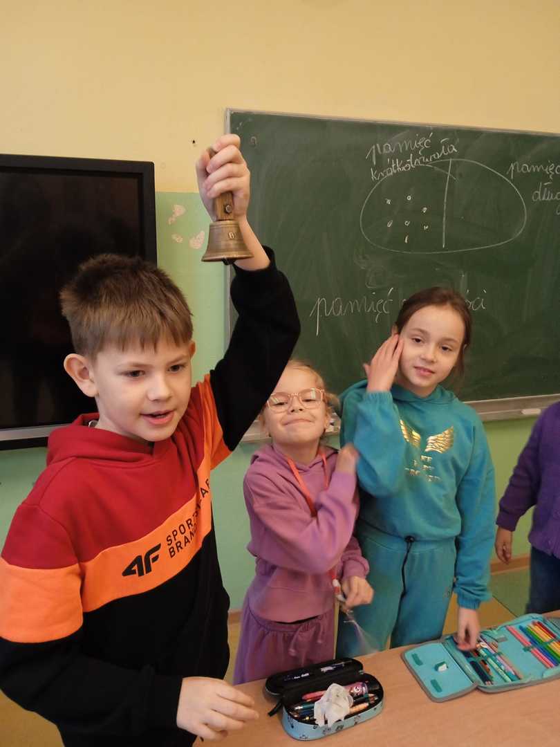 W klasie 2 b zostały przeprowadzone drugie zajęcia projektowe Fundacji Uniwersytetu Dzieci. Tym razem drugoklasiści próbowali odpowiedzieć na pytanie: Czy pamięć mózgu jest nieograniczona? Lekcja rozpoczęła się od krótkiej rundy z pytaniami, które dotyczyły tego kto siedzi obok nich, co jadły dziś na śniadanie, co jadły wczoraj na obiad. Najdłużej dzieci zastanawiały się nad odpowiedzią na pytanie dotyczące dnia wczorajszego. Uczniowie dowiedzieli się, że istnieje pamięć krótkotrwała, długotrwała i pamięć czynności. Wykonywali ciekawe doświadczenie wykorzystujące poszczególne zmysły w celu przywoływania konkretnych wspomnień. Dzieci podzielone były na 4 grupy i podróżowały między 4 stacjami wspomnień. Na pierwszej stacji czekało na nich zamknięte pudło wypełnione piórami. Wykorzystywali tutaj wyłącznie zmysł dotyku. Dzielili się z sobą wrażeniami i wspomnieniami z dotykanym przedmiotem. Stacja druga poświęcona była zmysłowi wzroku. Dzieci przyglądały się ilustracji przedstawiającej choinkę i wymieniały między sobą wspomnieniami związanymi z tym drzewem. Trzecia stacja wykorzystywała zmysł słuchu. Mali badacze dzwonili szkolnym dzwonkiem i przedstawiali swoje skojarzenia związane z wydawnym przez przedmiot dźwiękiem. Ostatnia stacja wykorzystywała zmysł węchu. Na stoliku znajdował się słoiczek z cynamonem. Unoszący się po klasie zapach u większości dzieci przywołał wspomnienie pieczonych świątecznych pierniczków. Doświadczenie potwierdziło tezę, że zmysły pozwalają nam zapamiętać lepiej różne zdarzenia, osoby czy miejsca. Uczniowie rozmawiali o warunkach sprzyjających i niesprzyjających nauce oraz poznali kilka mnemotechnik ułatwiających zapamiętywanie informacji. Na zakończenie obejrzeli film mówiący o tym w jaki sposób najłatwiej zapamiętać informacje. Na podstawie filmu oraz przekazanych przez wychowawcę wiadomości uczniowie wysnuli wniosek, iż pamięć mózgu jest nieograniczona. Dzieciom podobały się zajęcia. Z niecierpliwością czekają na kolejne, które będą równie interesujące.