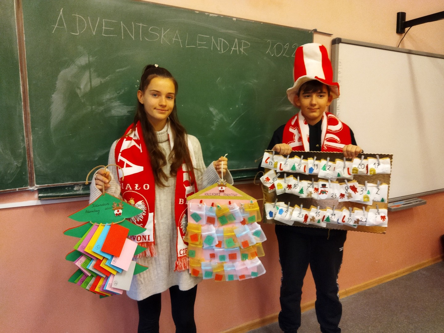 Dzisiaj na lekcji języka niemieckiego prezentowaliśmy nasze ręcznie wykonane kalendarze adwentowe, poznając jednocześnie wielowiekową piękną tradycję naszych sąsiadów.