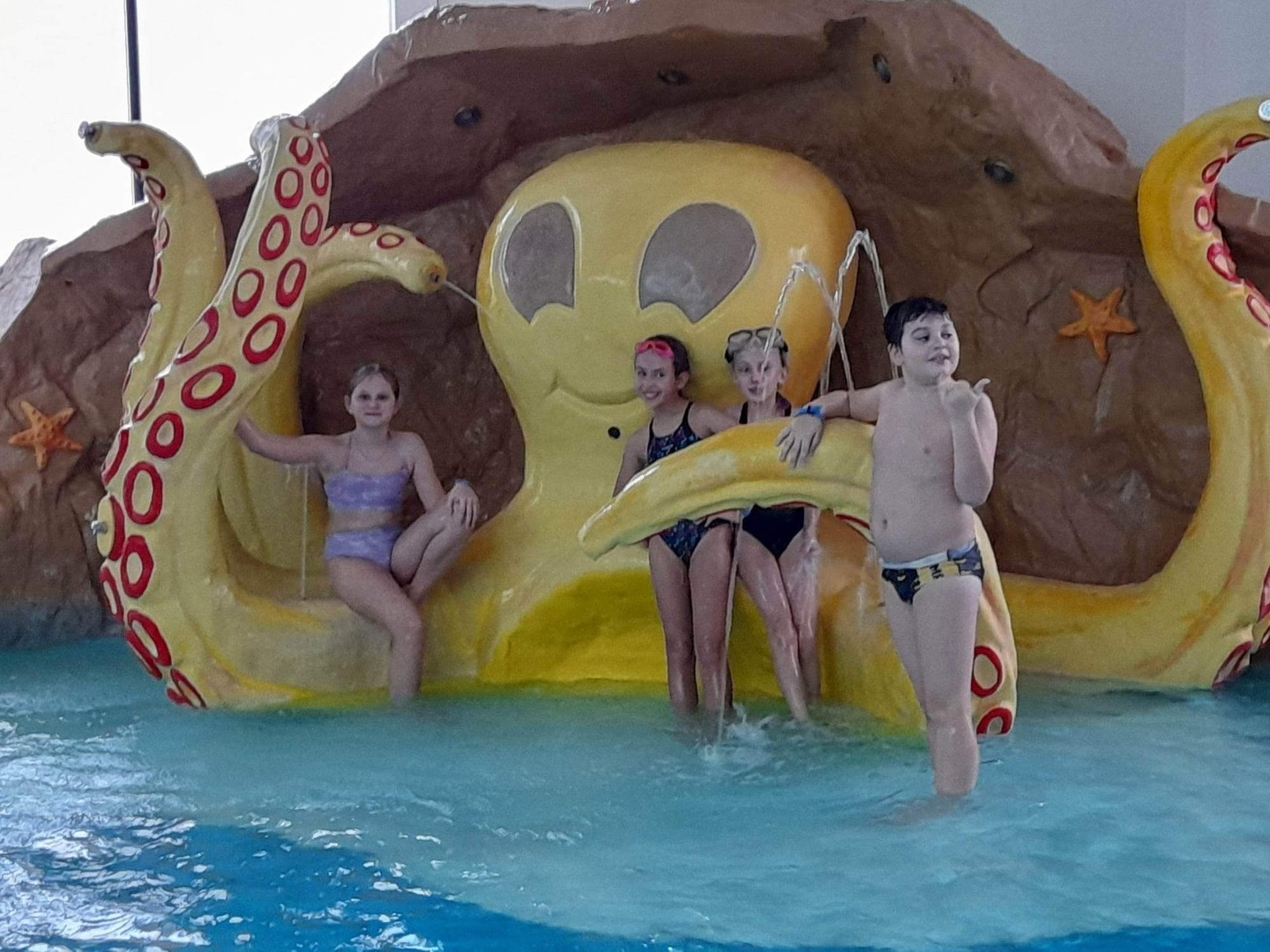 W dniu dzisiejszym uczniowie 4a wraz z wychowawcą p.D.Wilkowiecką i p.T.Piechotą uczcili mikołajki w bardzo aktywny sposób. Udaliśmy się do aquaparku Fala, by przez 3 godziny szaleć w wodzie. Nie zabrakło zjazdów pontonami, wyścigów