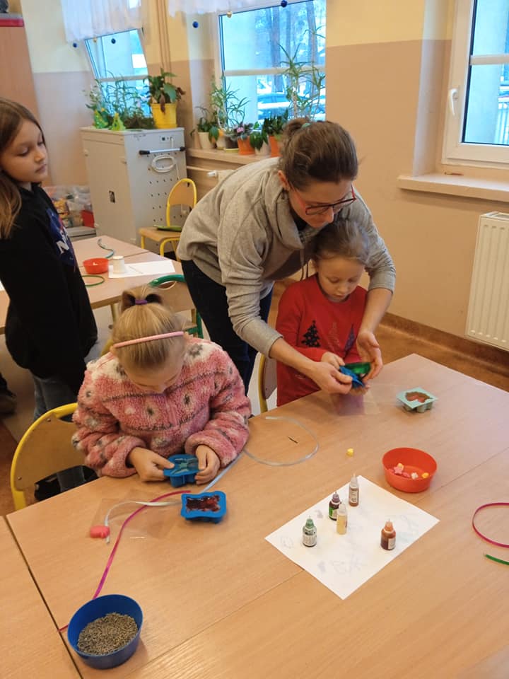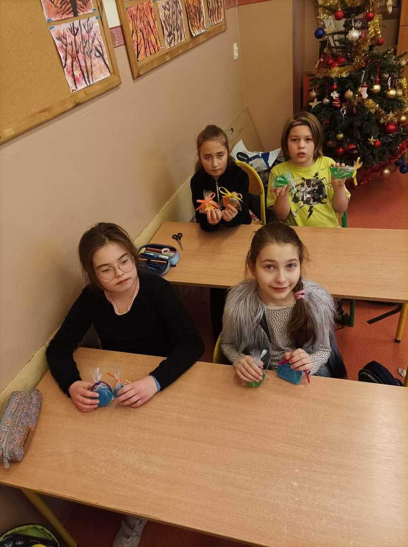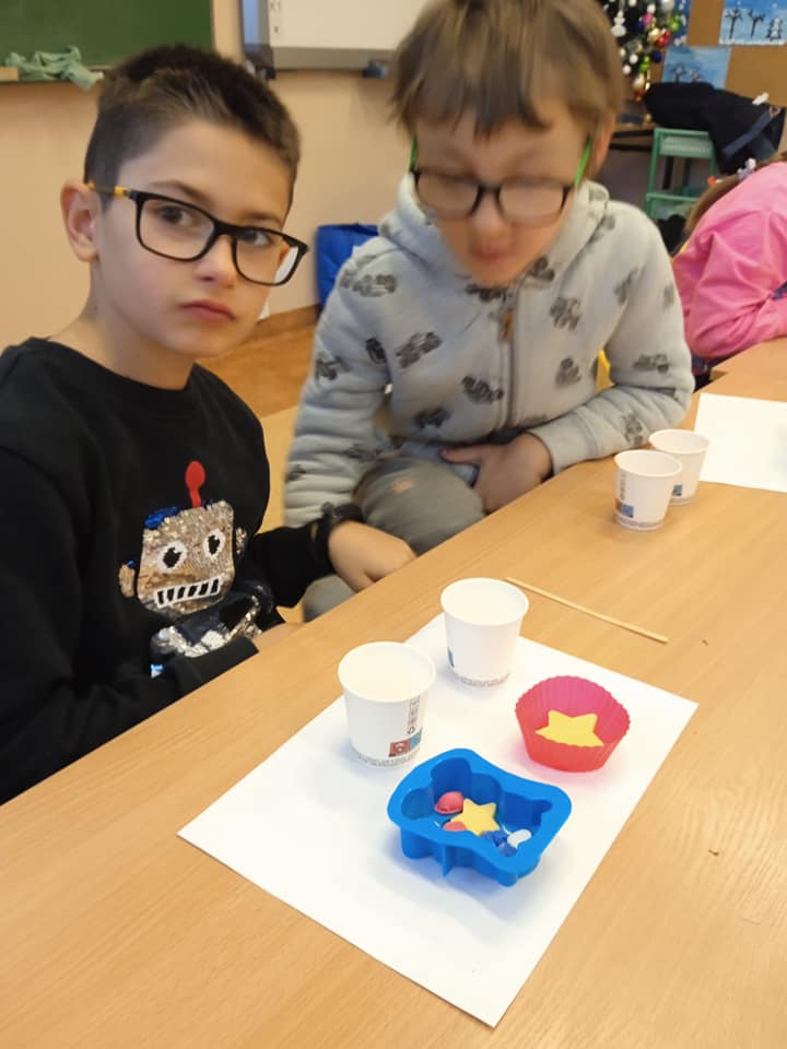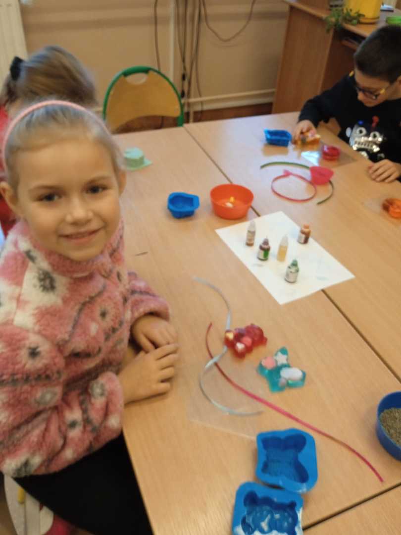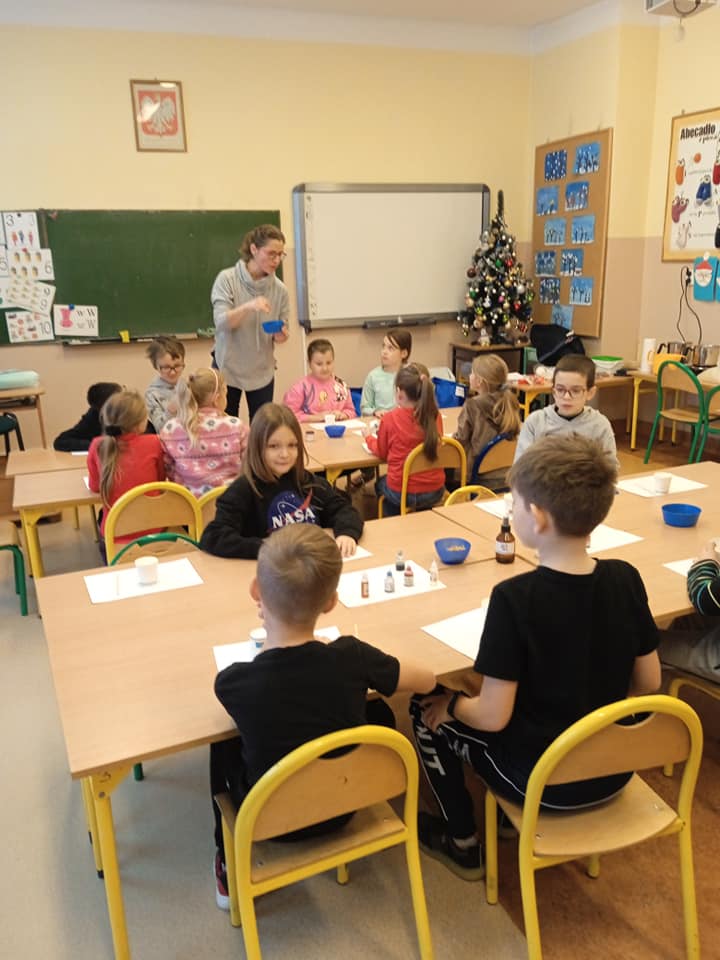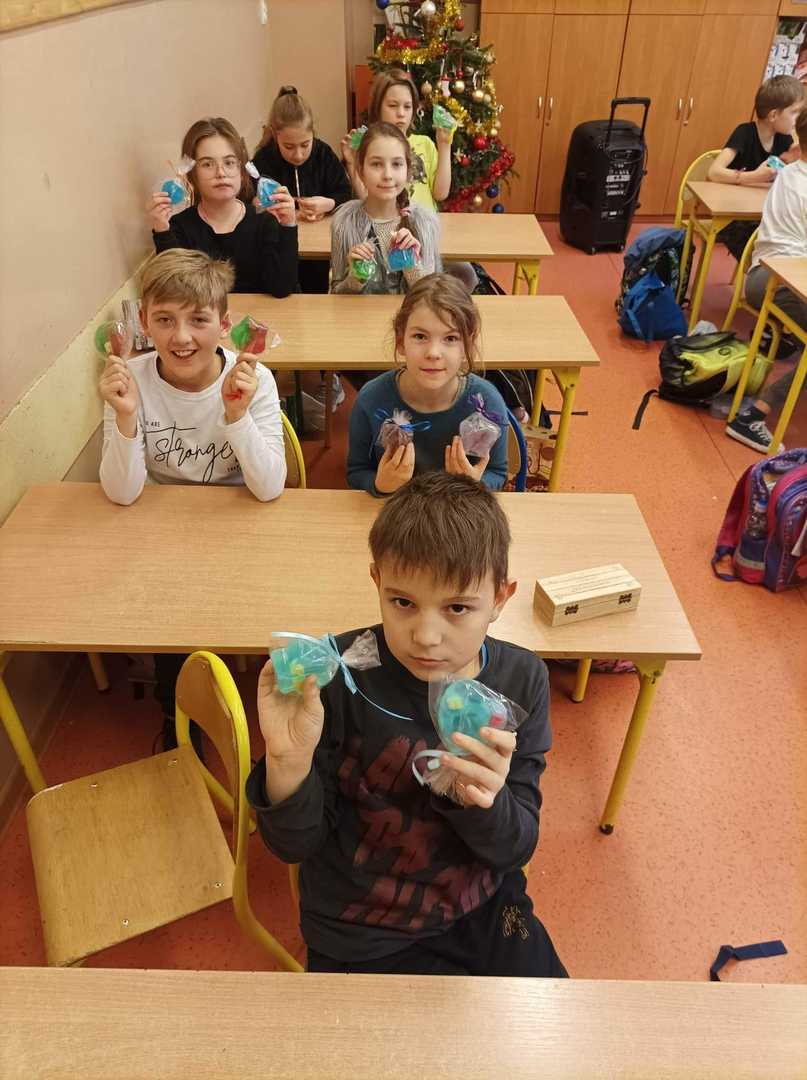 15 grudnia uczniowie klas 1 a,1b, 2b i 31 wzięli udział w warsztatach mydlarskich zorganizowanych przez "Tumydło Akademia". Podczas zajęć dzieci wykonały po dwa kolorowe i pachnące mydełka. Każdy wybrał kształt, kolor, zapach i dodatki, dzięki temu każde z wykonanych mydeł było niepowtarzalne i wyjątkowe. Dzieci były zachwycone!