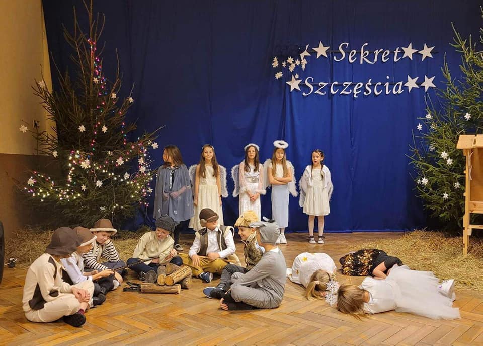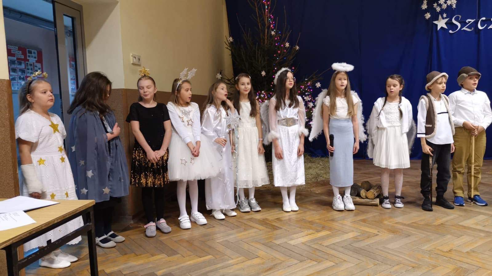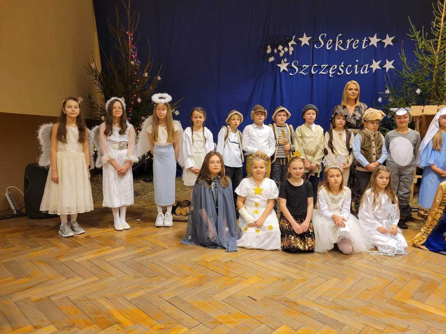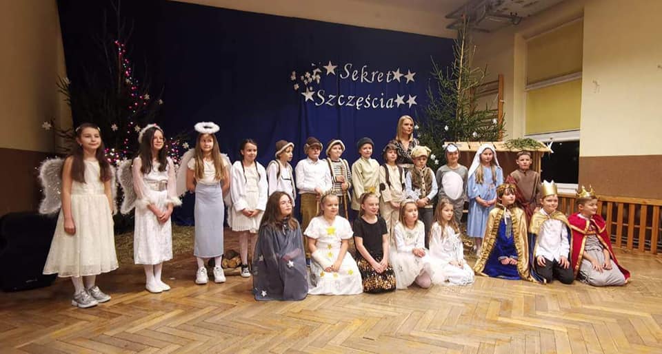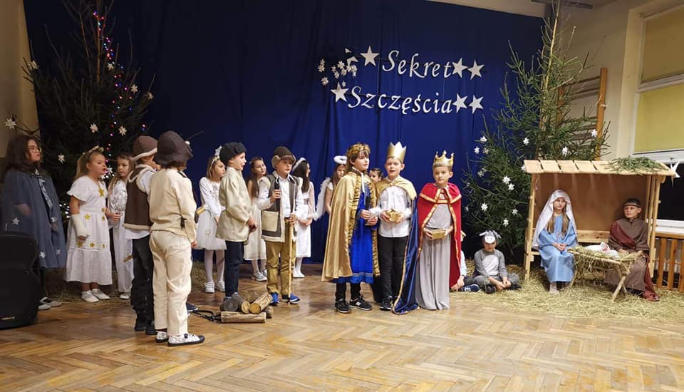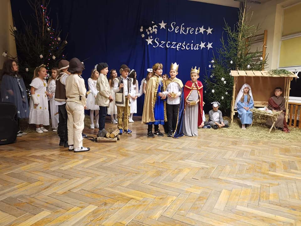 Boże Narodzenie to najpiękniejszy i najbardziej oczekiwany okres w roku. Zgodnie z wielowiekową tradycją obchodzimy je niezwykle uroczyście. W poniedziałek 19 grudnia z bożenarodzeniowym przesłaniem dla rodziców, dziadków i zaproszonych nauczycieli wystąpili uczniowie klasy IIIa, których przygotowała wychowawczyni Agnieszka Nowacka. Przypomnieli w ten sposób wydarzenia sprzed ponad dwóch tysięcy lat, kiedy to w Betlejem narodziło się Boże Dzieciątko.Uczniowie wcielili się w role Maryi i Józefa, pasterzy, gwiazd, nocy, aniołów, osiołka, owieczki i trzech królów przybywających złożyć pokłon Jezusowi narodzonemu w ubogiej stajence. Uroku spektaklowi dodały kolędy i pastorałki, które napełniły wszystkich świąteczną radością i sprawiły, że można było poczuć klimat zbliżających się świąt. Piękne kostiumy dzieci i ich talenty aktorsko - wokalne zostały nagrodzone gromkimi brawami.