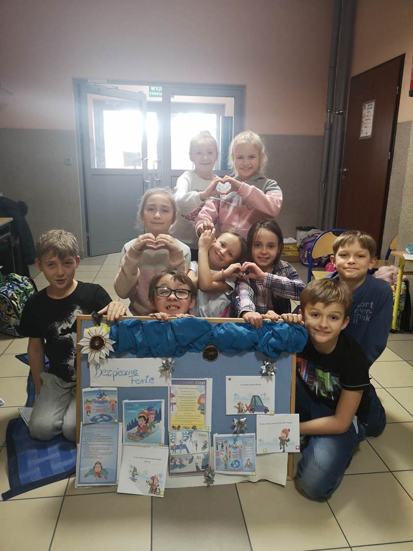 Podczas zajęć w świetlicy, każdego dnia przeprowadzano rozmowę na temat bezpiecznych ferii. Dzieci oglądały filmy o zimowych zabawach, dyskutowały, podawały przykłady i rysowały.