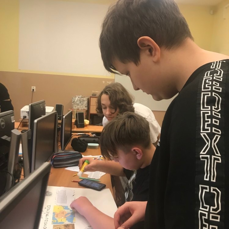 W czwartkowe przedpołudnie uczniowie klas siódmych brali udział w lekcjach powtórzeniowych, podczas których prezentowali wiadomości opanowane w ciągu ostatniego miesiąca. Świetnie sprawdzili się podczas pracy w grupie i wspólnym wykonywaniu prezentacji na temat wynalazków i przemian obyczajowych na przełomie XIX/XX wieku.