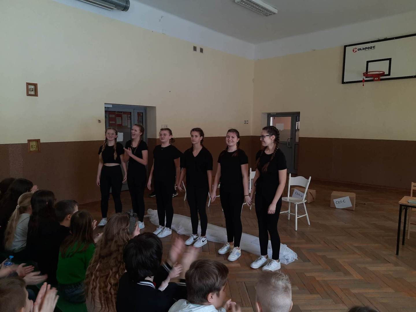 Uczniowie z klasy 7b przeprowadzili mądrą lekcję profilaktyki. Przedstawili ciekawą prezentację na temat bezpieczeństwa w internecie oraz wystawili krótki, poruszający spektakl profilaktyczny pt. ,,W sieci”. Przedstawienie bardzo emocjonalne, treściwe, zawierające szereg aspektów dotyczących zagrożeń w internecie.