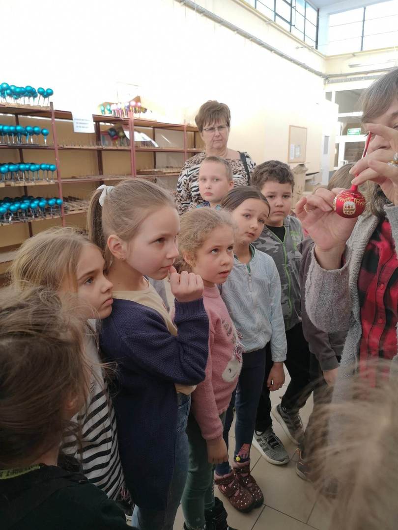 16 lutego klasa 1a wraz z wychowawczynią p. Zdzisławą Kupisz i p. Grażyną Welc, wybrała się do Fabryki Bombek "Szkło-Dekor" w Piotrkowie Trybunalskim. Program wycieczki obejmował zwiedzanie fabryki oraz warsztaty malowania bombek. Dzieci mogły podziwiać kolejne etapy powstawania szklanych ozdób choinkowych. Zobaczyły z czego się je wytwarza, jak wygląda ich wydmuchiwanie, srebrzenie oraz malowanie, dekorowanie, zakładanie zawieszek i wreszcie pakowanie. Każdy uczestnik wycieczki wziął udział w warsztatach malowania. Uczniowie przystąpili do działania z ogromnym zaangażowaniem. Na koniec otrzymali pięknie zapakowane swoje prace.