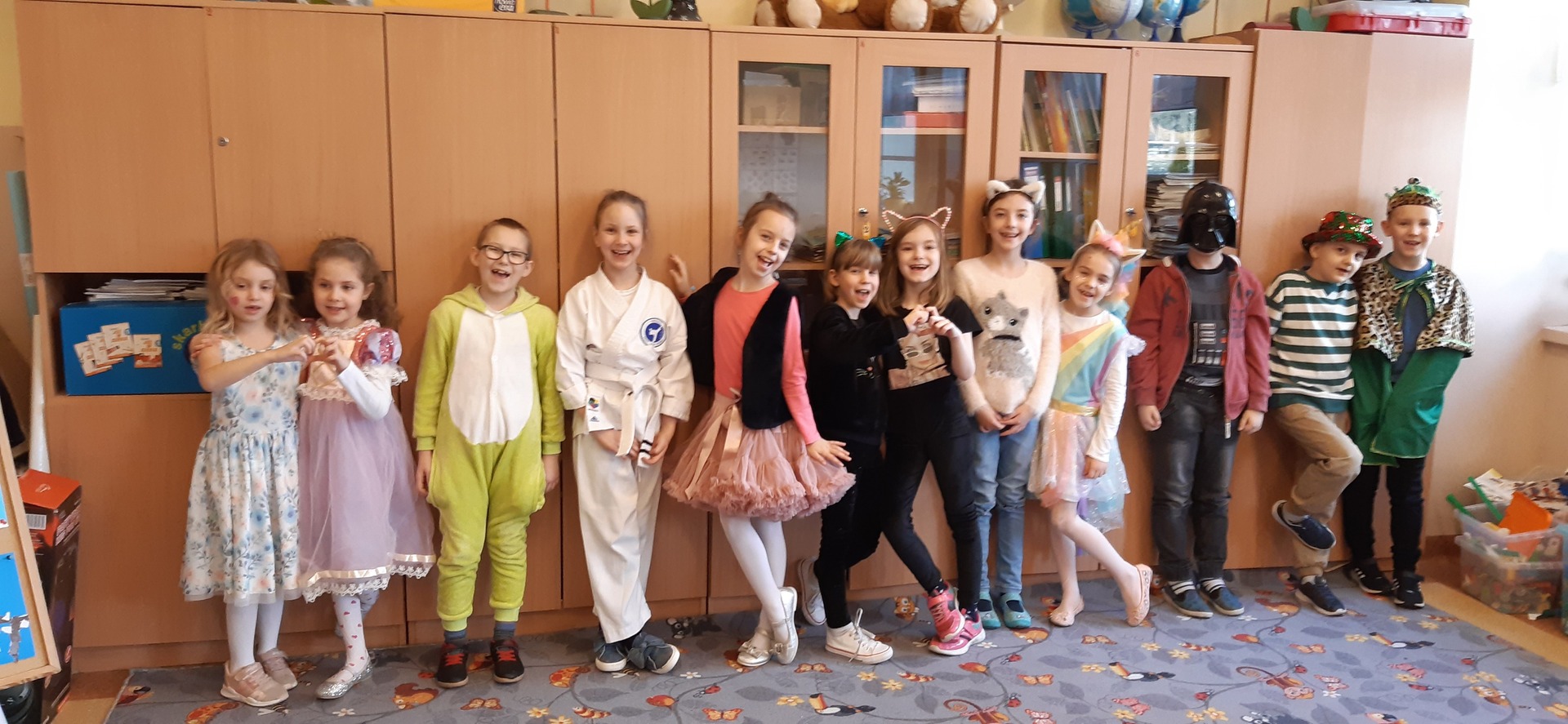 Ostatki to tradycyjnie zabawa z udziałem przebierańców. Korytarze naszej szkoły odmieniły się nie do poznania. Po każdym dzwonku, na przerwę, z pracowni lekcyjnych wychodzili uczniowie przebrani za różne postacie, byli bohaterowie baśni i filmów, para młoda, mafiosi, kibice, czy śpiochy w piżamach. Można było zobaczyć zarówno te dobre, jak i te złe charaktery. Zrobiło się kolorowo, bajecznie i zabawnie. Przebrali się nie tylko uczniowie, ale również niektóre panie nauczycielki. Gratulujemy wszystkim, którzy włączyli się do świętowania karnawału, wykazując się tak dużą kreatywnością oraz pomysłowością. Dzięki Wam ten dzień w szkole był wyjątkowy i niepowtarzalny.