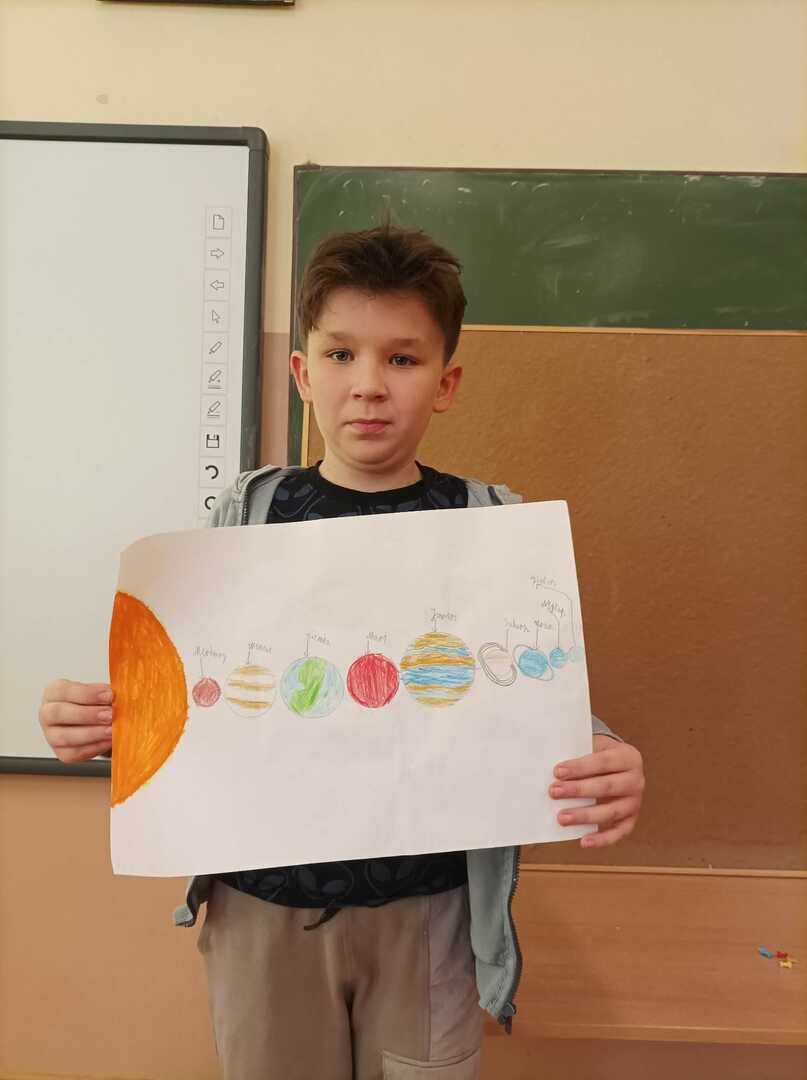 Uczniowie klasy 3 chętnie angażują się w wykonywanie dodatkowych zadań. Dziś na lekcji prezentowali przygotowany przez siebie Układ Słoneczny. Dzieci podczas tworzenia wykazały się dużą pomysłowością, kreatywnością, a także umiejętnościami plastycznymi.