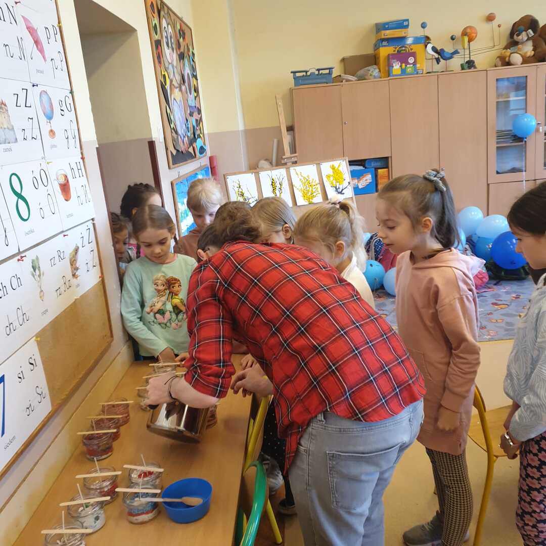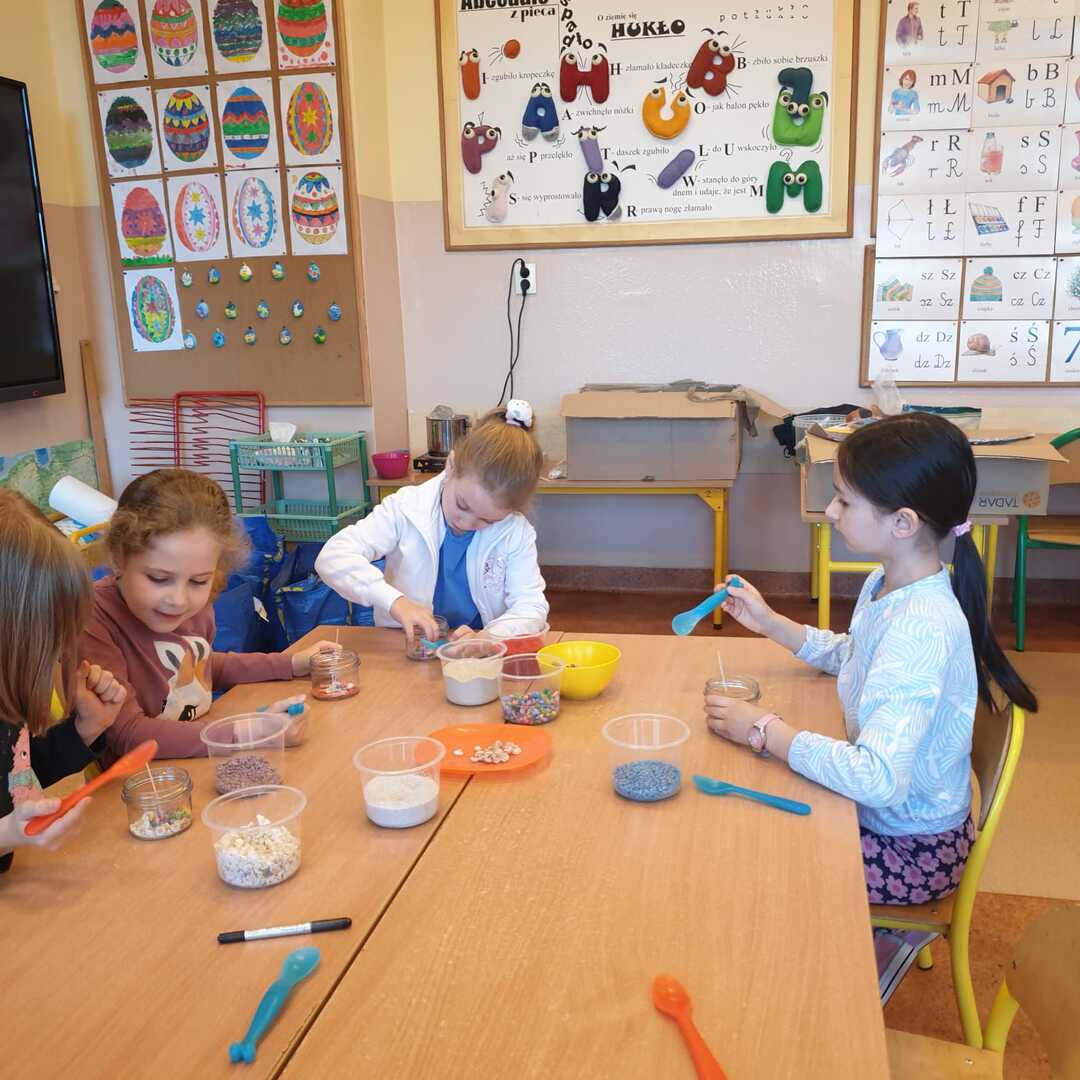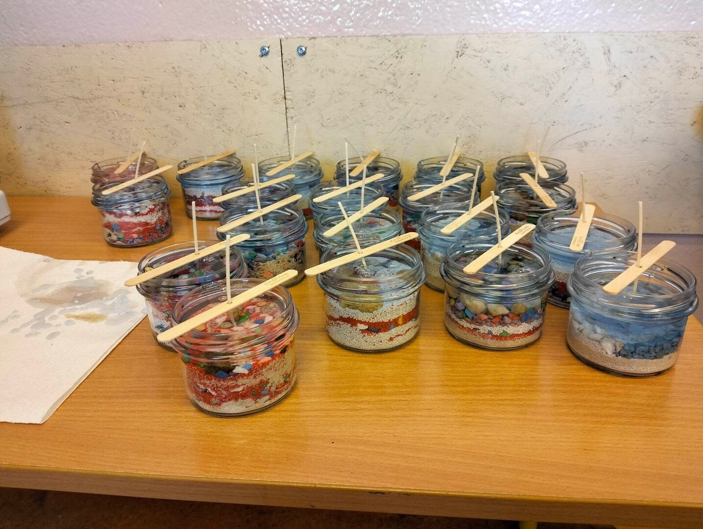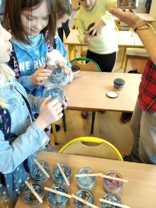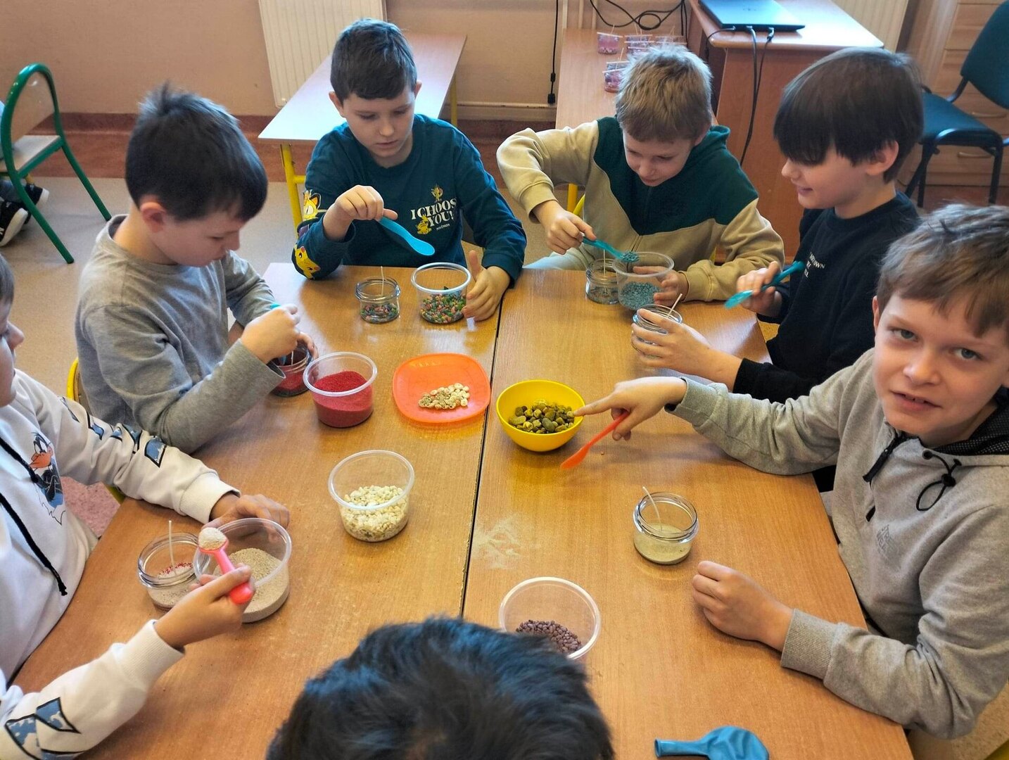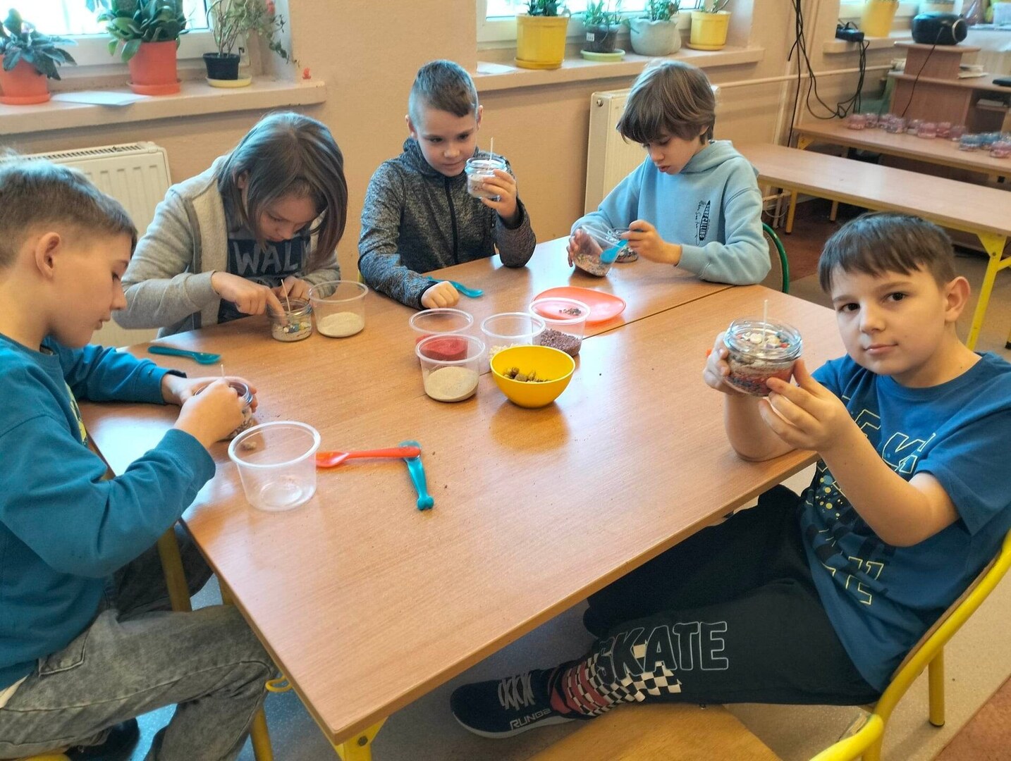 3 kwietnia uczniowie klas 1-3 uczestniczyli w warsztatach świecowych. Dzieci samodzielnie montowały knoty i wybierały ozdoby, które starannie układały w otrzymanych słoiczkach. Powstały bardzo oryginalne i z pewnością niepowtarzalne świece.