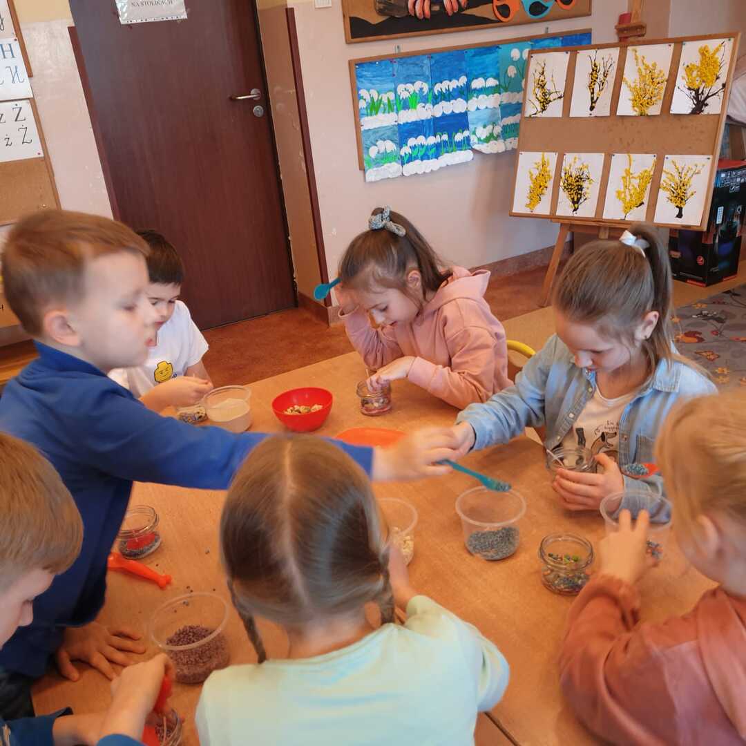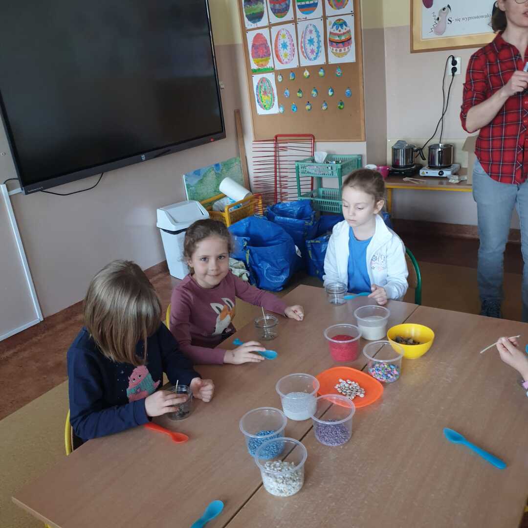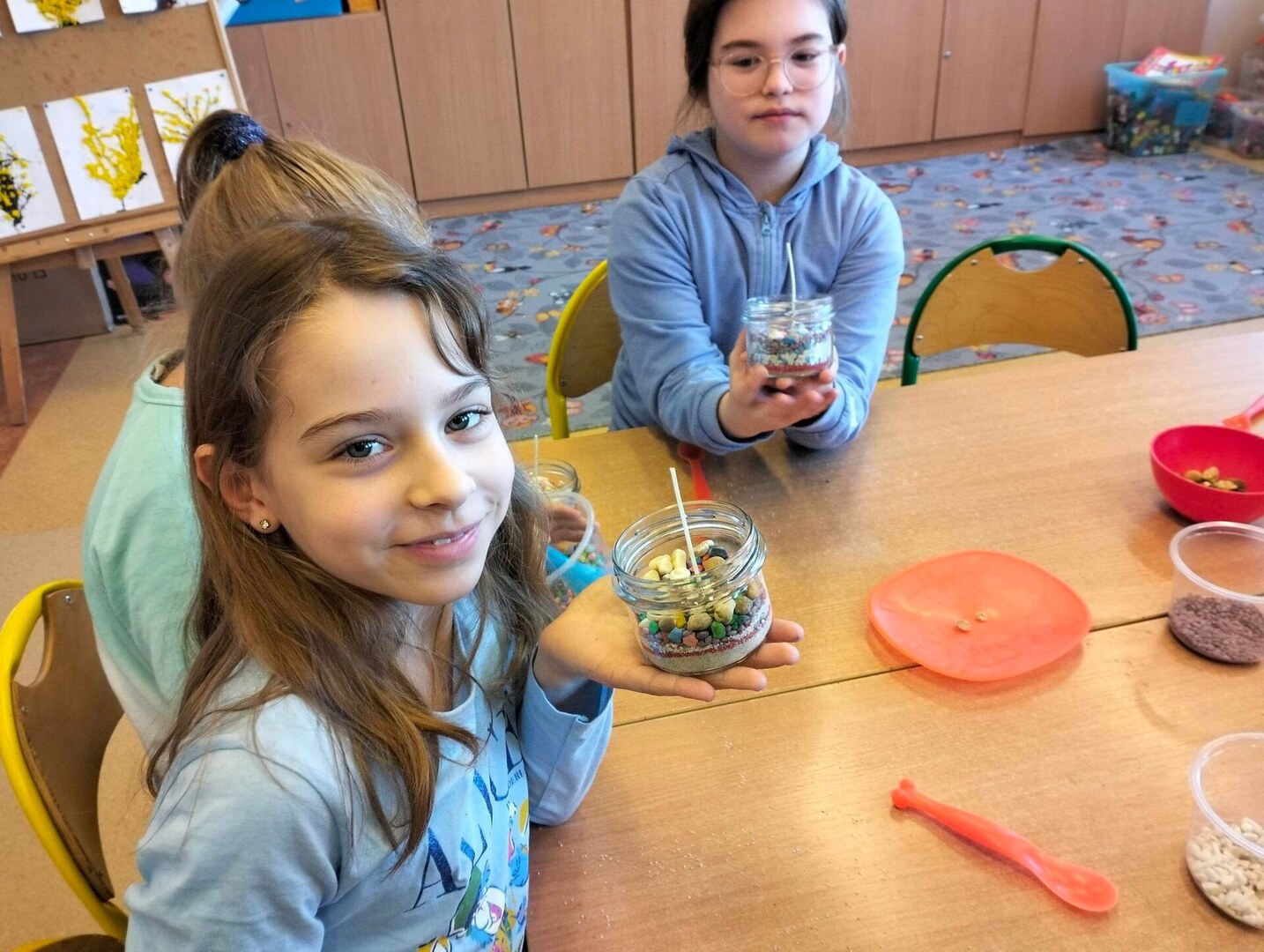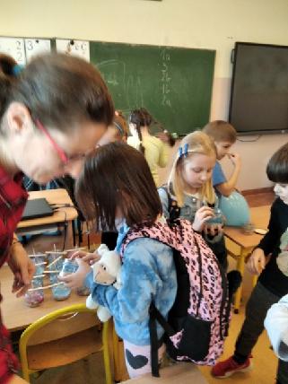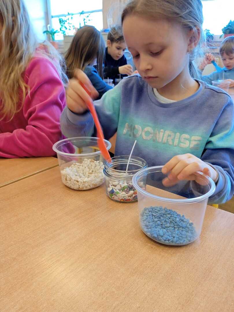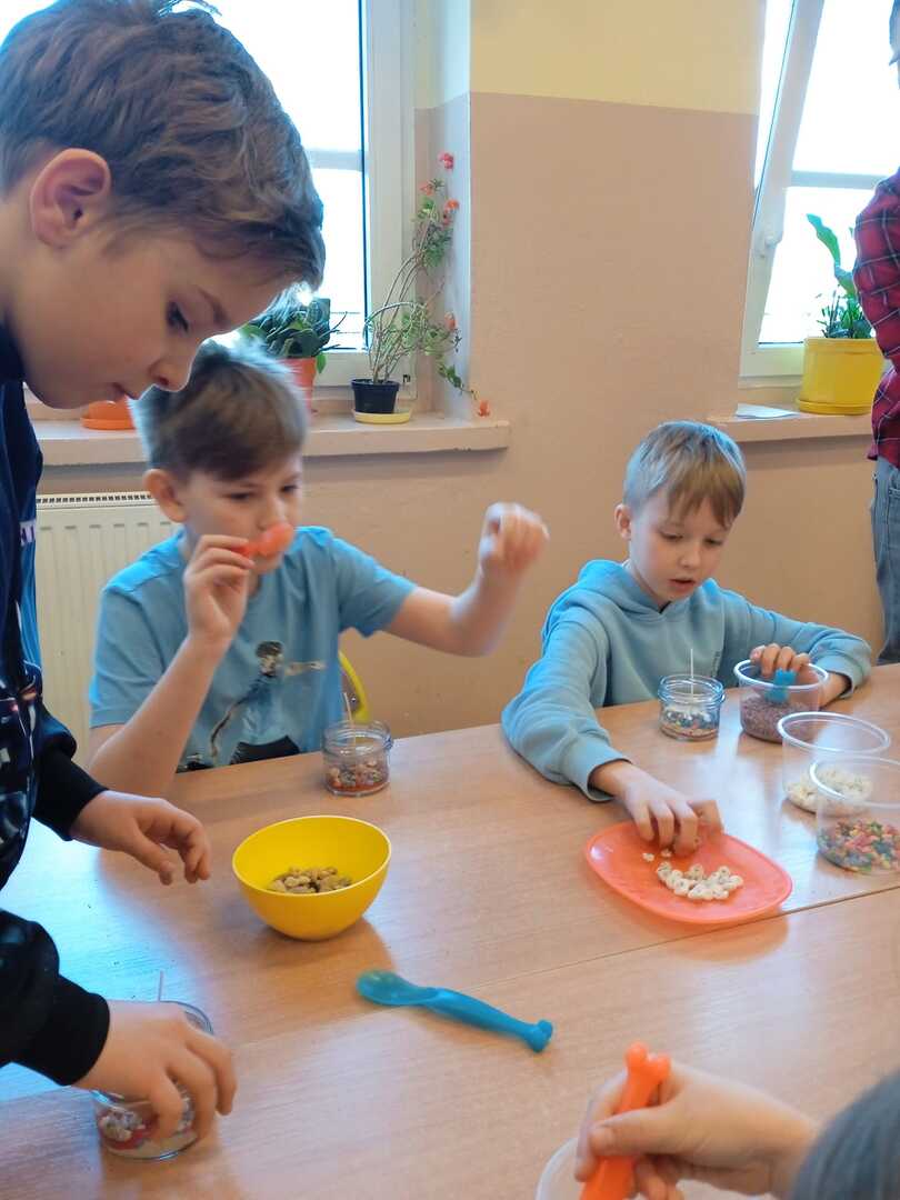3 kwietnia uczniowie klas 1-3 uczestniczyli w warsztatach świecowych. Dzieci samodzielnie montowały knoty i wybierały ozdoby, które starannie układały w otrzymanych słoiczkach. Powstały bardzo oryginalne i z pewnością niepowtarzalne świece.