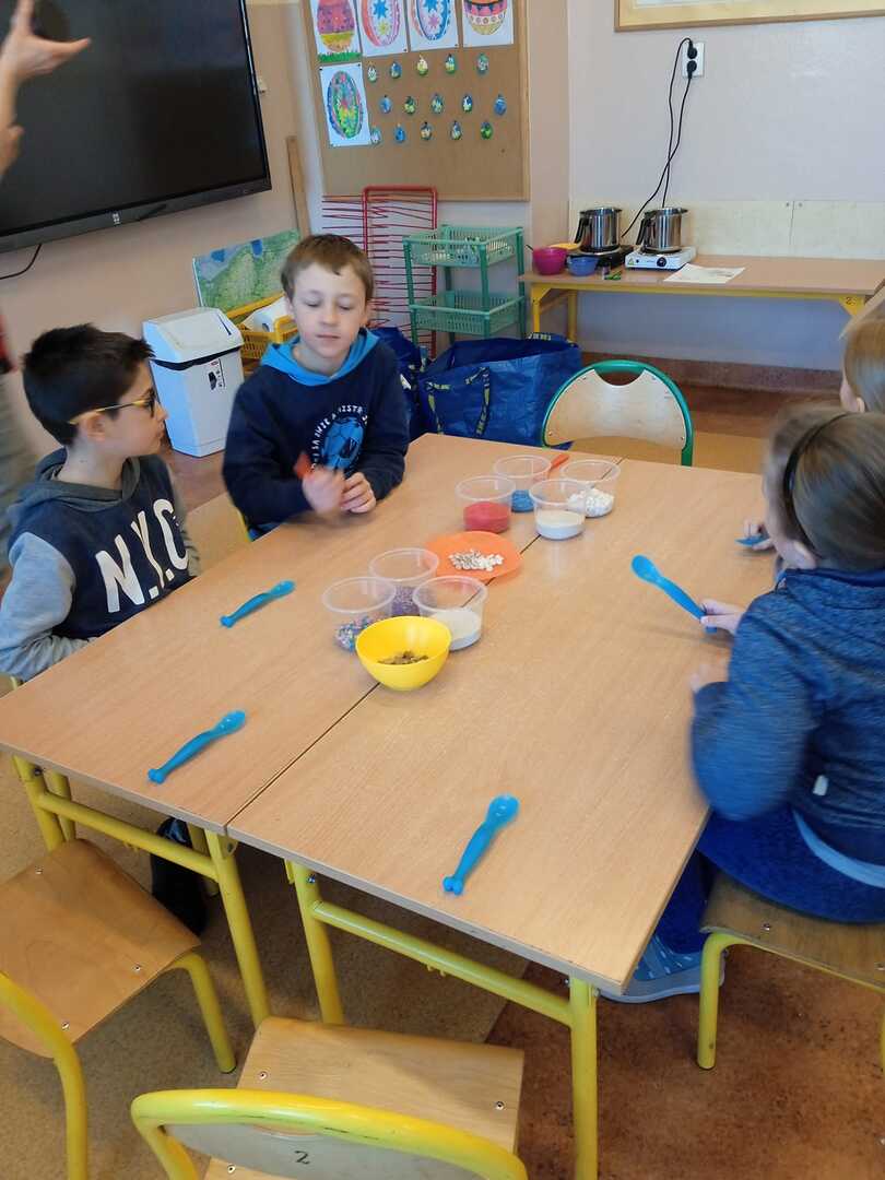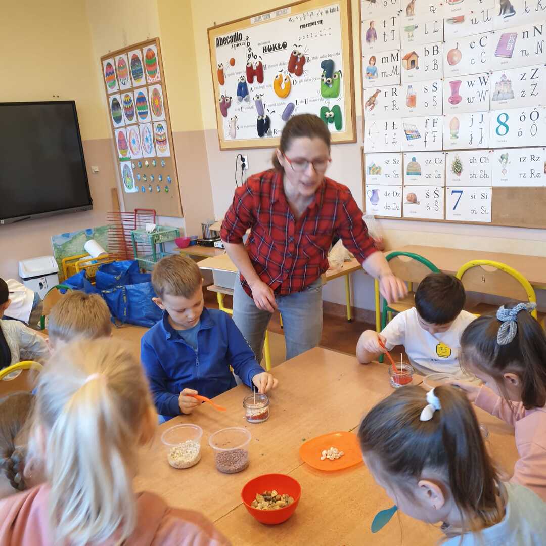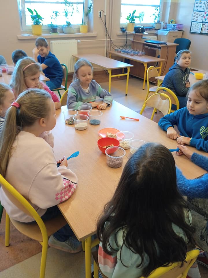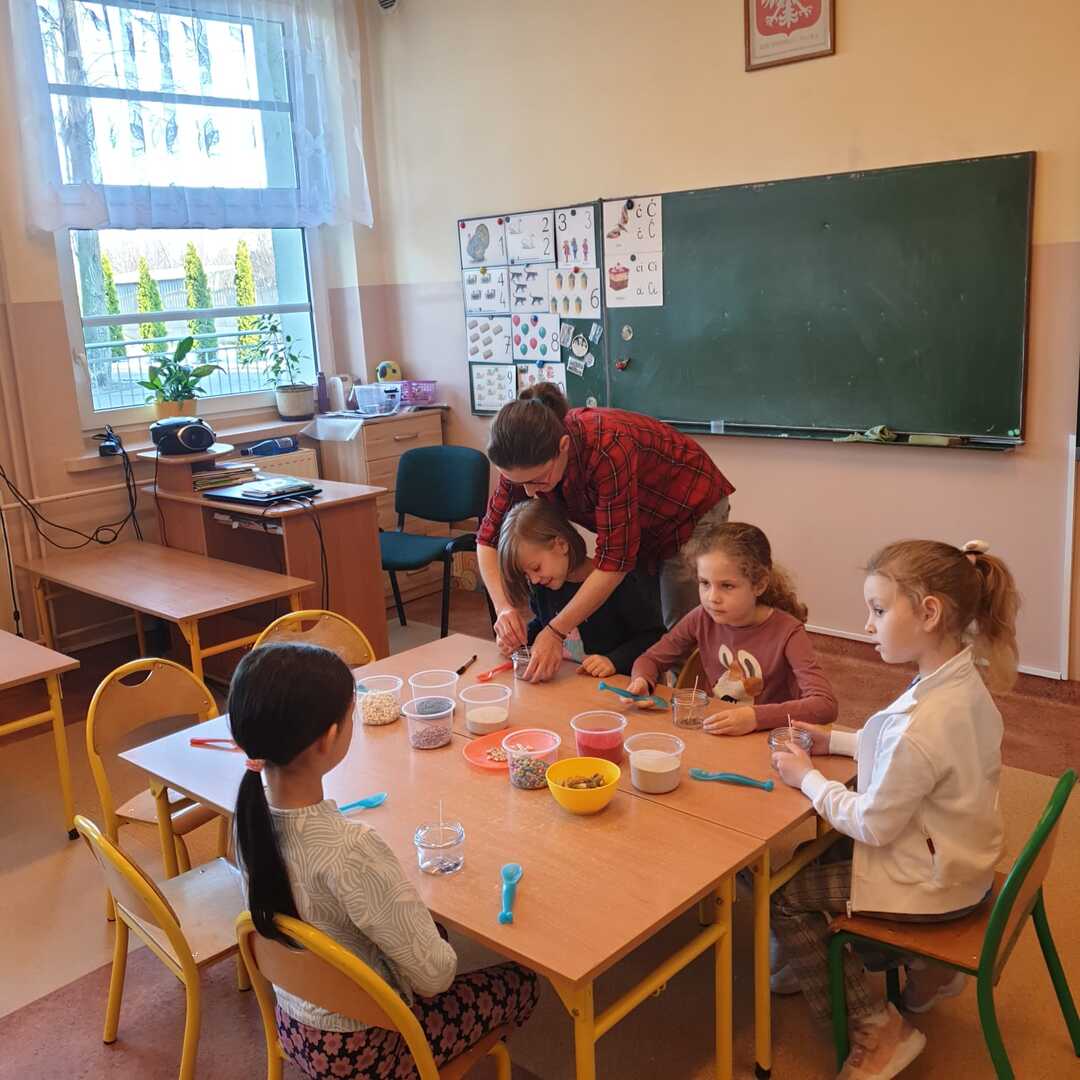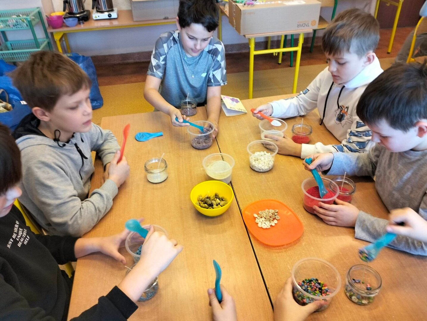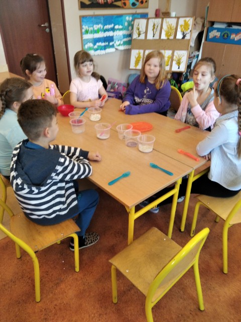 3 kwietnia uczniowie klas 1-3 uczestniczyli w warsztatach świecowych. Dzieci samodzielnie montowały knoty i wybierały ozdoby, które starannie układały w otrzymanych słoiczkach. Powstały bardzo oryginalne i z pewnością niepowtarzalne świece.