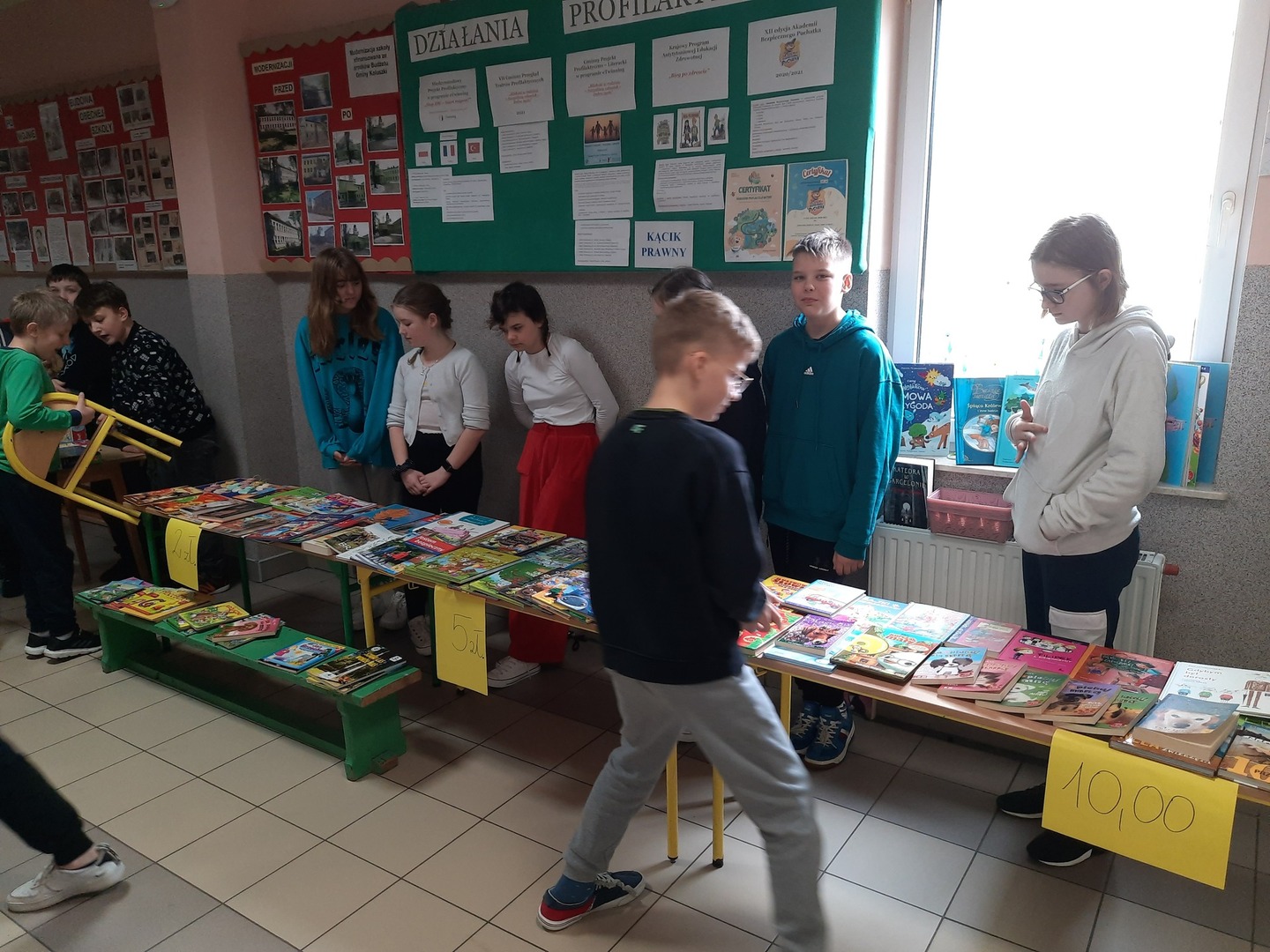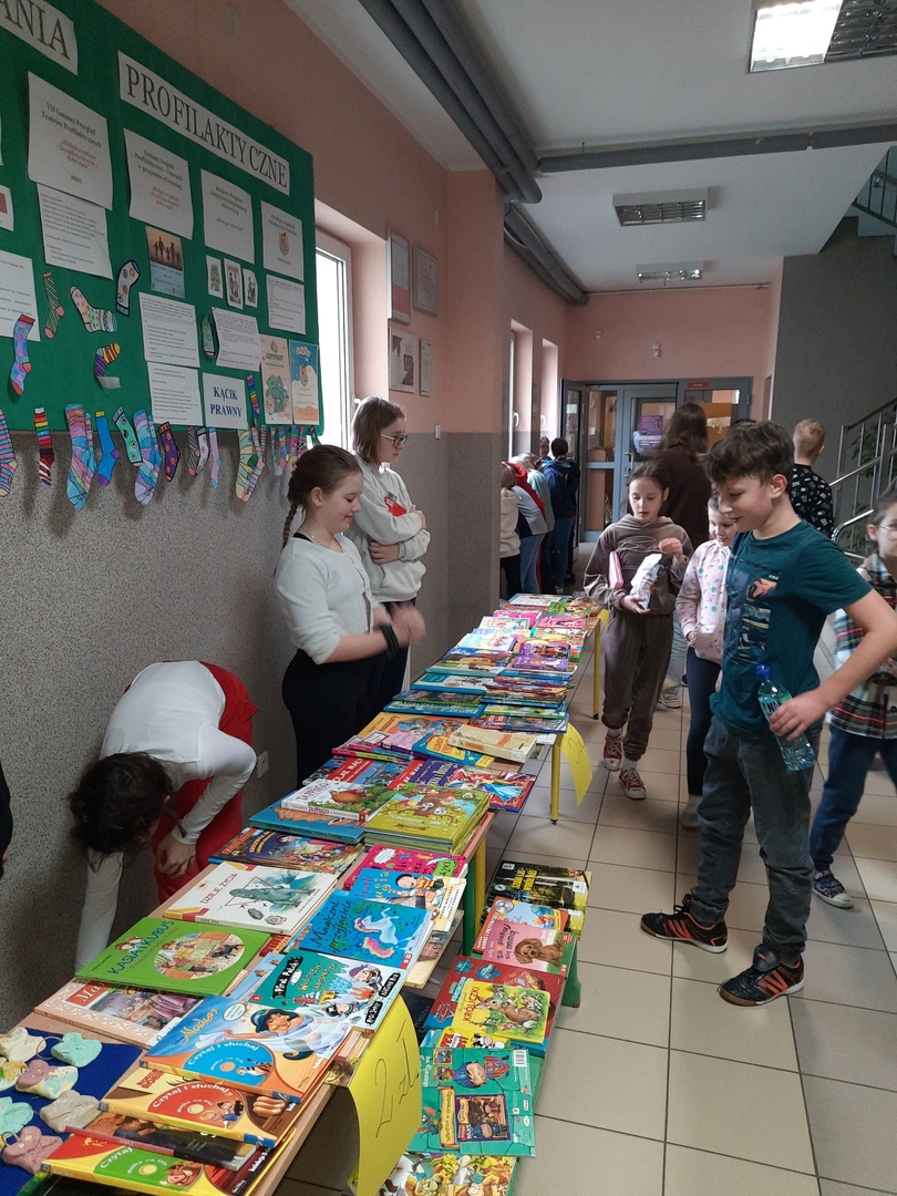 2 kwietnia obchodziliśmy Międzynarodowy Dzień Książki dla Dzieci. Z tej okazji biblioteka szkolna prowadzona przez p. G. Welc wraz z klasą 5a i wychowawcą p. M. Cichecką zorganizowała KIERMASZ TANIEJ KSIĄŻKI. Zainteresowanie było bardzo duże. Każdy mógł kupić książkę w cenie 1zł, 2zł, 5zł, 10 zł. W ofercie znalazły się także puzzle. Dochód ze sprzedaży zostanie przekazany na zakup nowych książek. Jeżeli nie znalazłeś(łaś) do tej pory interesującej pozycji wydawniczej w bibliotece szkolnej ZAPROPONUJ KSIĄŻKĘ DO ZAKUPU.