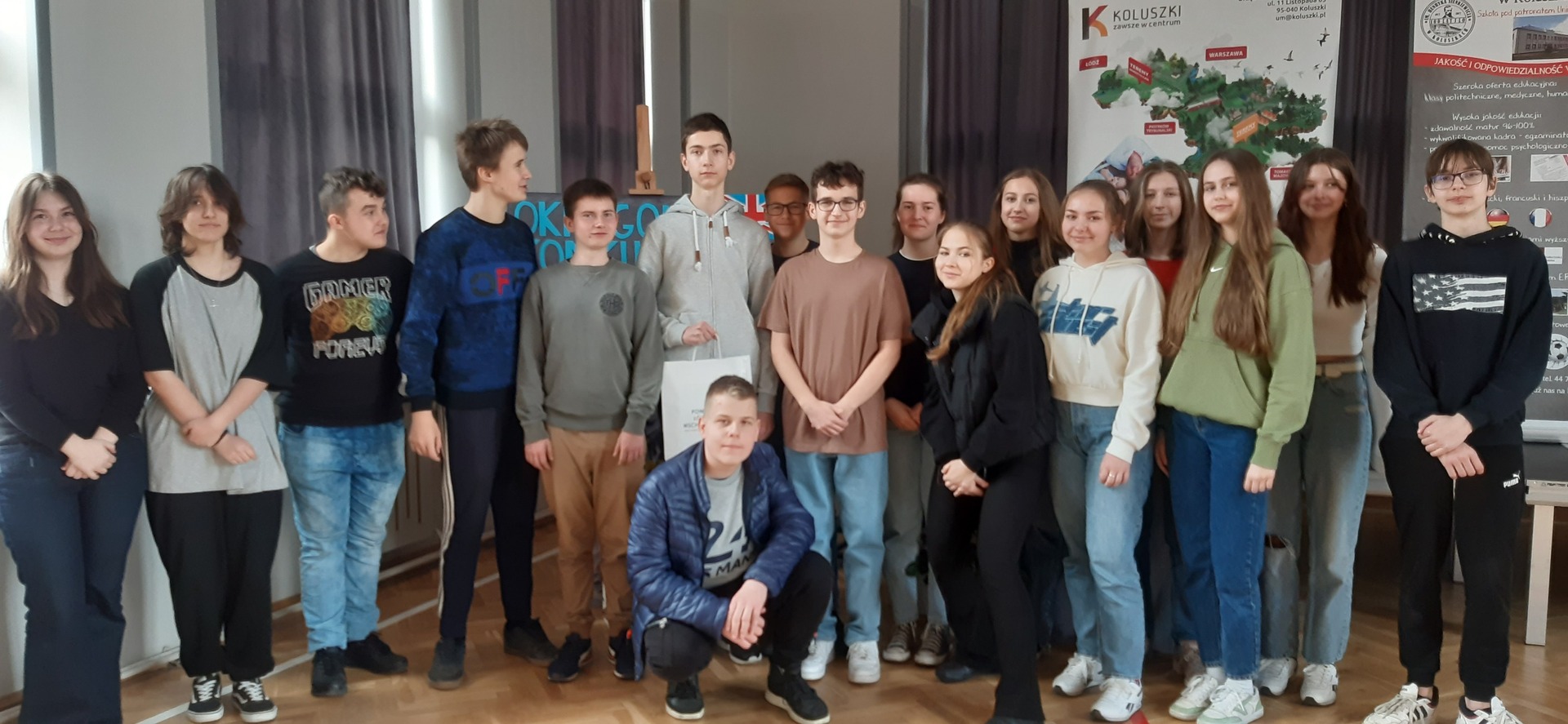 Miło nam poinformować, że Michał Malarz, uczeń klasy 8a naszej szkoły, został laureatem 3. miejsca V Okręgowego Konkursu z Języka Angielskiego i Niemieckiego, organizowanego przez I Liceum Ogólnokształcące im. Henryka Sienkiewicza w Koluszkach. Michał pokonał 190 uczestników z trzech powiatów – łódzkiego wschodniego, tomaszowskiego i brzezińskiego i znalazł się w trójce najlepszych uczniów ze szkół podstawowych, potwierdzając po raz kolejny wysoki poziom językowy, jaki reprezentuje. Młodemu angliście towarzyszyła wychowawczyni – p. Annika Niburska oraz koledzy i koleżanki z klasy, kibicując mu i wspierając brawami podczas gali finałowej. Po uroczystym wręczeniu cennych nagród ósmoklasiści mieli okazję zwiedzić koluszkowskie liceum oraz skorzystać z bogatej oferty „Drzwi Otwartych”, które odbywały się akurat tego dnia w placówce. Michałowi tradycyjnie gratulujemy kolejnego sukcesu, a wszystkim ósmoklasistom życzymy podejmowania trafnych wyborów na nowej drodze edukacyjnej!!!