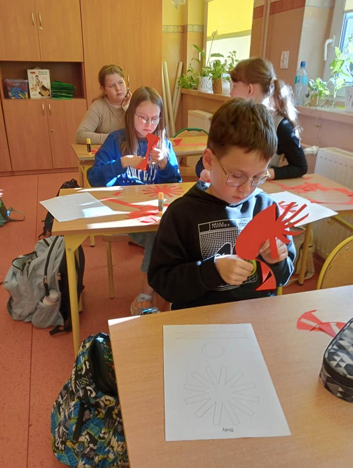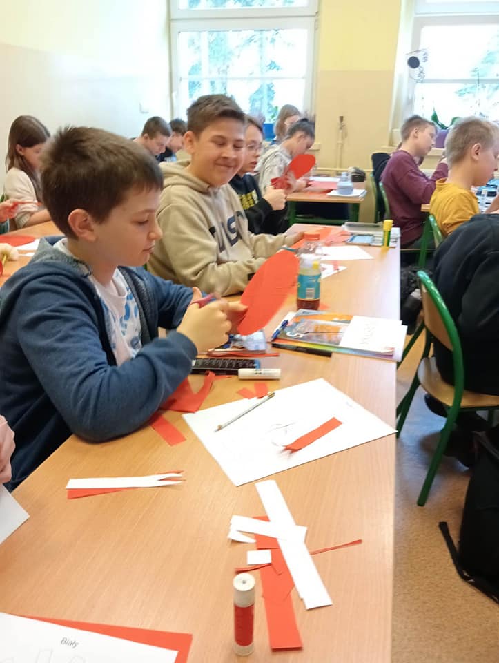 Lekcje plastyki upłynęły w tym tygodniu pod hasłem "Witaj Maj! 3 Maj!". Uczniowie pod kierunkiem p. Ewy Pietrzyk wykonywali Kokardy Narodowe, które dla nas Polaków są ważnym symbolem i Trzeciomajową tradycją.