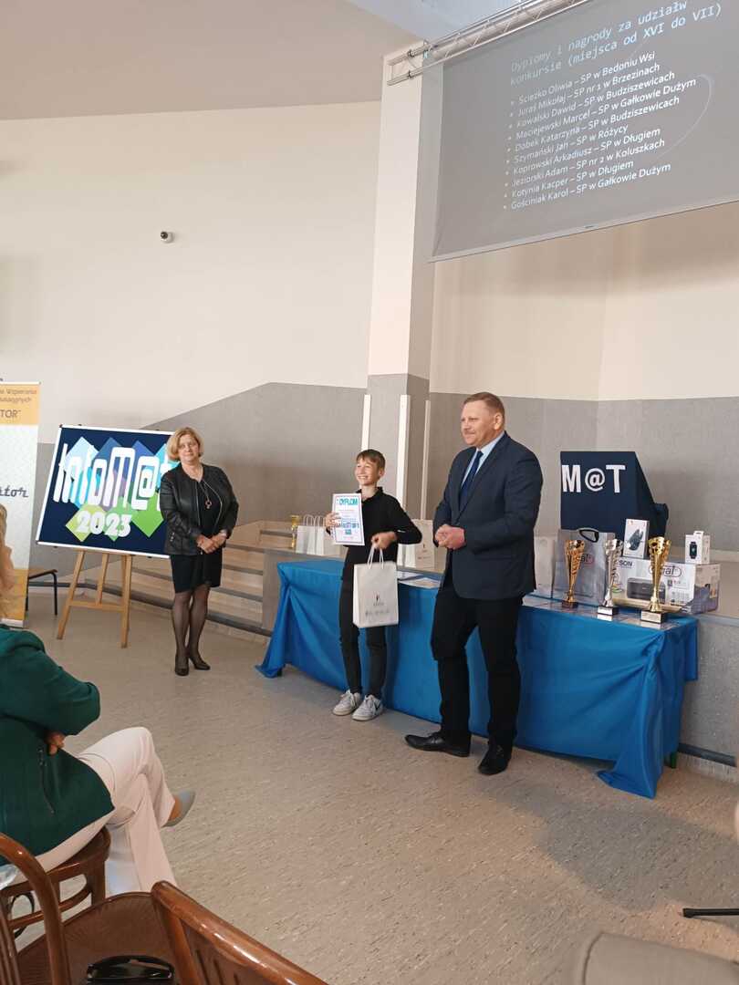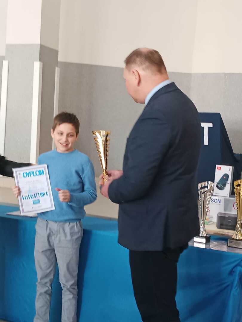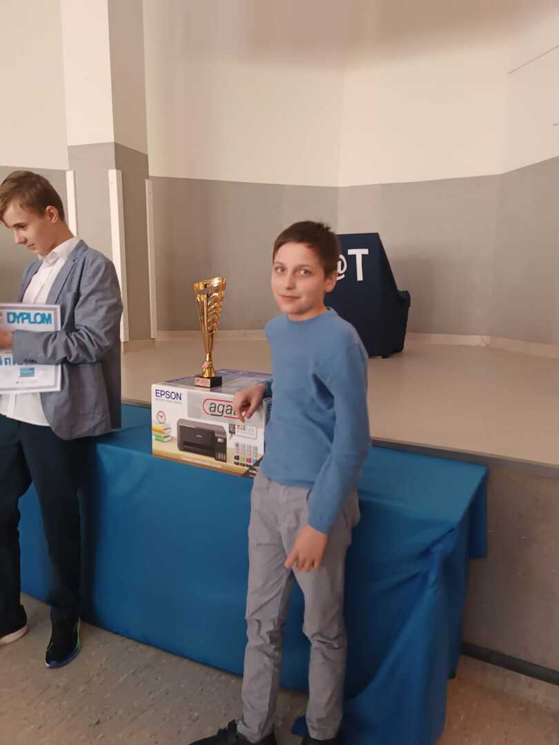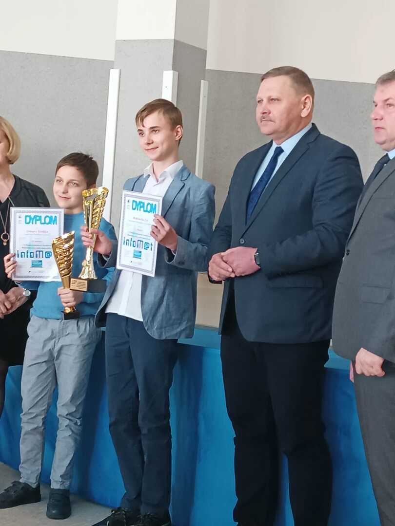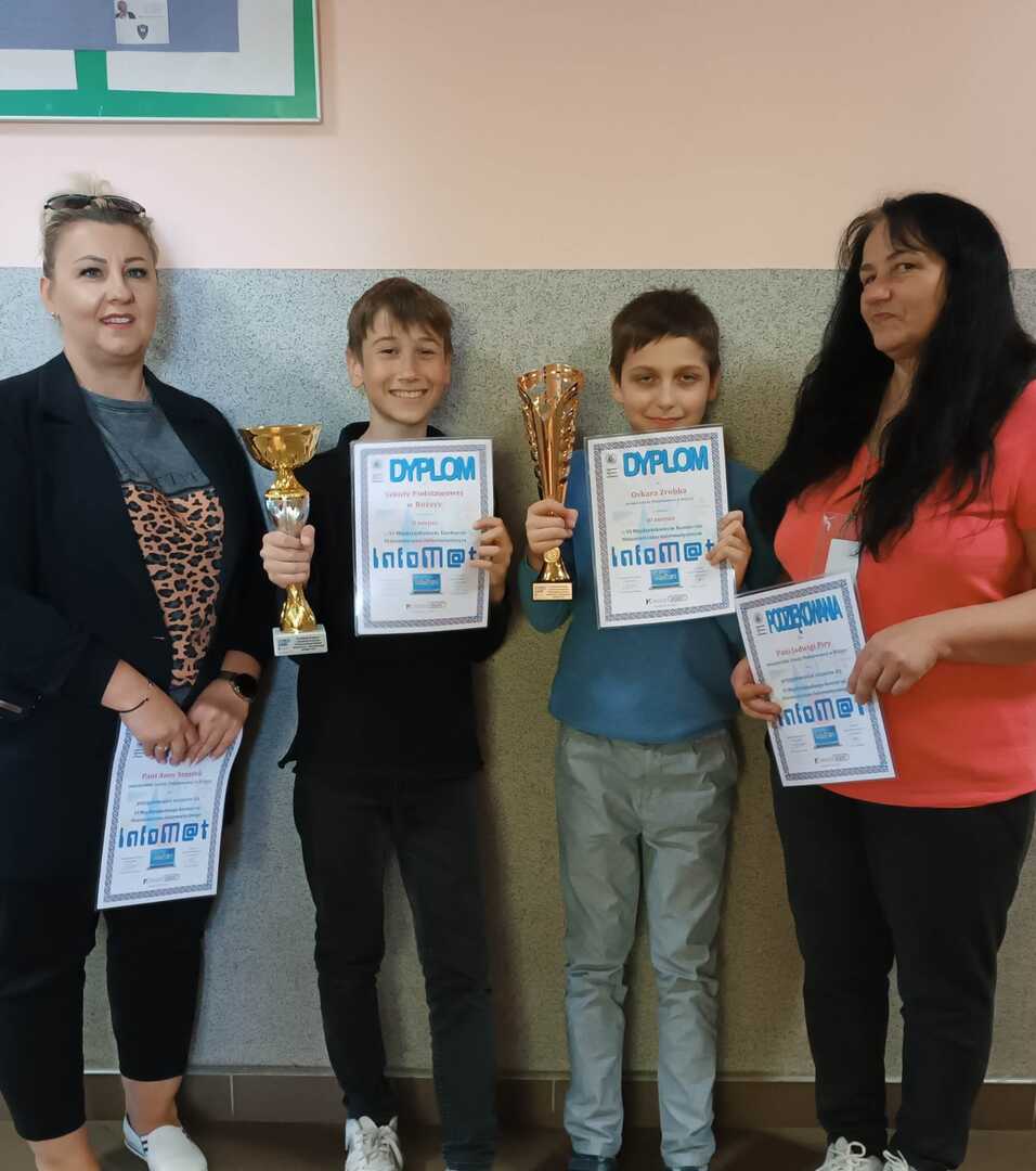 2 miejsce (drużynowo) w Międzyszkolnym Konkursie ,,Infom@t". Finaliści Oskar Zrobek i Jan Szymański spisali się na medal. Uczniowie wrócili z pucharami, nagrodami i oczywiście z ,,celującym w kieszeni". W rywalizacji zadań matematycznych i informatycznych wzięło udział 8 szkół podstawowych. Indywidualnie 3 miejsce zdobył Oskar Zrobek. Natomiast Jan Szymański uplasował się na 11miejscu.