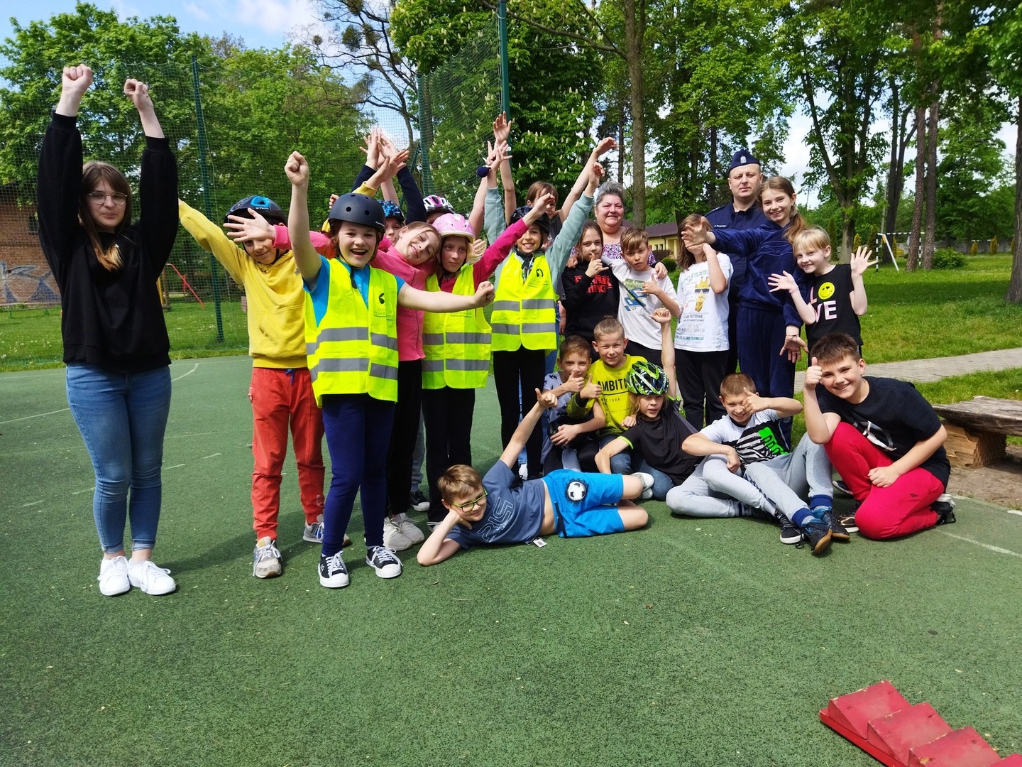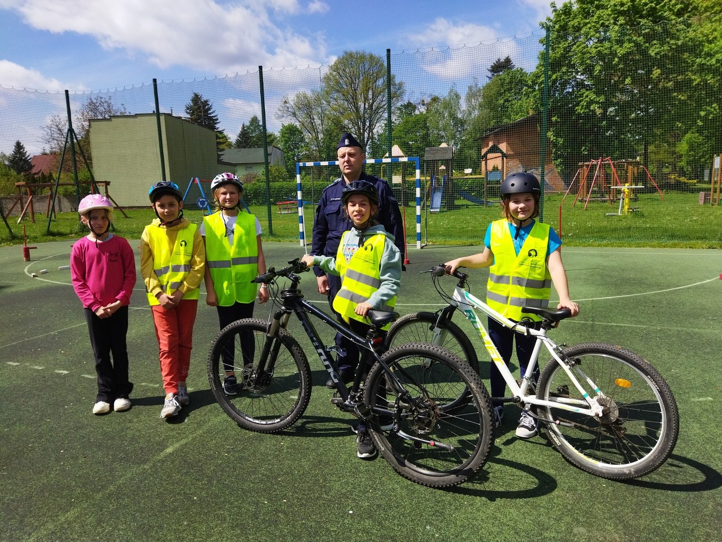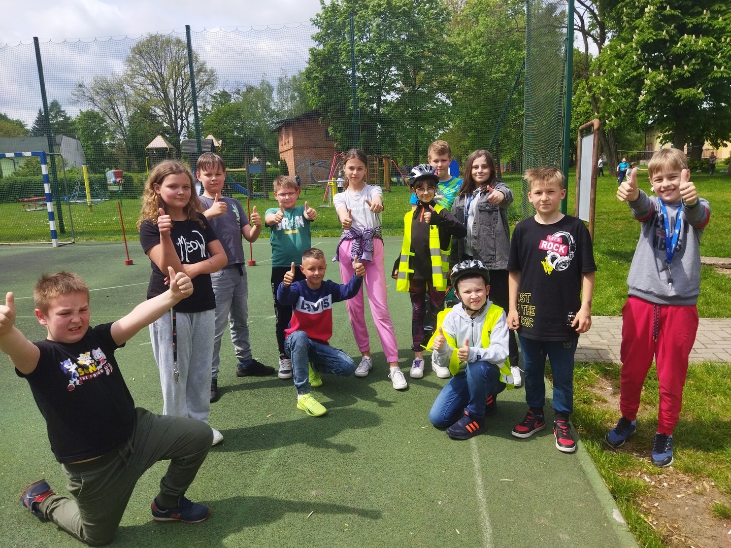 Zbliża się koniec roku szkolnego, a wraz z nim kończy się całoroczna edukacja, mająca na celu zgłębienie wiedzy niezbędnej do uzyskania pierwszego w życiu dokumentu, który uprawnia do kierowania pojazdem. Oczywiście mowa tu o jednośladzie, którym jest rower. Dokument taki wydaje dyrektor szkoły. Aby go otrzymać i samodzielnie poruszać się rowerem po drodze publicznej, należy zdać egzamin teoretyczny z przepisów i praktyczny z jazdy rowerem. 16 maja w naszej szkole miała miejsce część praktyczna egzaminu, do którego przystąpili uczniowie klas 4a i 4b. Wcześniej, przez kolejne dwa tygodnie dzieci zdawały testy teoretyczne, wykazując się bardzo dobrą znajomością przepisów. Dzisiejszy egzamin odbył się nie tylko pod okiem nauczyciela techniki – p. Jolanty Piaseckiej, ale również pod nadzorem funkcjonariusza policji KPP w Koluszkach – p. Romana Wachowca i p. dyrektor Anety Mrówki. W części praktycznej młodzi kursanci zaprezentowali znakomitą umiejętność jazdy na rowerze na zaplanowanym torze jazdy z zastosowaniem przepisów ruchu drogowego. Wszyscy uczniowie zdali egzamin i niebawem otrzymane karty rowerowe wykorzystają podczas nadchodzących wakacji.