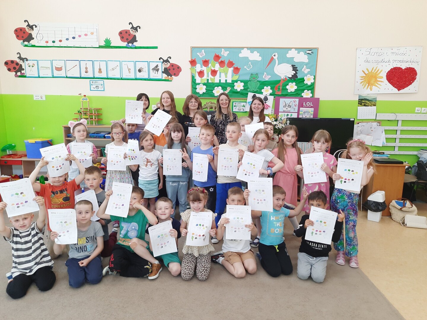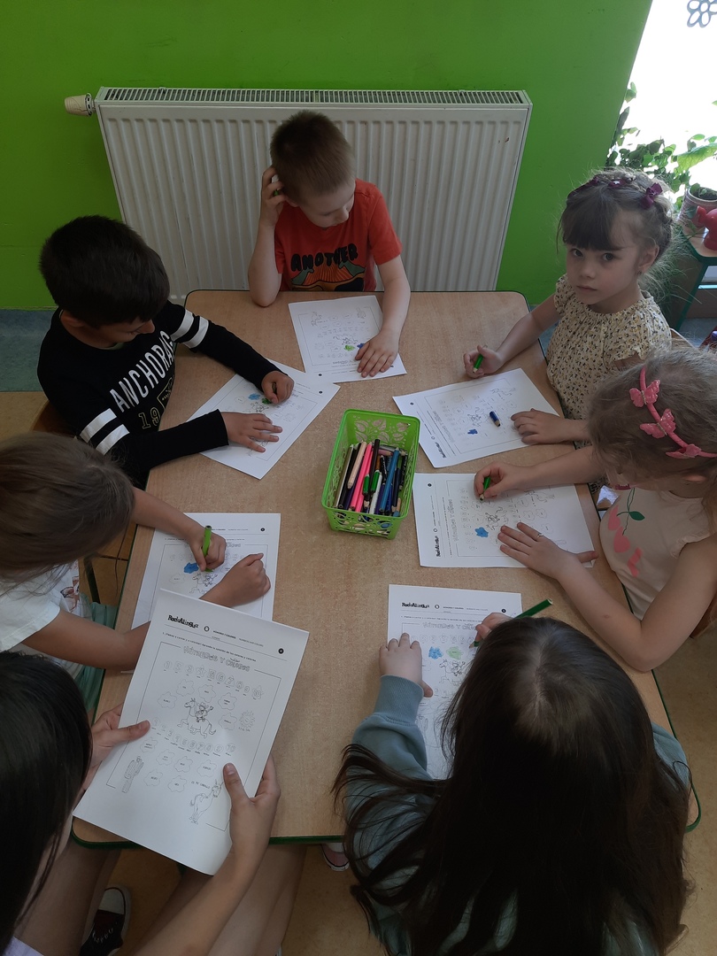 29 maja w ramach projektu “Dziś przedszkolak – Jutro uczeń” dzieci z Przedszkola w Różycy wzięły udział w lekcji języka hiszpańskiego. Pani Malwina Cichecka oraz uczennice: Amelia Kopacz, Magda Klimczak, Roksana Matuszewska i Natalia Janowska wprowadziły przedszkolaki w świat hiszpańskiego słownictwa. Dzieciaki wysłuchały piosenki "Colorin Colorado", poznały liczebniki od 1 do 10 oraz podstawowe kolory.