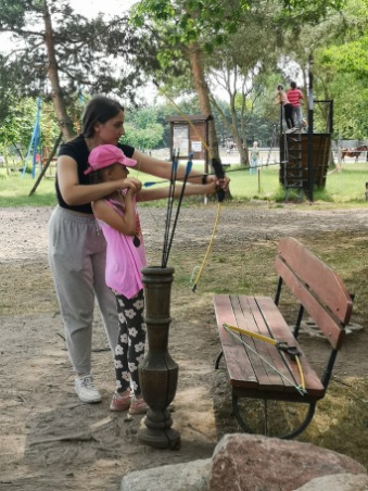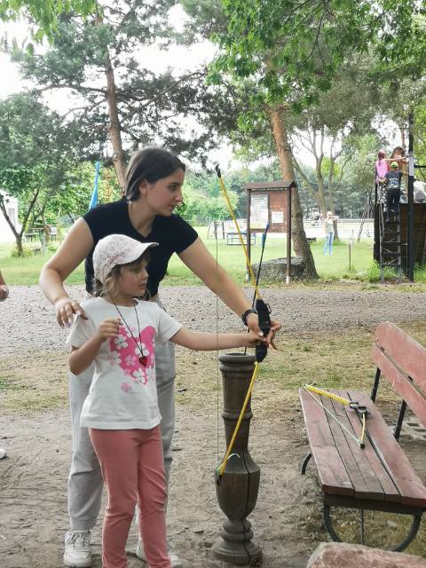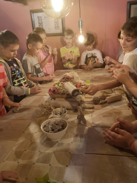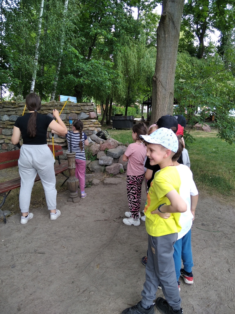 garncarza, własnoręcznie toczyły wazoniki, pucharki i miseczki przy kole garncarskim, lepiły figurki z gliny, malowały wypalone wcześniej w piecach naczynia farbami akwarelowymi. Kolejnym punktem programu wycieczki była Stajnia u Kowala w Nieborowie. Dzieci mogły spróbować swoich sił w siodle. Zdobywały także umiejętności Robin Hooda w strzelaniu z łuku,