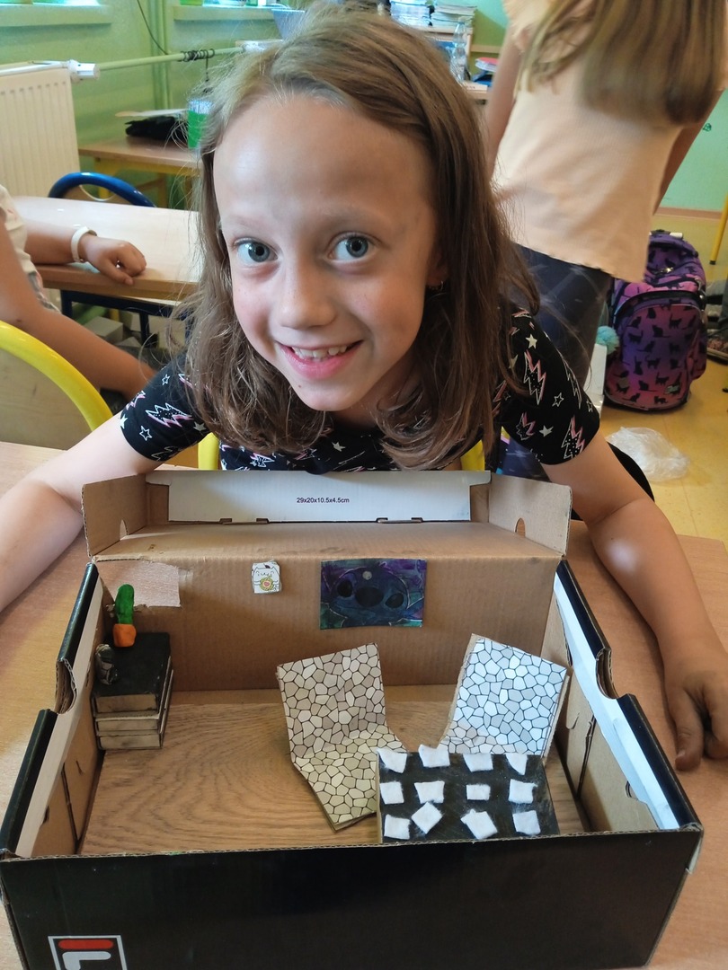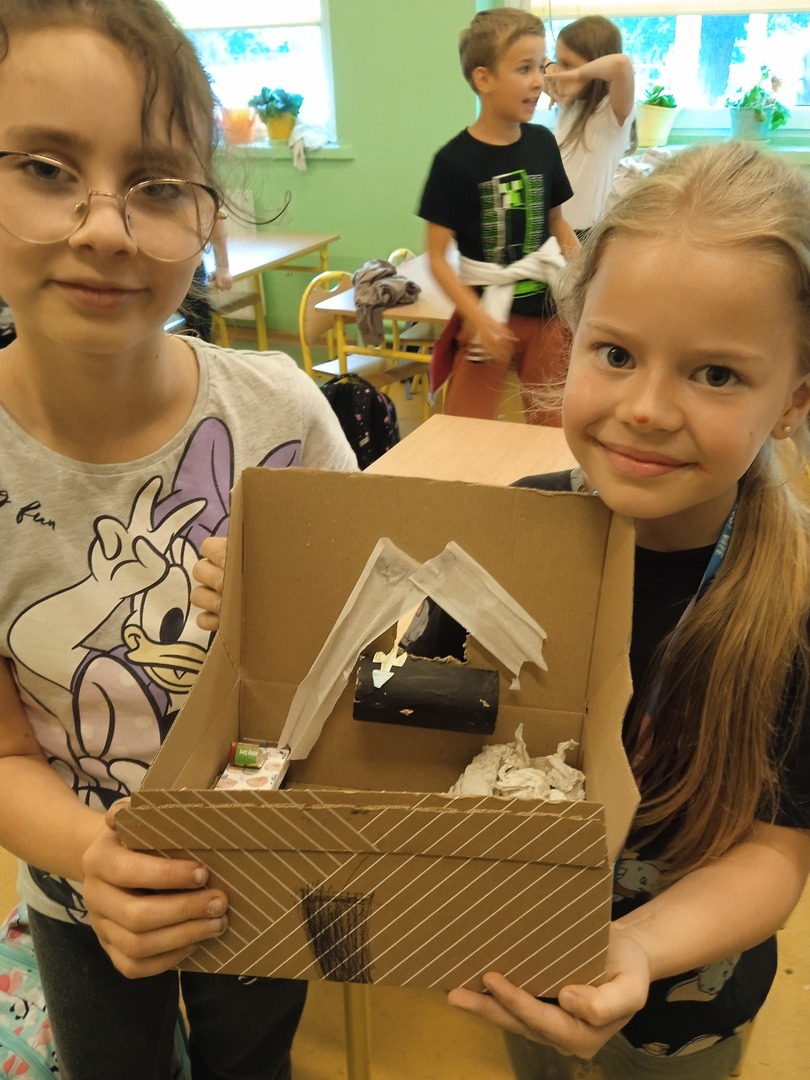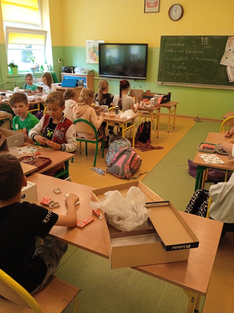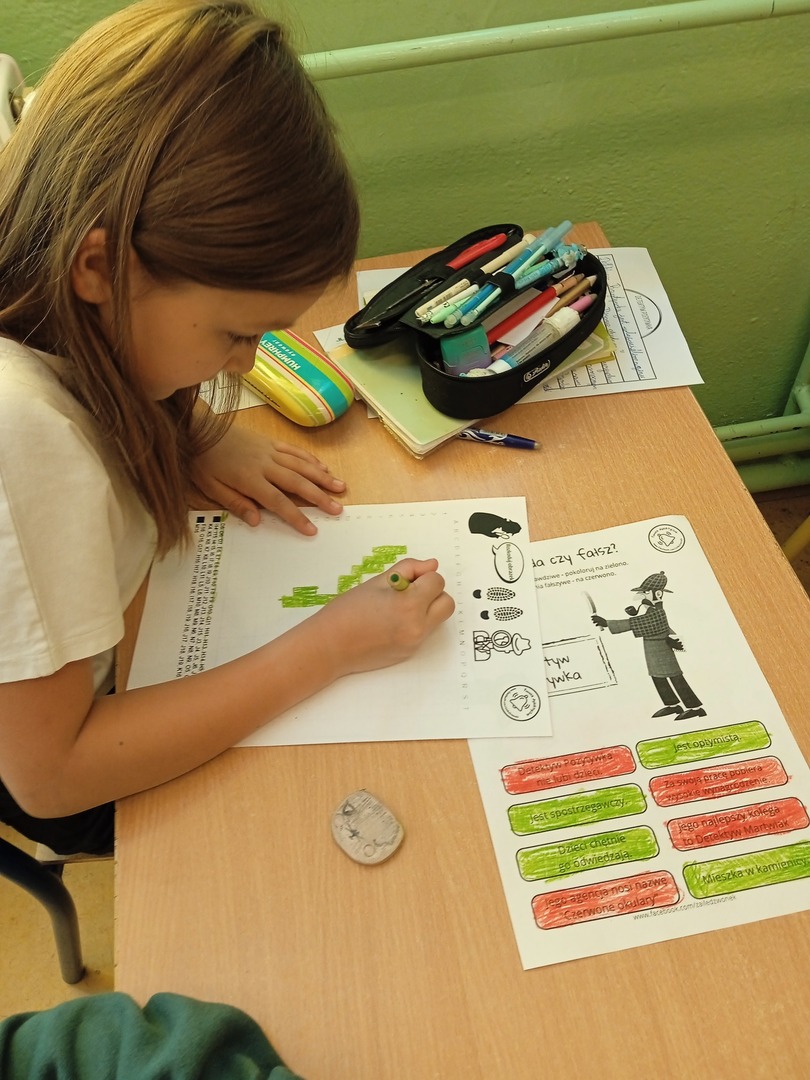 „Detektyw Pozytywka” to ostatnia lektura omówiona w tym roku przez drugoklasistów. Uczniowie zaczęli od zapoznania się z postacią autora oraz jego twórczością. Dzielili się wrażeniami po przeczytanej lekturze, opowiadali najciekawsze zdarzenia. Tworzyli metryczkę książki, krótką charakterystykę głównego bohatera i układali plan wydarzeń. Rozmawiali również o pracy detektywa i niezbędnych mu w niej akcesoriach. Dużą atrakcją było wykonywanie własnych odcisków palców na specjalnych kartach i oglądanie ich po lupą, a także praca z mikroskopem. Drugoklasiści tworzyli również ulotki i plakaty, które miały zareklamować agencję detektywistyczną „Różowe Okulary”. Podczas zajęć rozwiązywali przygotowane przez wychowawcę karty pracy, matematyczne zagadki detektywa oraz zadania multimedialne poświęcone lekturze. Ostatniego dnia powstały makiety biura Pozytywki.