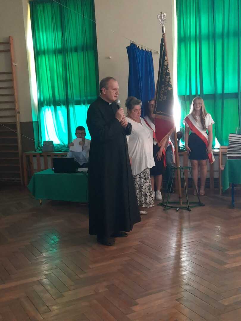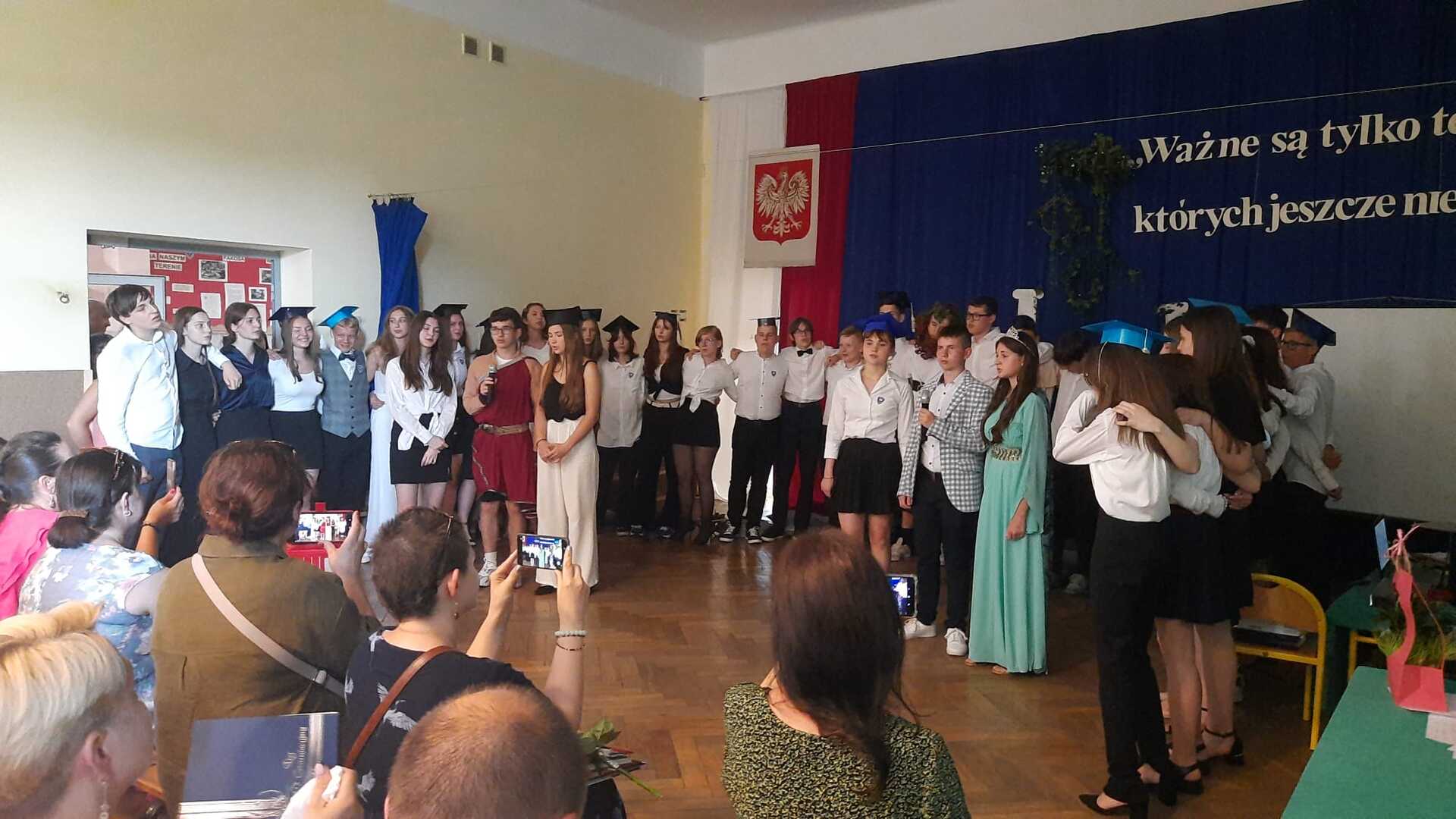Uroczystość Zakończenia Roku Szkolnego dla klas siódmych i Ukończenia Szkoły Podstawowej przez klasy ósme odbyła się 22 czerwca 2023 r. na sali gimnastycznej. Było bardzo elegancko i uroczyście, nie brakło jednak miejsca na łzy wzruszenia.
