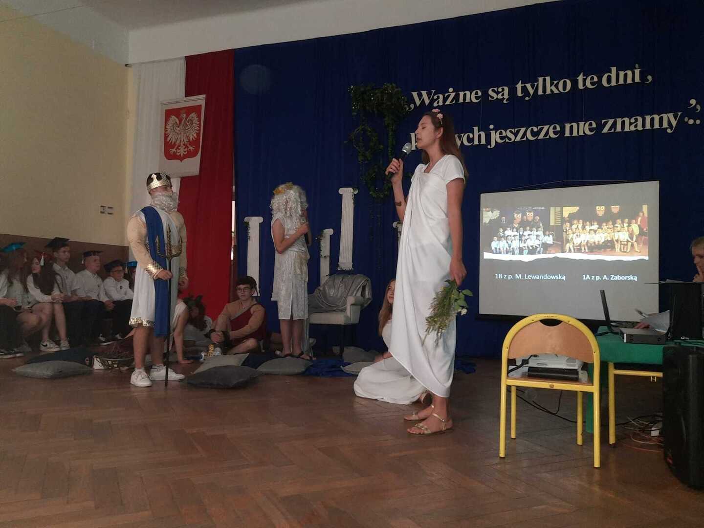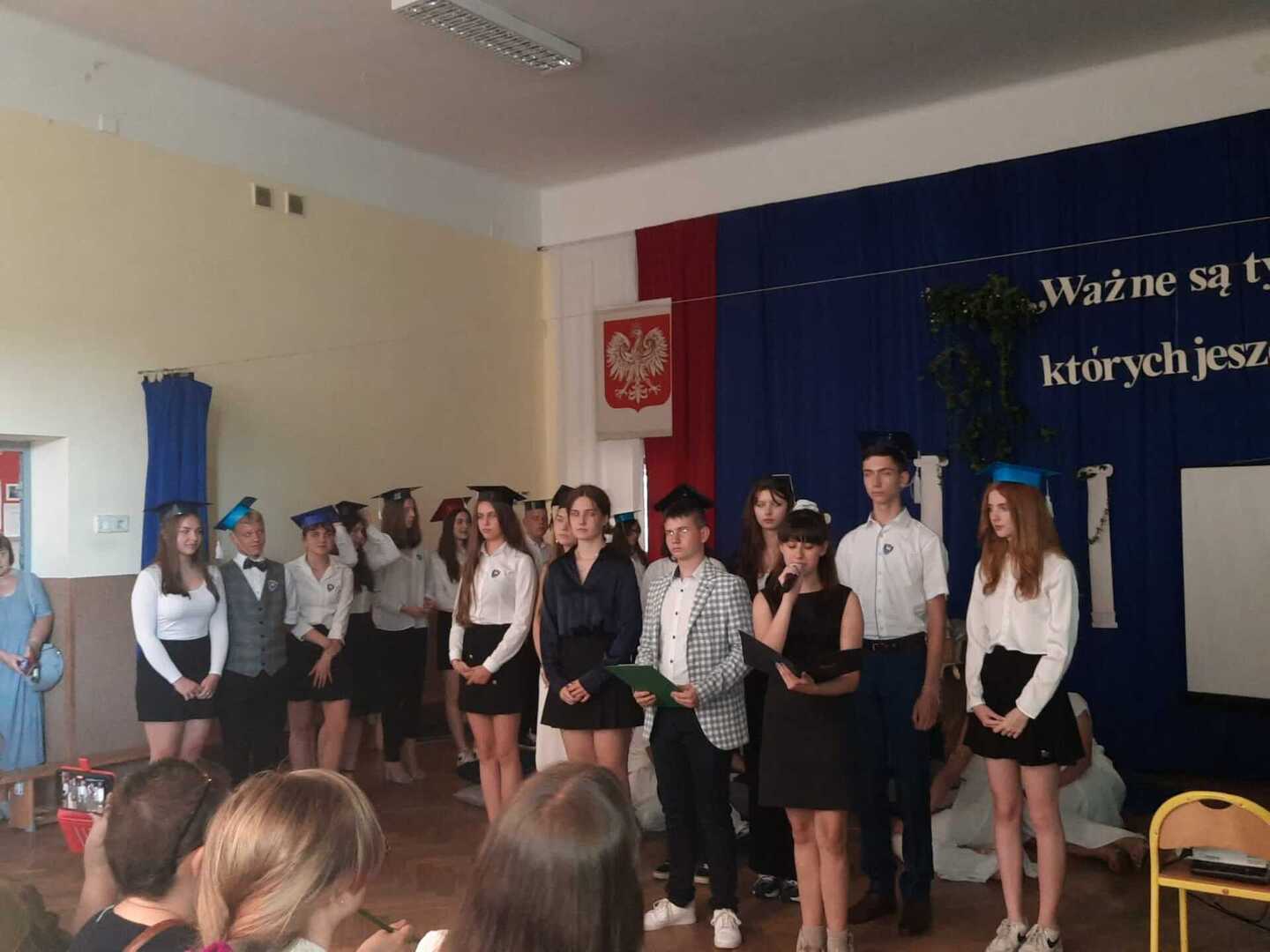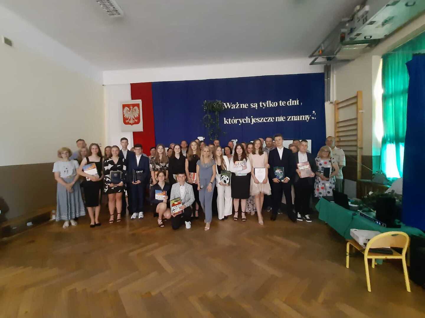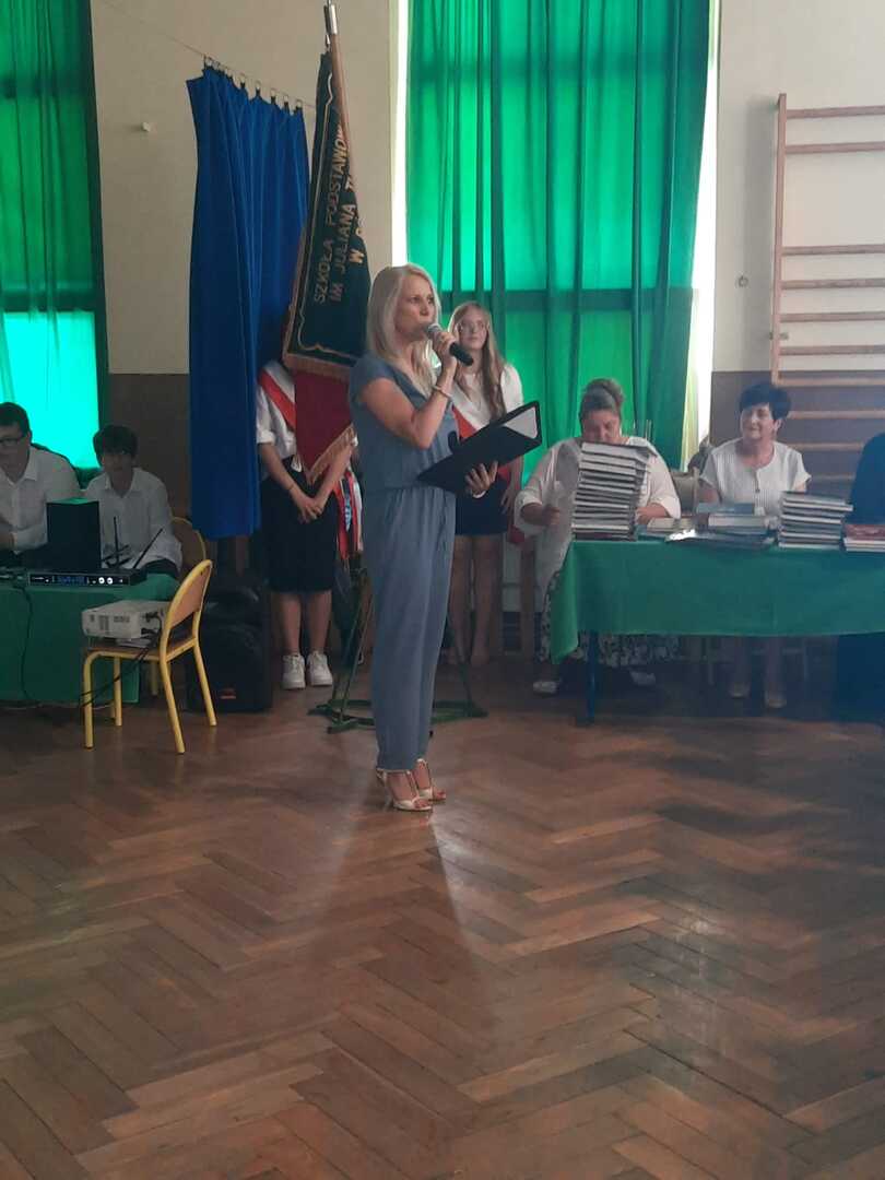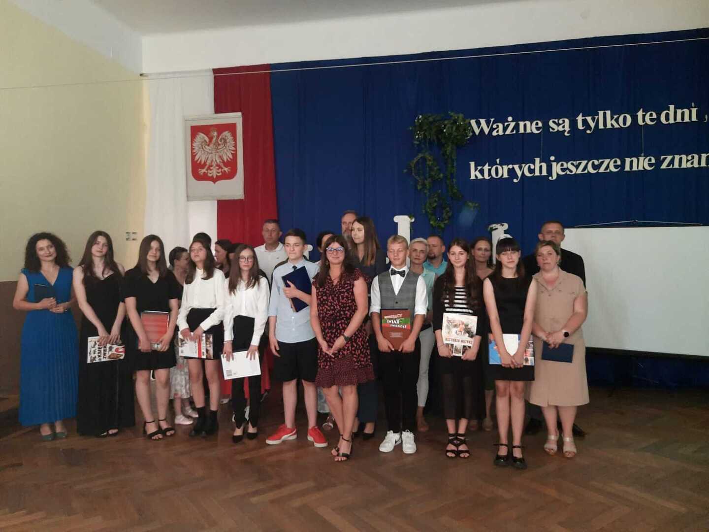 Pani Dyrektor Aneta Mrówka wspólnie z wychowawczyniami najstarszych klas wręczyły nagrody książkowe za najlepsze wyniki w nauce oraz sporcie, sukcesy w konkursach oraz pracę w Samorządzie Uczniowskim i Szkolnym Kole Przedsiębiorczości. Podziękowano uczniom oraz rodzicom za aktywny udział w życiu klasy i szkoły.