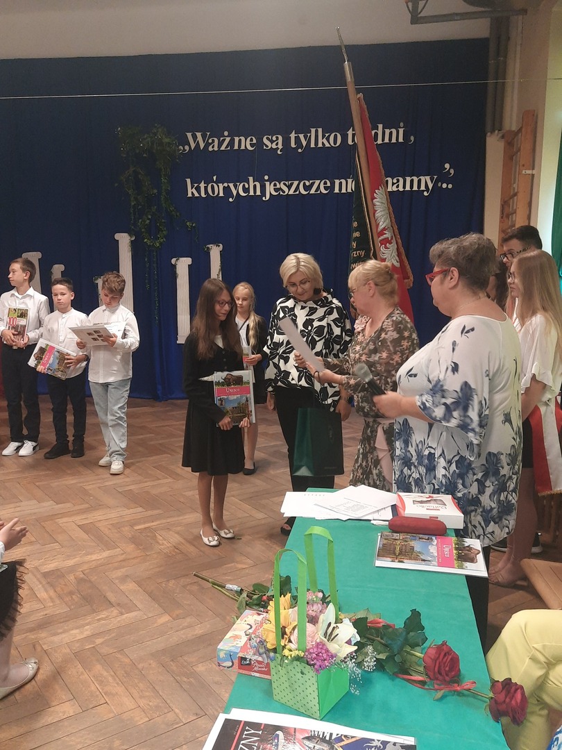 23 czerwca 2023 roku nastąpiło uroczyste Zakończenie Roku Szkolnego 2022/2023 dla klas 1-6. Uczniowie pożegnali szkolne ławki na ponad dwumiesięczną przerwę wakacyjną. Jak zawsze w tym dniu młodzi ludzie odebrali nagrody i wyróżnienia za osiągnięcia i sukcesy szkolne. Rangi uroczystości dodała obecność pani wiceburmistrz Koluszek – Krystyny Lewandowskiej.