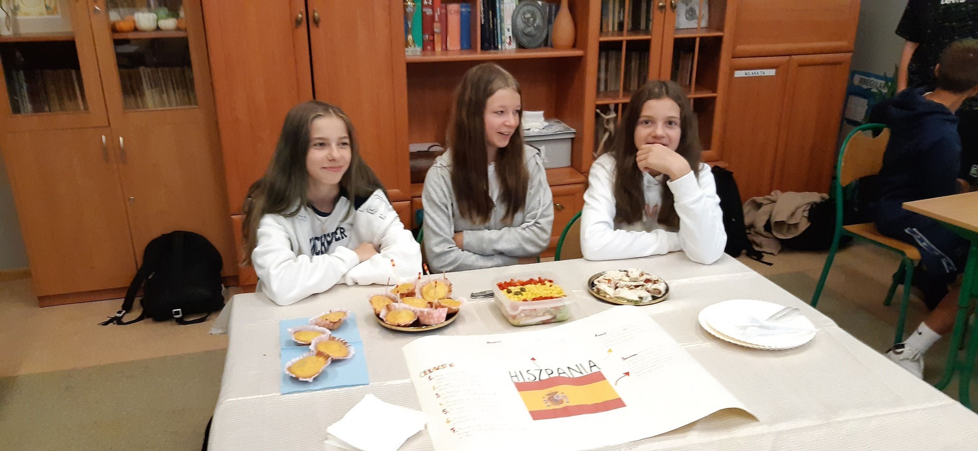 Oprócz części kulinarnej młodzież zadbała również o aspekty edukacyjne - wykonała plakaty przedstawiające wylosowane wcześniej kraje europejskie, uwzględniając m.in. wartości językowe i różne ciekawostki. W niektórych klasach odbyła się również prezentacja, dzięki której uczniowie nauczyli się, jak powiedzieć „cześć” w kilku różnych językach. Warto dodać, że najmłodsze członkinie SKE - czwartoklasistki - wykonały ciekawą gazetkę tematyczną, którą można podziwiać na pierwszym piętrze naszej szkoły. Oj działo się, działo…