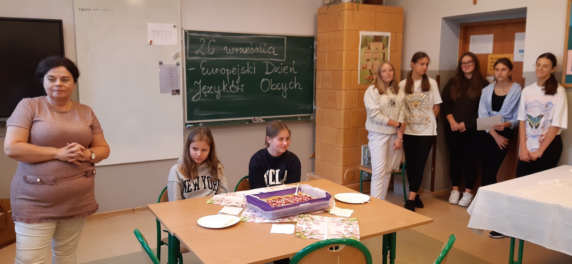 Nasza szkoła również przyłączyła się do obchodów Dnia Języków Obcych, a to za sprawą starszych członków Szkolnego Klubu Europejskiego – „Euromłodziaki” z klas 7-8. Młodzi ludzie, pod czujnym okiem opiekunek – p. Niburskiej i p. Piaseckiej – zorganizowali Europejskie Śniadanie, którego głównymi składnikami były dania z różnych krajów starego kontynentu. Do degustacji potraw zaproszono nie tylko opiekunki klubu, ale również grono pedagogiczne. Można było spróbować włoskiej pizzy, hiszpańskiej tortilli,francuskiej tarty, a także skosztować typowego „English breakfast”, zachwycić się wiedeńskim strudlem z jabłkami, czy niemiecką „kartoffelsalat”. Naprawdę było przepysznie