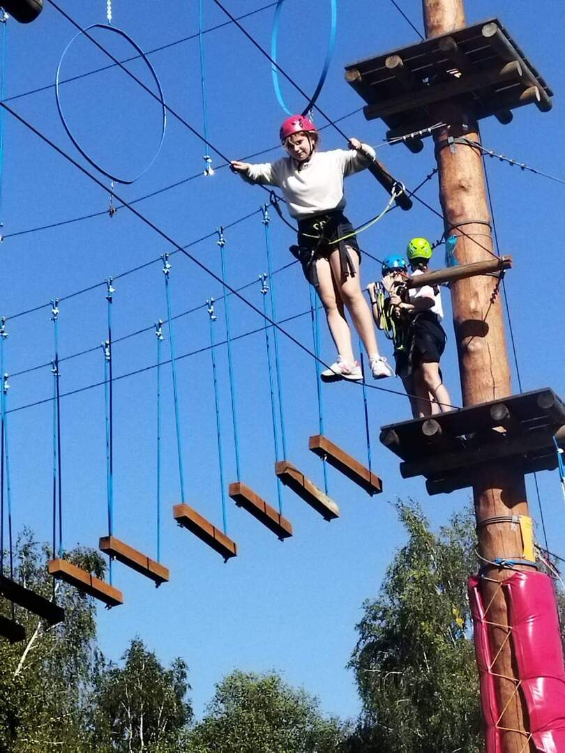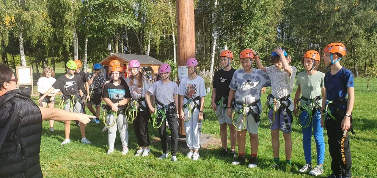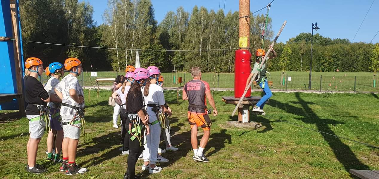 We wtorek, 3 października, obie klasy ósme wraz z wychowawczyniami - p. Igą Superą i p. Jadwigą Pirą oraz p. pedagog - Jolantą Piasecką wybrały się na wycieczkę do Lisowic. Celem grupy był park linowy - Linpark, który składa się z 700 metrów tras o różnym stopniu trudności. Najwyższa platforma umożliwia chodzenie na wysokości aż 9 metrów nad ziemią. Ogółem park składa się z 67 przeszkód. Główną atrakcją obiektu jest tzw. zjazd tyrolski o długości prawie 100 metrów. Młodzież bawiła się świetnie i bardzo zdowolona wróciła do Różycy.