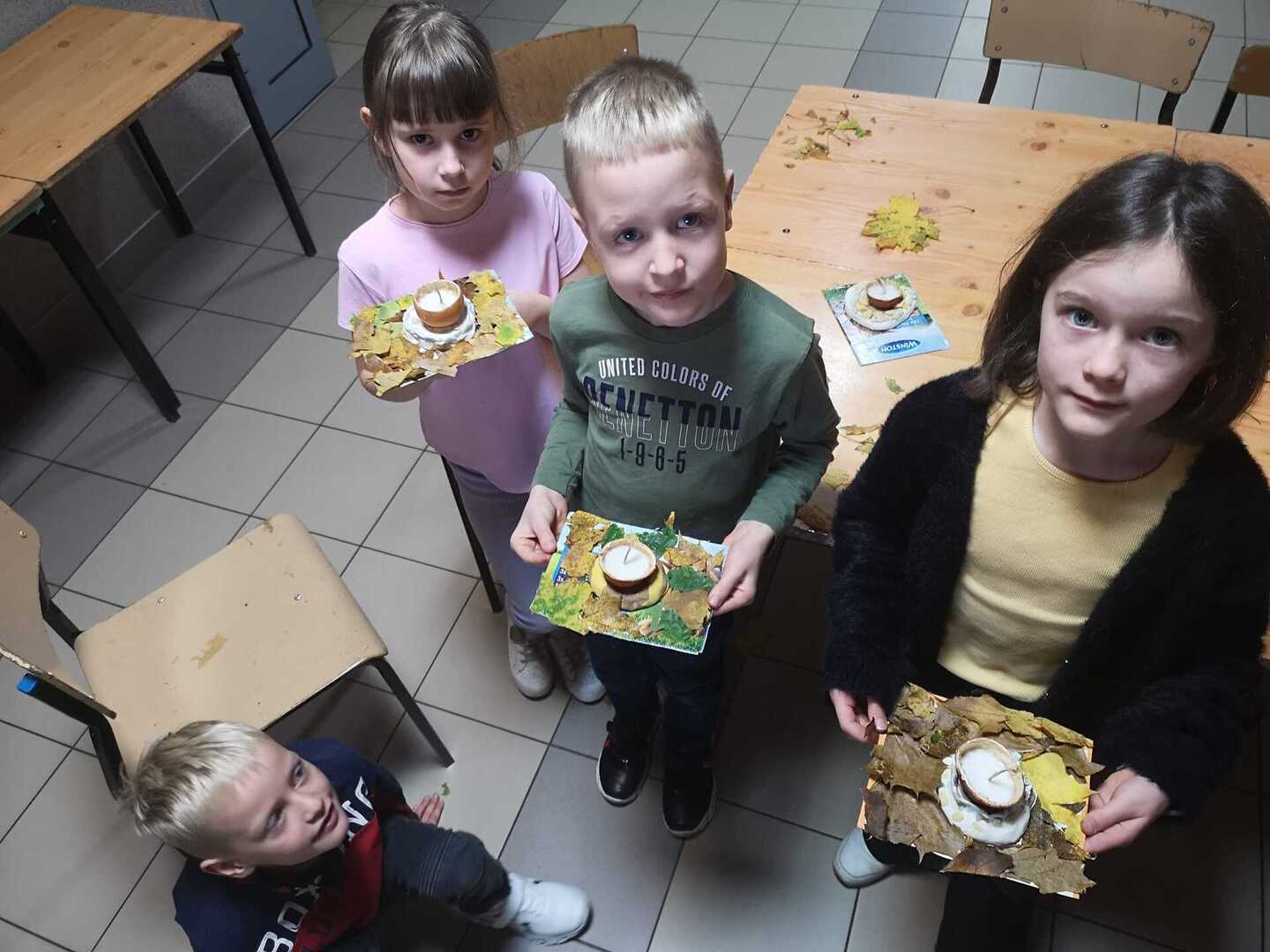 Dzieci podczas zajęć świetlicowych pod kierunkiem p. G.Welc wykonały świeczniki z masy solnej, barwionej przyprawami kuchennymi. Uczniowie stworzyli oryginalne ozdoby, które z czasem ulegną biodegradacji i nie będą zanieczyszczać środowiska. Rękodzieła ozdobią opuszczone groby dzieci. W taki sposób uczniowie uczczą pamięć tych, którzy odeszli...