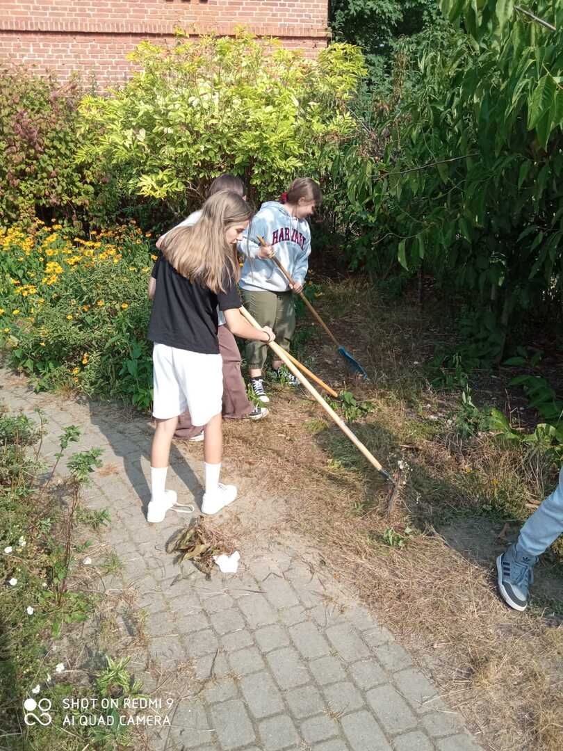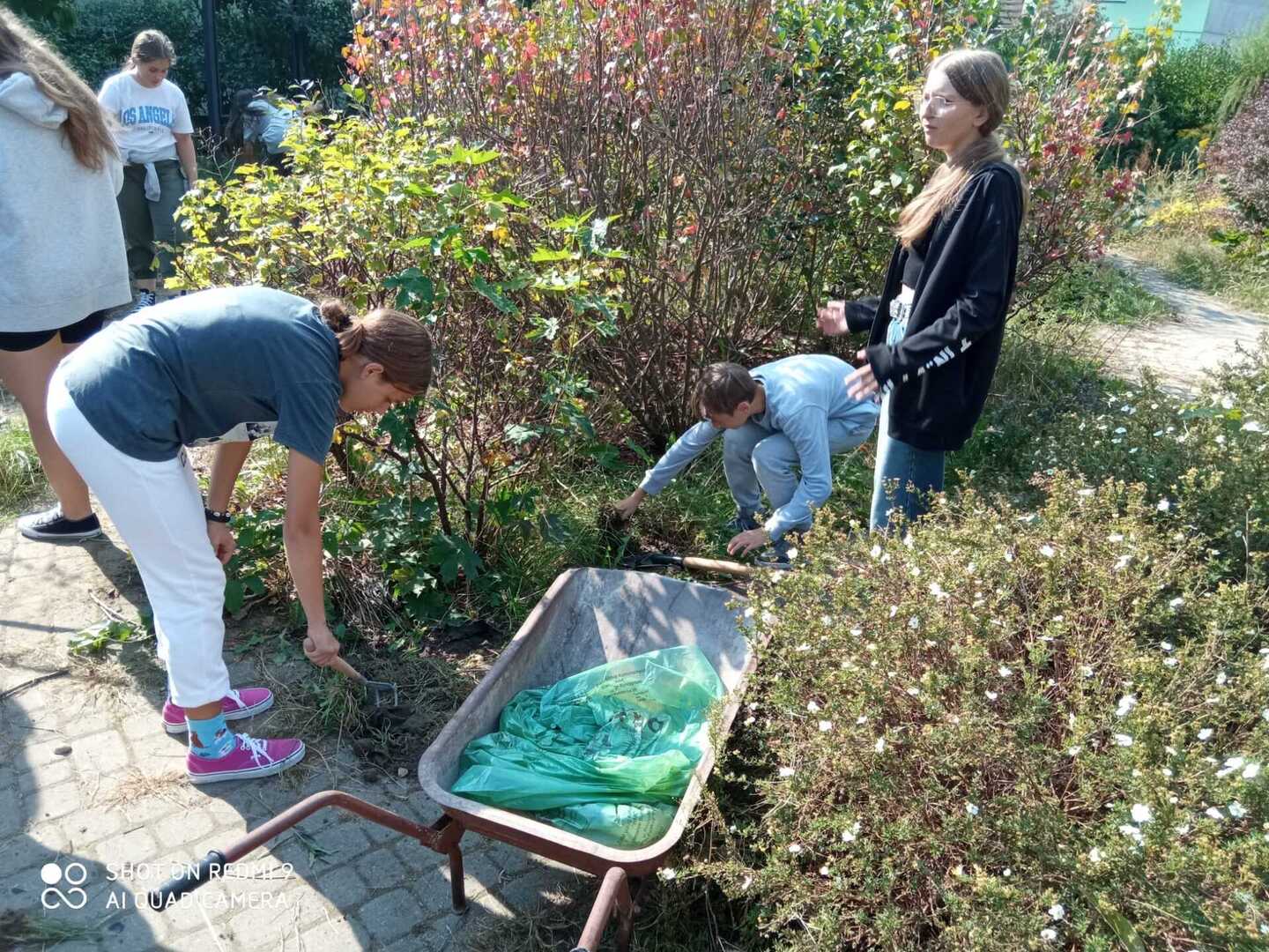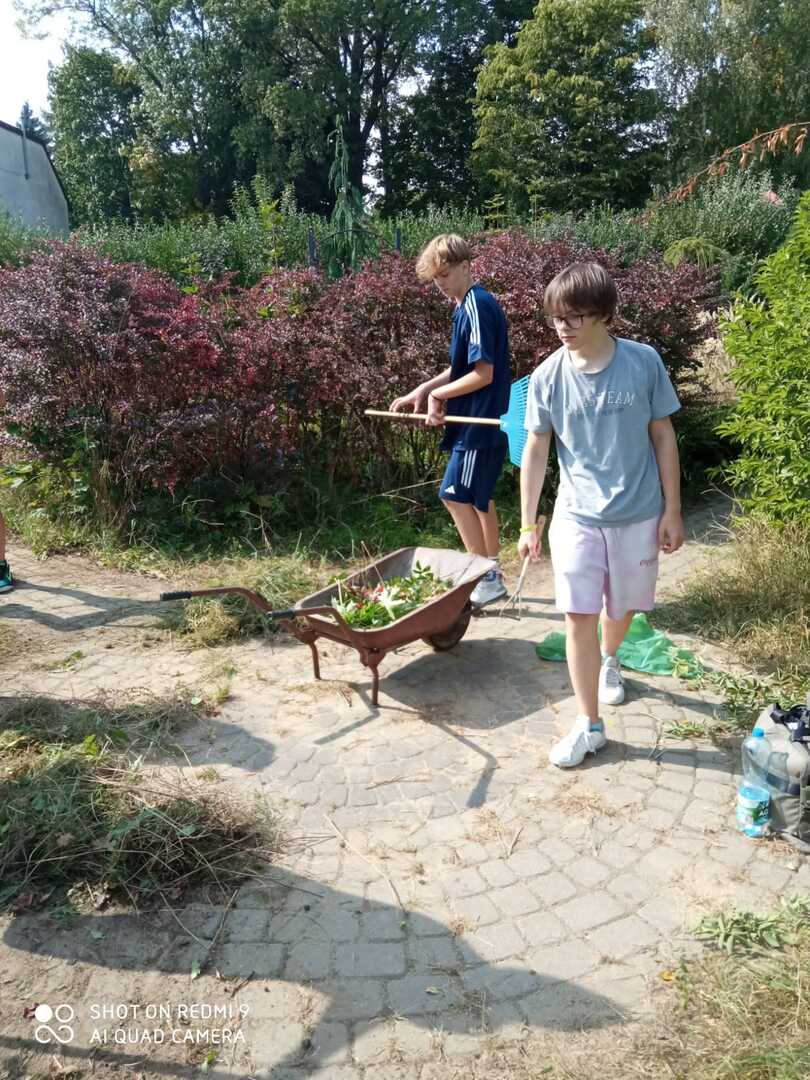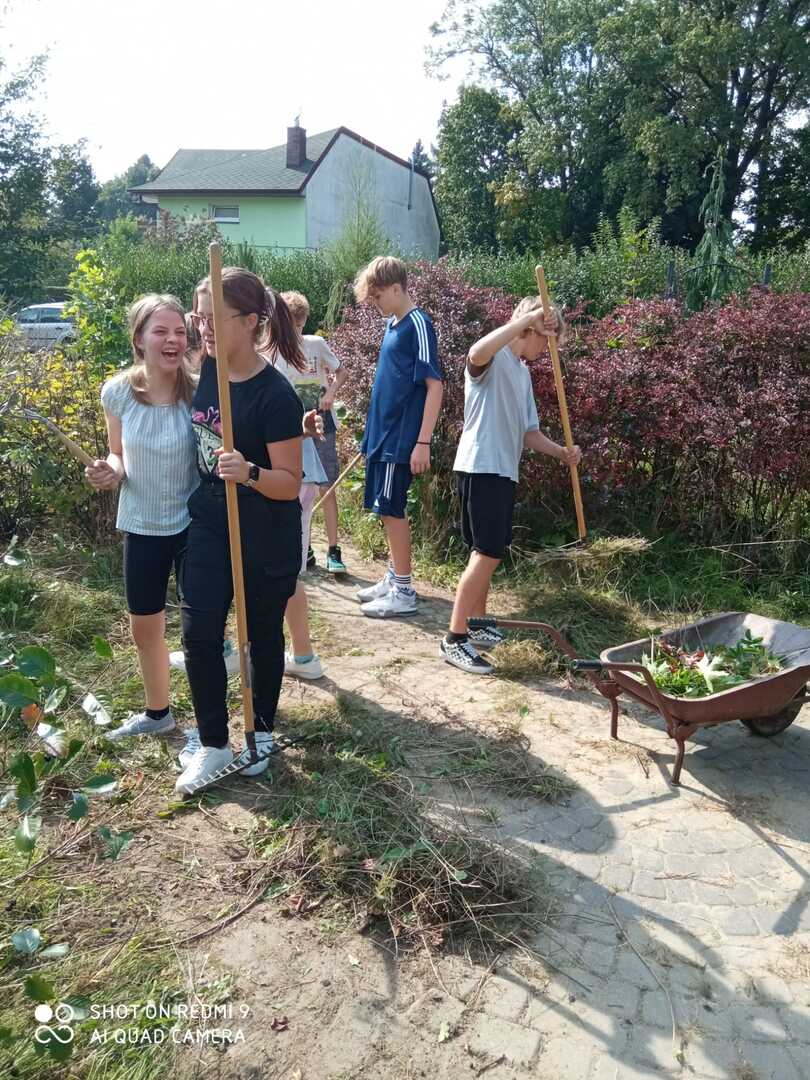 Ciepłe jesienne dni nasi uczniowie klas siódmych wykorzystali na porządkowanie przyszkolnego ogrodu zmysłów .Była to doskonała okazja do odświeżenia wiedzy z botaniki, a także na zacieśnienie więzi koleżeńskich.