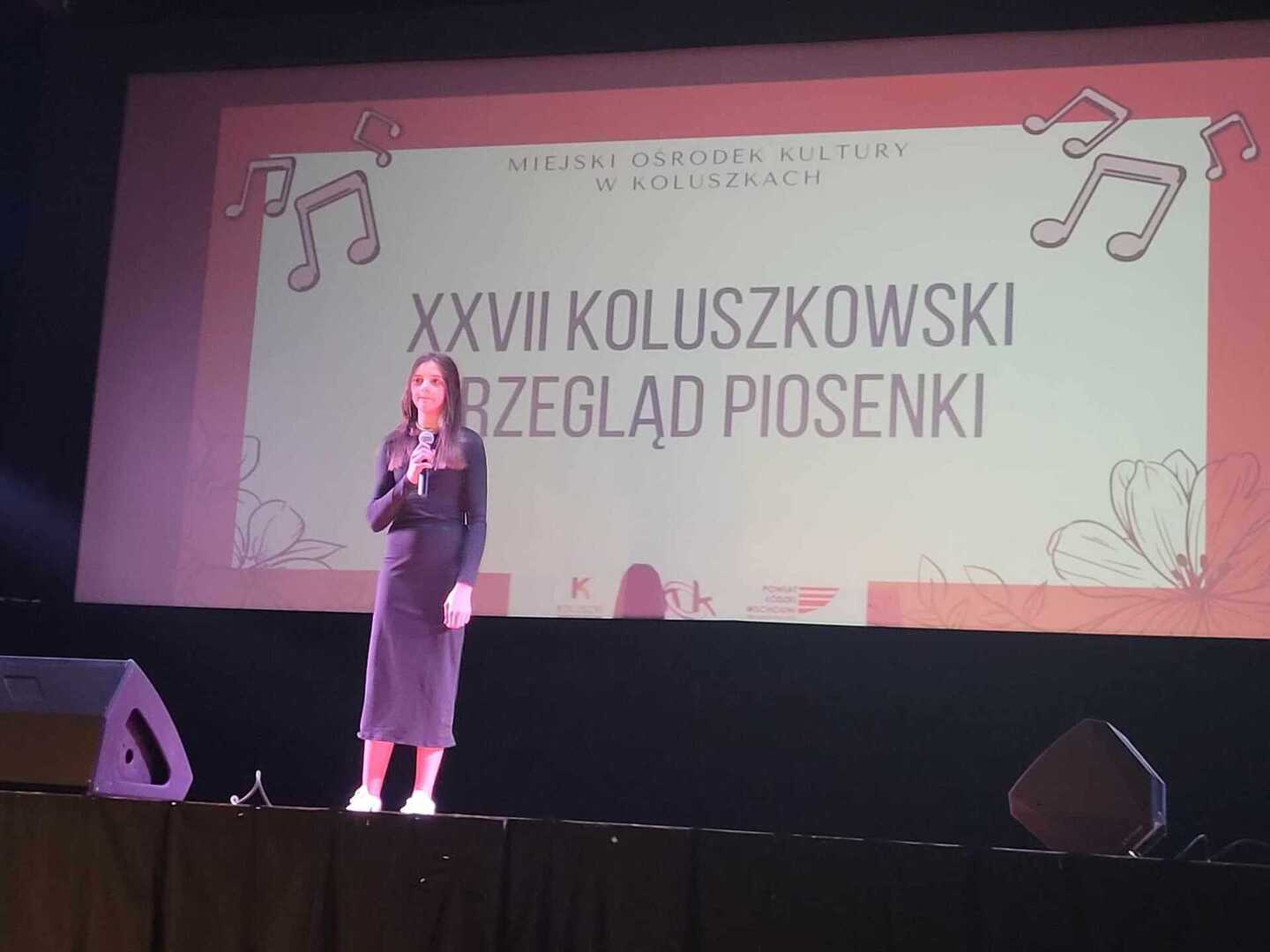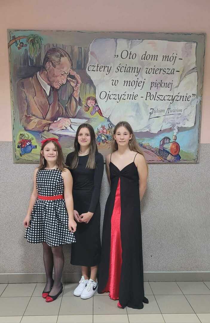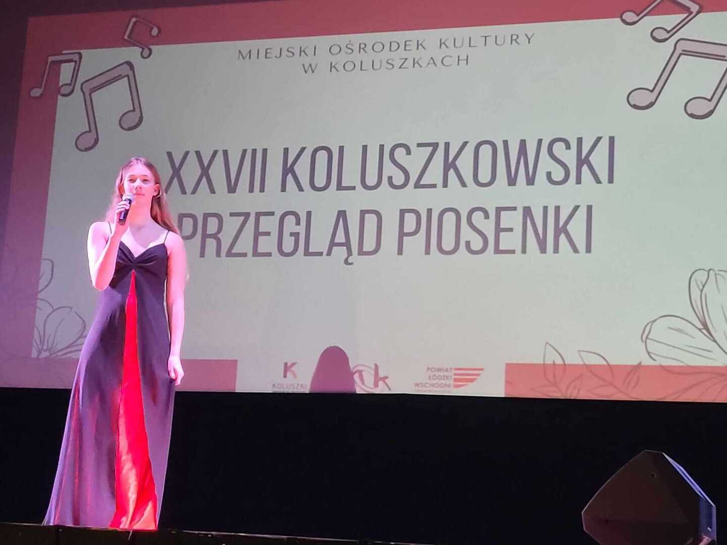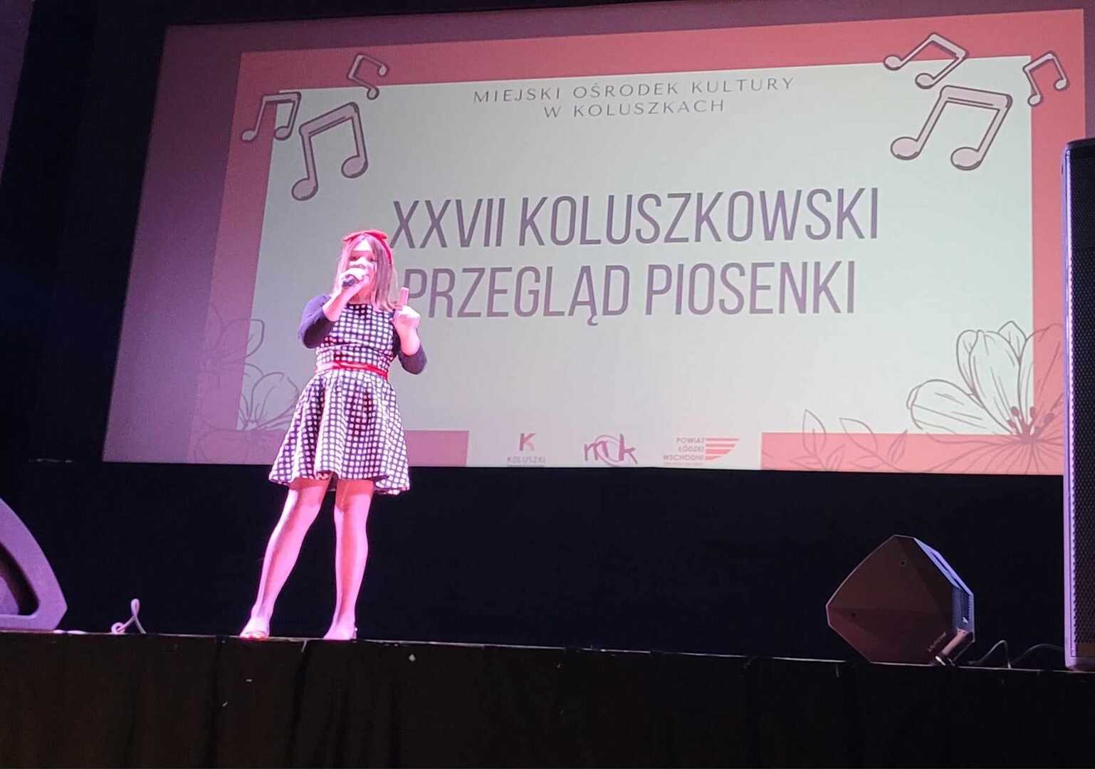 7 listopada, uczennice naszej szkoły brały udział w XXVII Koluszkowskim Przeglądzie Piosenki. Julianna Szkopinska (kl. 5 a), Krysia Kupś (kl. 6b) wystąpiły w drugiej kategorii, zaś Julia Adamczyk ( kl. 7 a) w trzeciej. Wszystkie uczennice zaśpiewały wspaniale. Dwie z nich to debiutantki. Mam nadzieję, że jeszcze nie raz podejmą wyzwanie muzyczne. Dziękuję rodzicom za pomoc w przygotowamiu strojów. J. Wiśnik