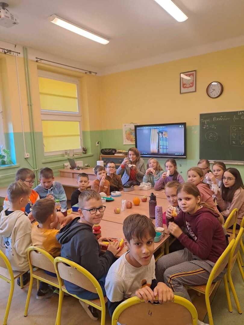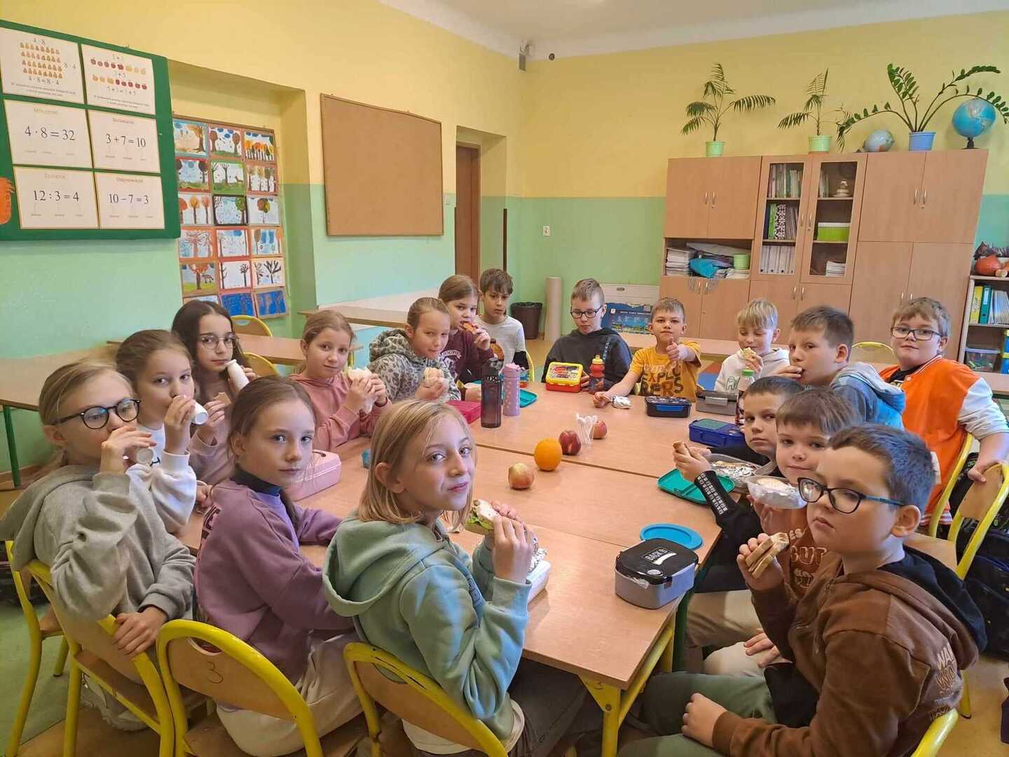 Masz dobry humor, jesteś pełen energii, czujesz się dobrze. Czy zastanawiałeś się kiedyś -dlaczego? Co daje Ci siłę? Jedną z odpowiedzi na to pytanie jest czynność, którą wykonałeś -zjadłeś śniadanie. Aby podkreślić ważną rolę tego posiłku- stworzono ogólnopolską akcję „Śniadanie daje moc”. Dlatego, podobnie jak w ubiegłych latach, nasza szkoła w dniu 8 listopada dołączyła do tego wydarzenia. Klasy I- IV wspólnie z wychowawcami przygotowały i zjadły wyjątkowe śniadanie, śniadanie, które dało MOC. Na stołach królowały: kolorowe, zdrowe kanapki, sałatki. Wszystko było pyszne i smaczne, paluszki lizać