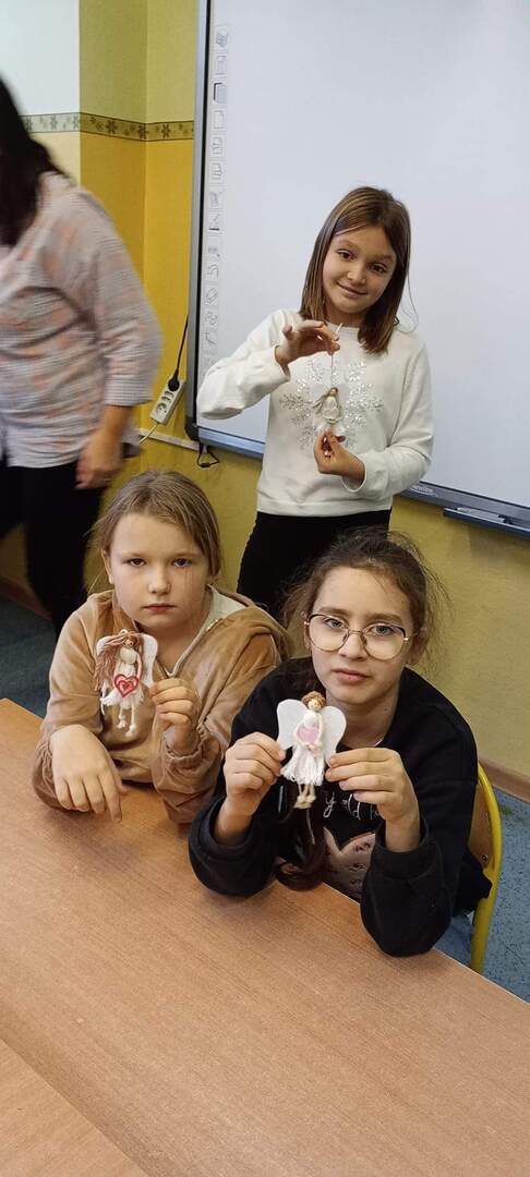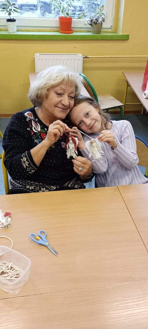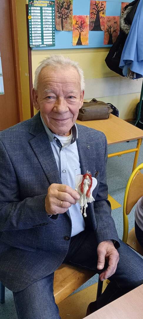 W dniu 23.11.23 r. gościliśmy w naszej szkole seniorów z Koluszkowskiego Klubu Seniora ,,Senior +". Emeryci przyjechali w odpowiedzi na zaproszenie uczniów klasy 3b i p.Justyny Brzezińskiej, organizatorki szkolnej akcji ,,Herbatka dla Seniora". Założeniem przedsięwzięcia było zebranie różnorodnych herbat w celu umilenia osobom starszym jesiennych i zimowych wieczorów. Z delegacją klubu przyjechała p. Justyna Szymańska. Spotkanie emerytów i trzecioklasistów przebiegło w bardzo miłej atmosferze. Uczestnicy wykonali wspólnie aniołki ze sznurków, które będą zdobić klasową choinkę i przypominać dzieciom o tym wspaniale spędzonym czasie. Na pożegnanie seniorzy zostali obdarowani zebranymi herbatkami,a uczniowie poczęstowani przez gości cukierkami. Niezmiernie miło było nam poznać tak otwartych, ciepłych i serdecznych ludzi. Szczególne podziękowania za nieocenioną pomoc przy organizacji spotkania i wykonywaniu aniołków kierujemy do Pani Justyny Szymańskiej.