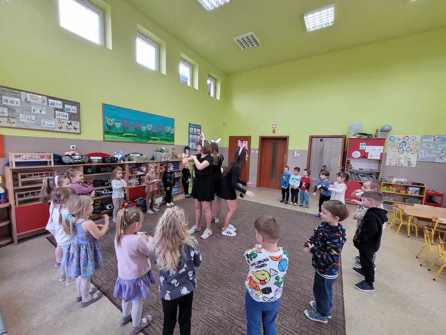 W dniu 25 marca uczennice naszej szkoły (Magda Klimczak, Marcelina Słaby i Roksana Matuszewska) wraz z opiekunkami (p. J. Kowalczyk i p. J. Wiśnik) odwiedziły dzieci z grupy „Motylki” w Przedszkolu