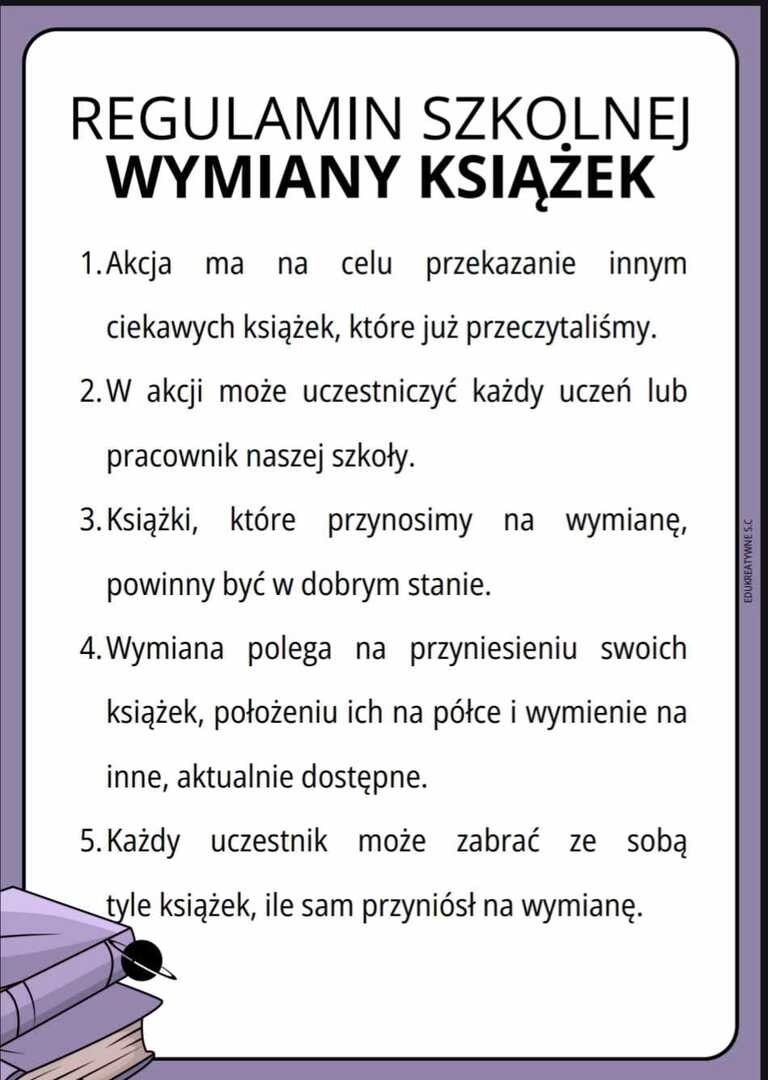 Jedną z głównych atrakcji, która czeka na naszych uczniów, będzie szkolna wymiana książek. To doskonała okazja, aby odkryć nowe tytuły, dzielić się swoimi ulubionymi lekturami i rozbudzić w sobie pasję czytania. Ponadto, czekają na Was quizy książkowe, które pozwolą Wam sprawdzić swoją wiedzę na temat literatury oraz wyzwania, które zachęcą do eksploracji różnorodnych gatunków literackich i odkrywania nowych autorów.