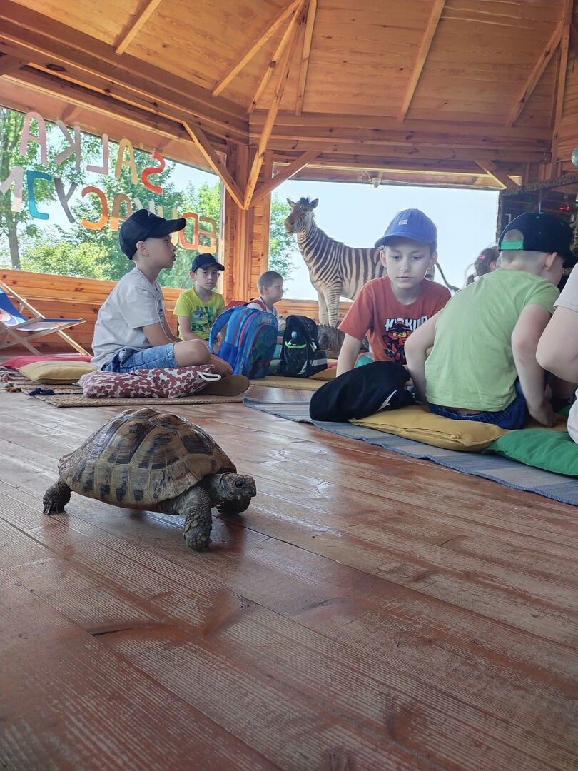 się z żółwiem, szynszylem i tenrekiem mniejszym madagaskarskim. Usłyszały wiele ciekawostek, odpowiadały na pytania, opowiadały o swoich doświadczeniach oraz miały możliwość pogłaskać zwierzęta, będące tematem zajęć multisensorycznych. Następnie grupa udała