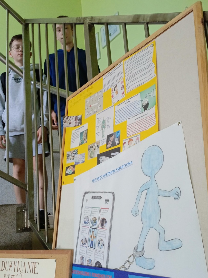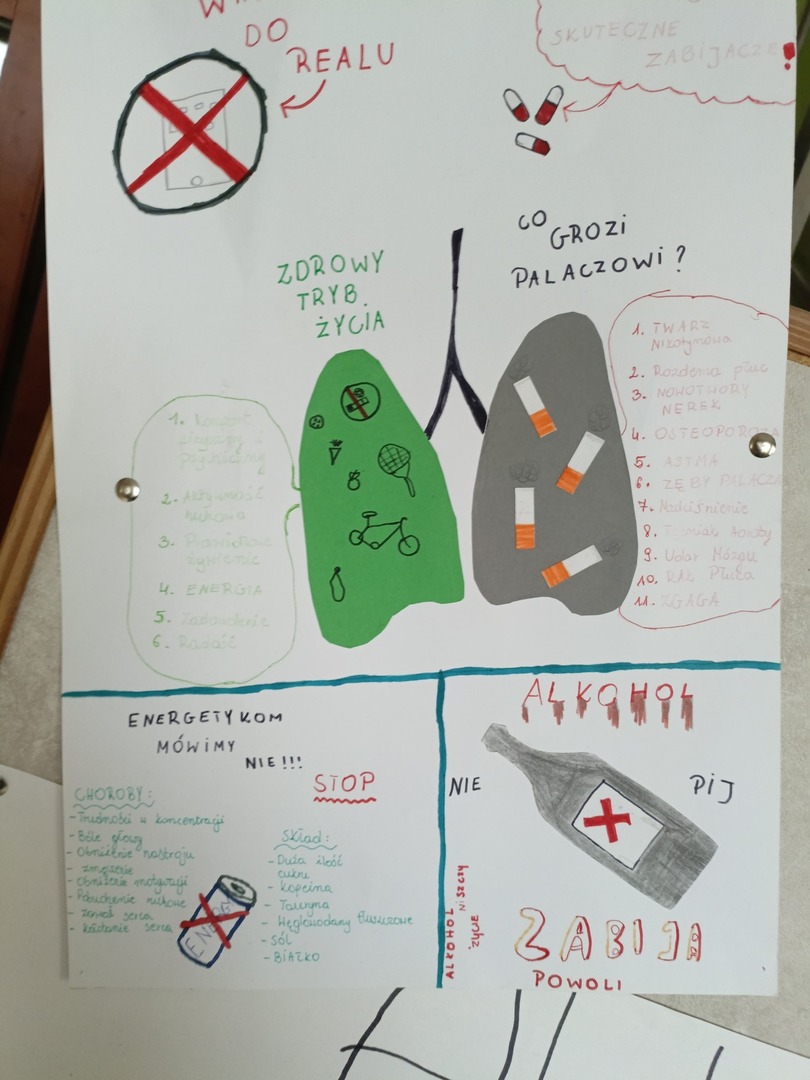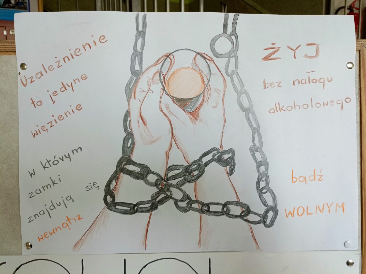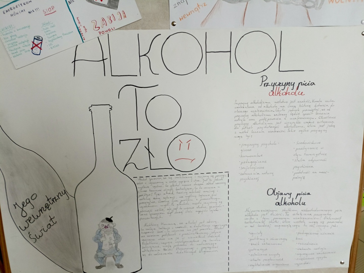 Czwartego dnia „Tygodnia Profilaktyki” na szkolnym korytarzu pojawiły się plakaty informacyjne z materiałami edukacyjnymi pod hasłem: „Wolni od uzależnień i używek” przygotowane przez uczniów pod kierunkiem pani pedagog - Jolanty Piaseckiej - i nauczyciela biologii - pana Adriana Krawczyka. Ich głównym celem było propagowanie i utrwalanie prawidłowych wzorców zdrowego stylu życia bez zgubnego wpływu nikotyny, alkoholu i innych używek. Zachęcamy do zobaczenia ich w naszej galerii.![]()