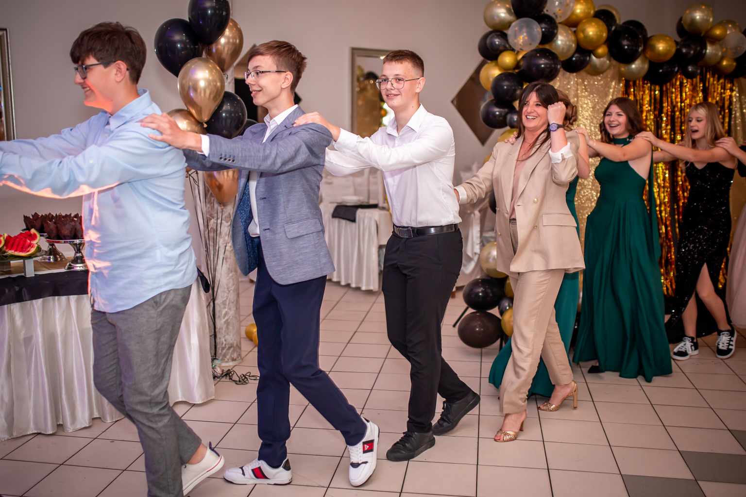 W piątek, 14 czerwca 2024 r., odbył się długo oczekiwany przez wszystkich uczniów klas 8a i 8b bal ósmoklasisty. Grono pedagogiczne, rodzice i uczniowie byli gośćmi restauracji „U Piotrowskich” w Koluszkach. Bal rozpoczęli rodzice uczniów, którzy przywitali wszystkich bardzo uroczyście. To oni wspaniale zorganizowali to wyjątkowe spotkanie, przygotowując dla zgromadzonych moc atrakcji. Wspólna zabawa dostarczyła nastolatkom wielu wzruszeń, a wspaniała atmosfera towarzyszyła uczniom i zaproszonym gościom przez cały wieczór. Tańcom nie było końca - parkiet cały wypełniała pląsająca młodzież. Na uroczystości nie mogło zabraknąć pamiątkowych zdjęć klasowych – zarówno tych poważnych, jak i traktowanych z przymrużeniem oka. Ósmoklasiści jeszcze raz dziękują rodzicom za perfekcyjne przygotowanie uroczystości. Tego wieczoru nastolatkowie z pewnością nie zapomną nigdy!