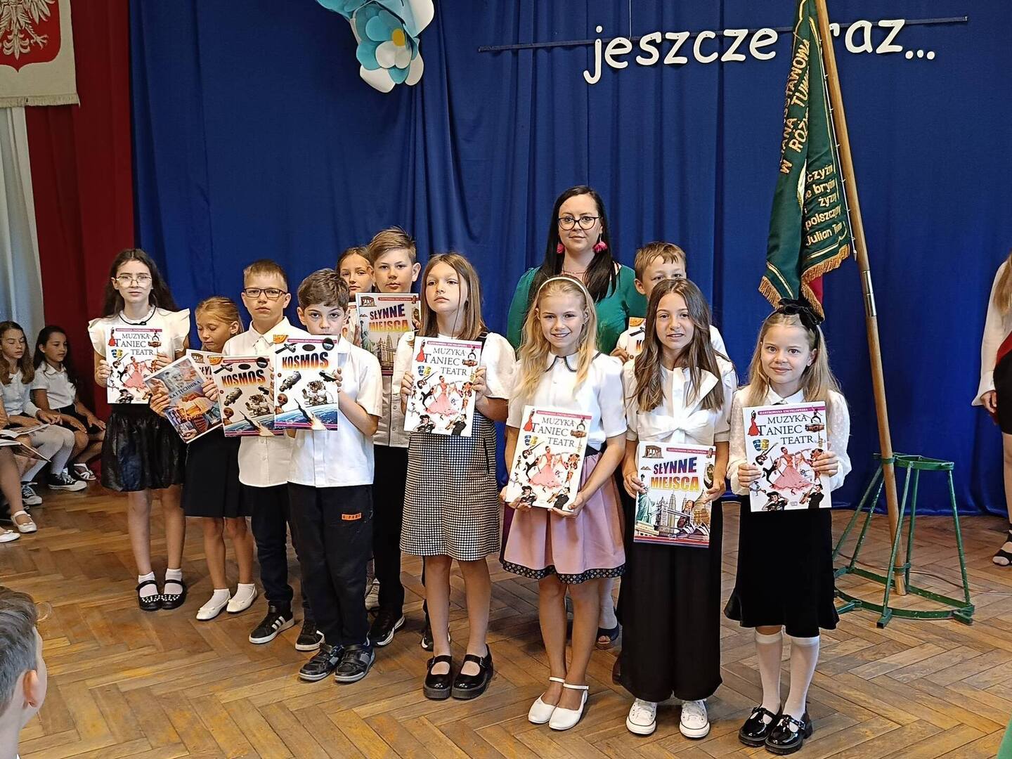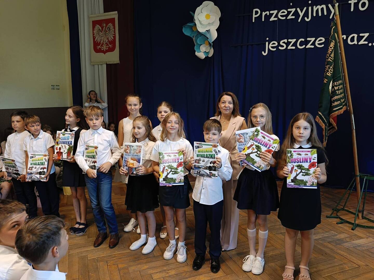 23 czerwca 2024 roku o godzinie 8.30, w Szkole Podstawowej im. Juliana Tuwima w Różycy, odbyło się uroczyste zakończenie roku szkolnego dla klas 1-6. Po odśpiewaniu hymnu przybyłych na uroczystość uczniów, rodziców, nauczycieli, powitała pani dyrektor Aneta Mrówka. Po krótkim przemówieniu nastąpiło wręczanie nagród za wysokie wyniki w nauce oraz podziękowań dla rodziców uczniów klas 3 szczególnie zaangażowanych w życie szkoły.