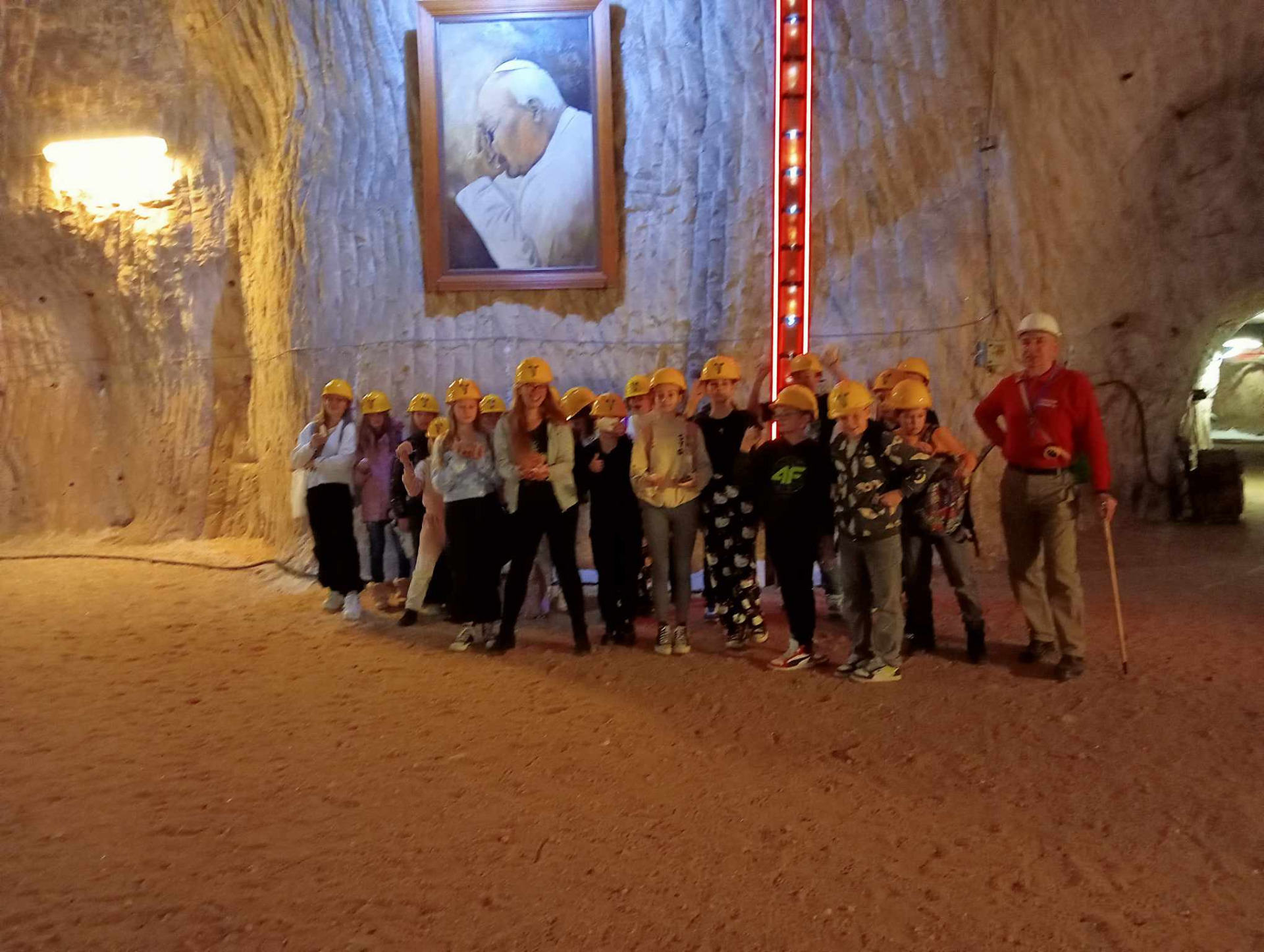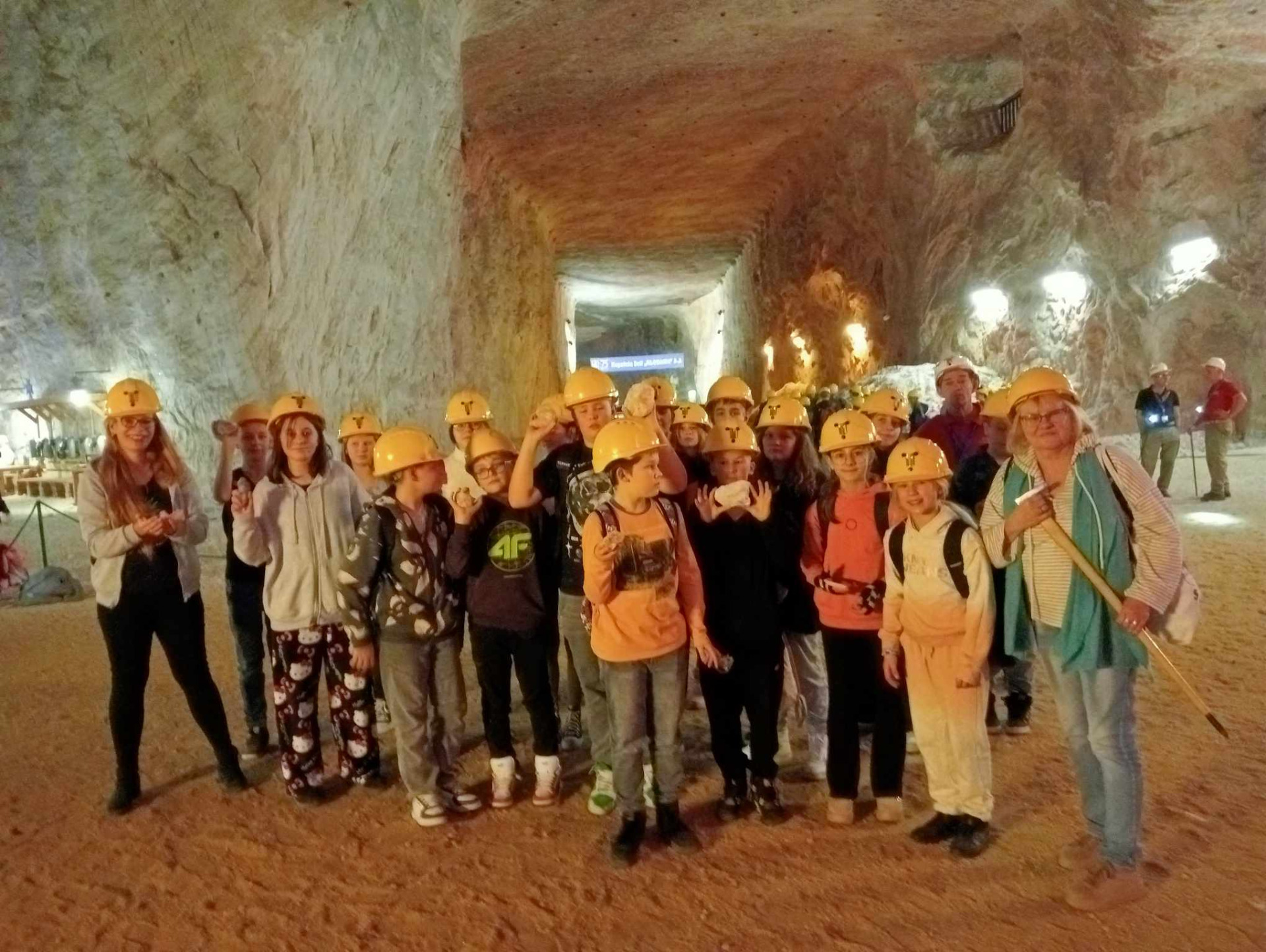 12 listopada 2024r. uczniowie klasy 6b pod opieką pań Katarzyny Pawlak i Ewy Pietrzyk wybrali się na wycieczkę do Kłodawy. W drodze zatrzymali się w Piątku -geometrycznym środku Polski. Następnie zwiedzili XII wieczną Archikolegiatę w Tumie oraz rzymskokatolicki kościół Św. Mikołaja. Kolejnym punktem wycieczki była Łęczyca. Podczas spaceru po starym mieście uczniowie poznali historię regionu oraz podziwiali XIV wieczne zabytki tj. ratusz i Zamek Królewski,w którym,jak głosi legenda,diabeł Boruta nadal pilnuje skarbu. Po krótkim odpoczynku uczniowie pojechali do Kopani Soli w Kłodawie. Zjazd 600 metrów pod ziemię i zwiedzanie wciąż czynnej kopalni wzbudziło wiele emocji. Młodzież z zainteresowaniem wysłuchała legendy o Świętej Kindze - patronce górników solnych. Uczestnicy wycieczki dużo dowiedzieli się też o działalności wydobywczej kopalni oraz niełatwej pracy górników.